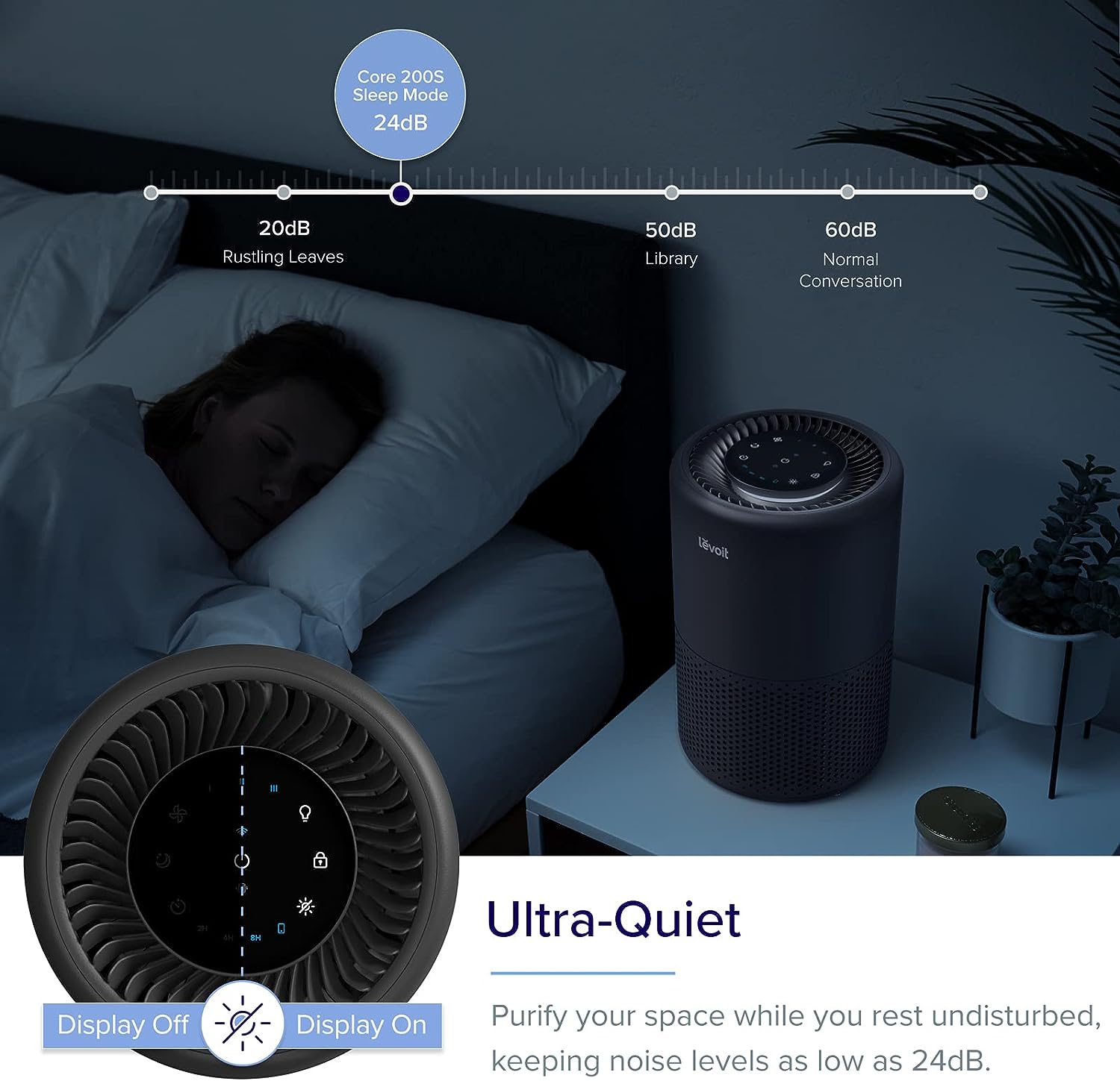 LEVOIT Air Purifier for Home Large Room. Smart WiFi Alexa Control. HEPA Filter for Allergies. Removes Pollutants. Smoke. Dust. Covers up to 915 Sq.Foot. 24dB Quiet for Bedroom. Core 200S. Black