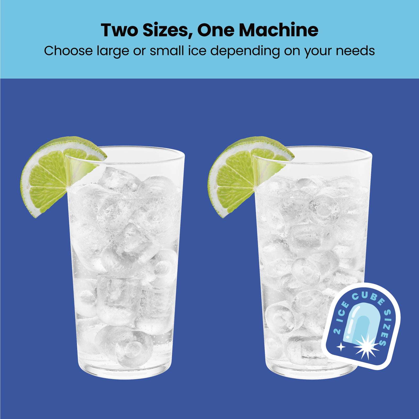 Iceman Dual-Size Ice Machine. 6 Mins per Batch. Two Ice Cube Size Options.1.3 lb.. Stainless steel