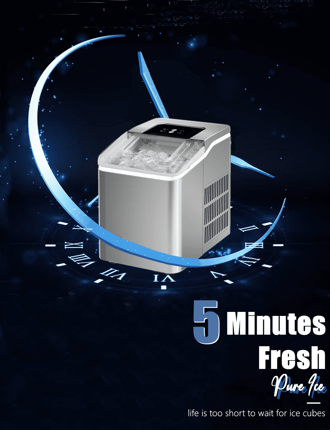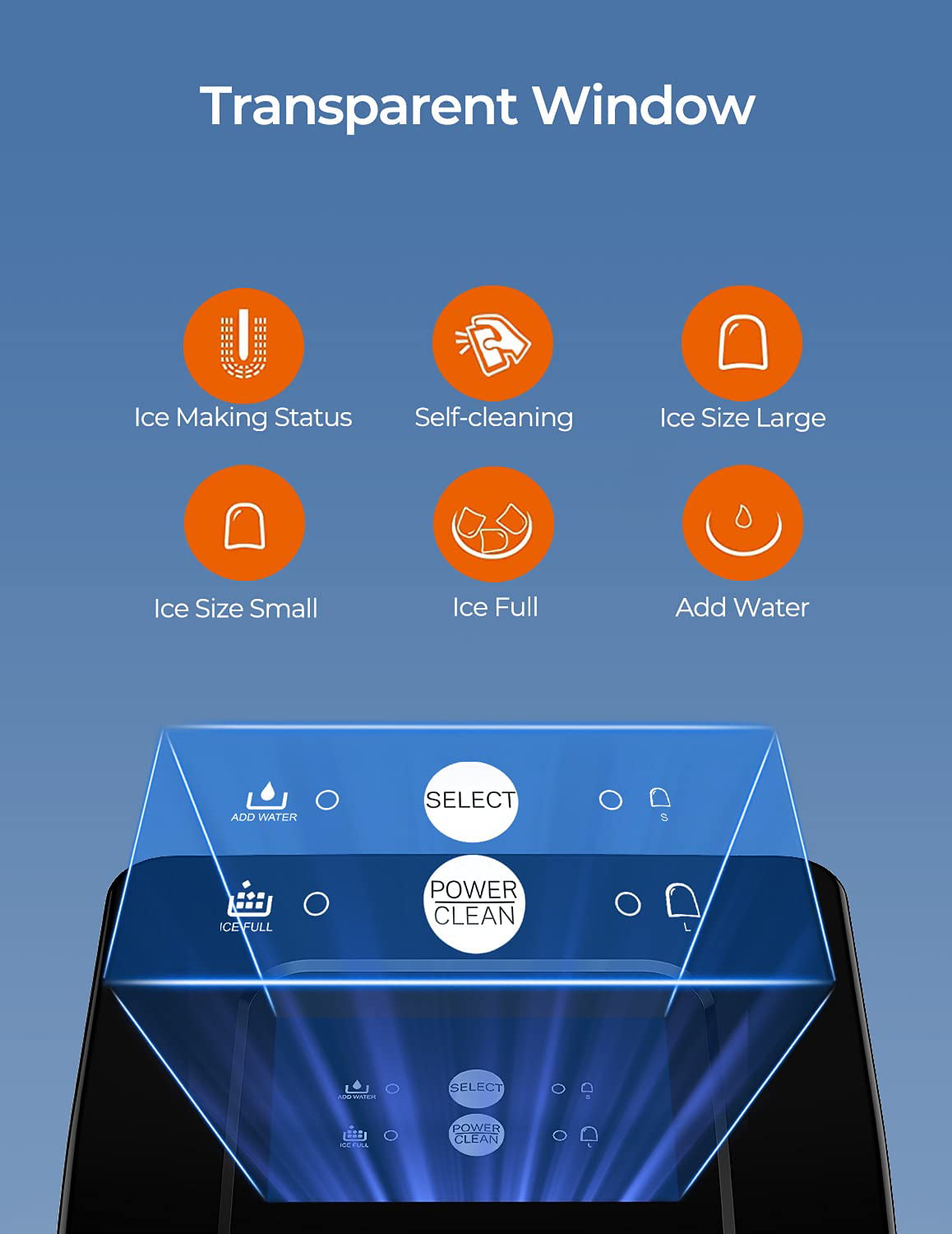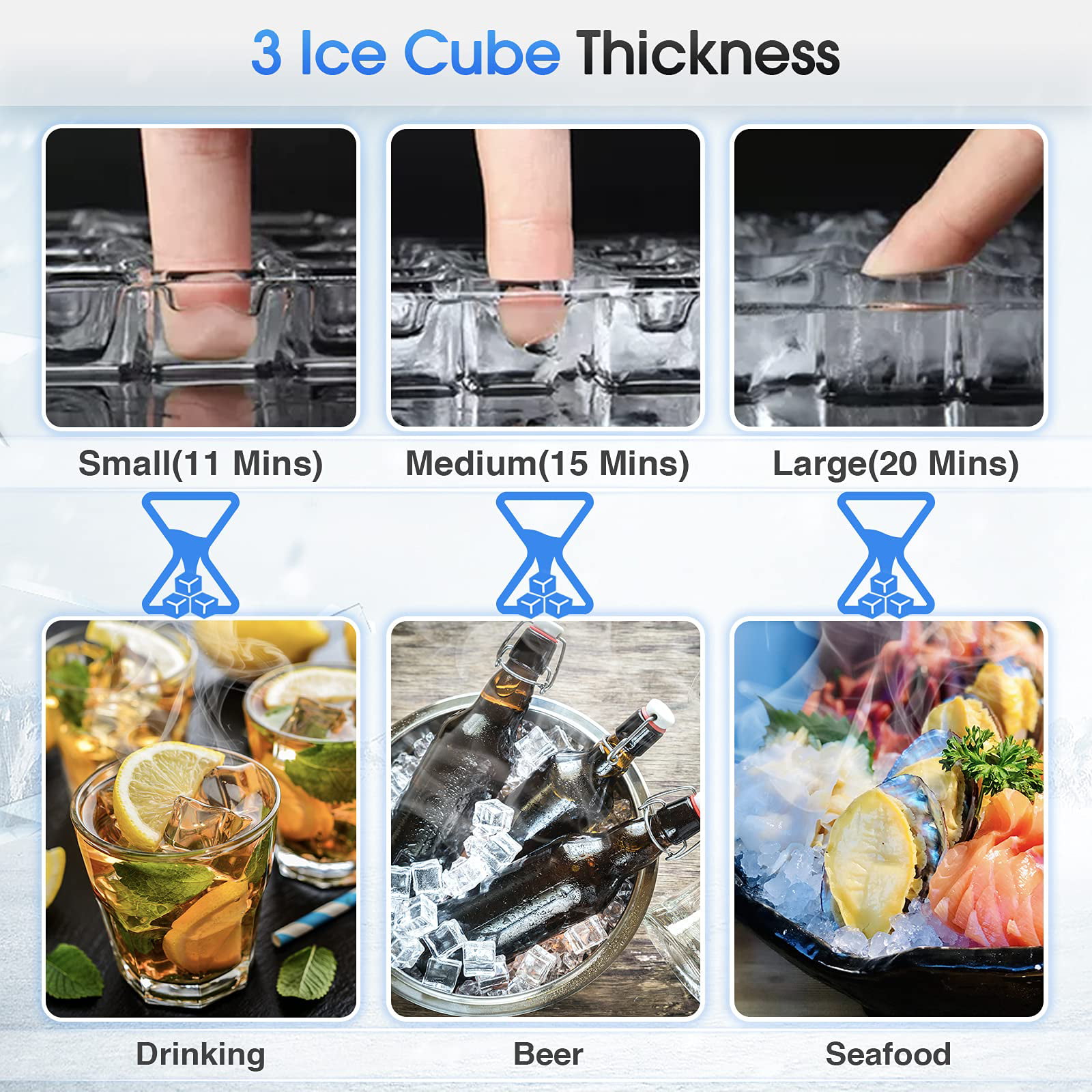 Ice Maker Machine Countertop 2 Ice Sizes. 28 lbs in 24 Hrs. Self-clean. 9 Cubes Ready in 5 Mins. Portable Ice Maker 2L. LCD Display. Ice Scoop and Basket Perfect for Home Kitchen Office