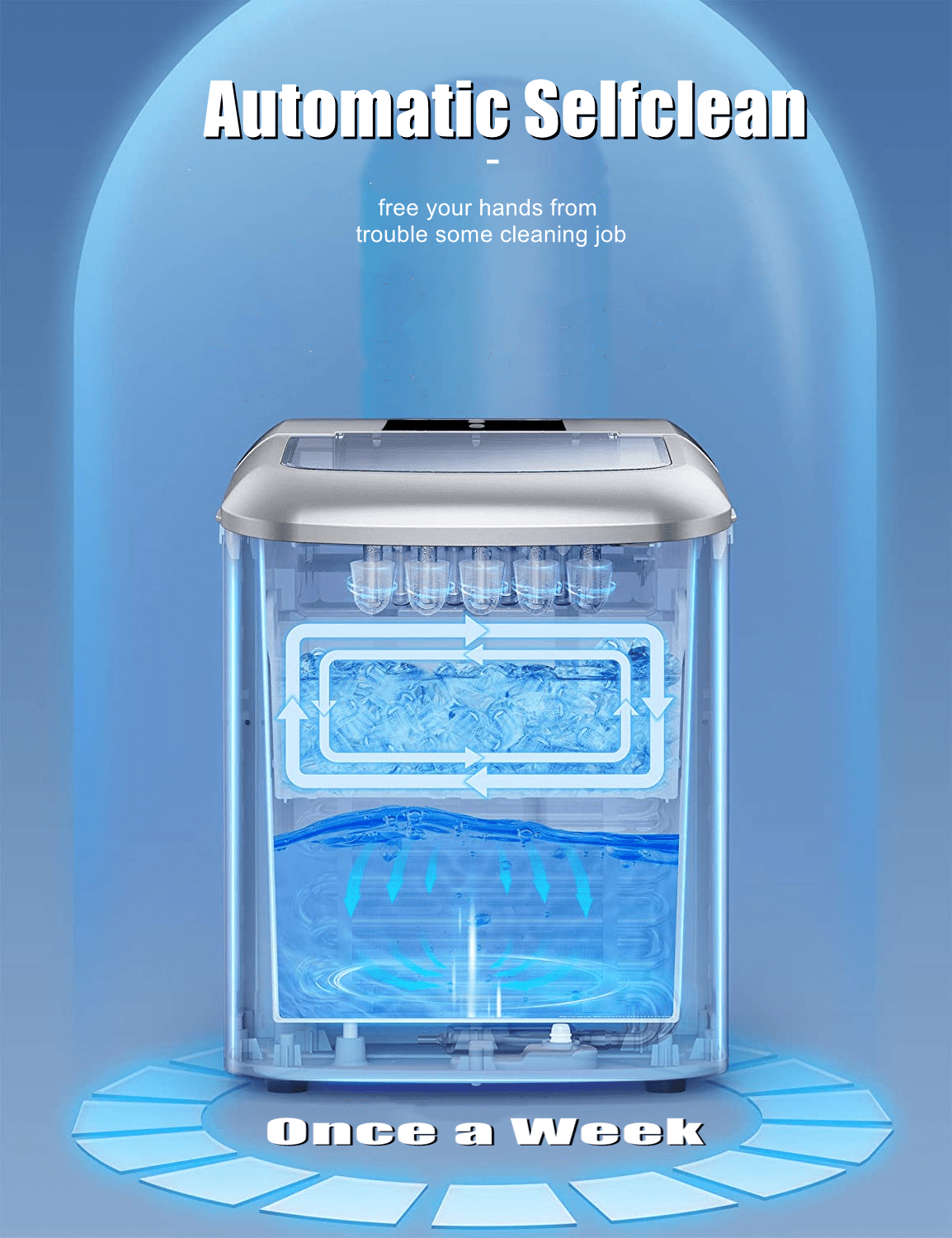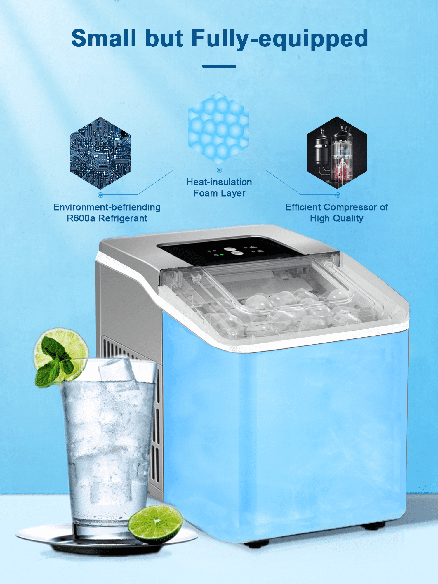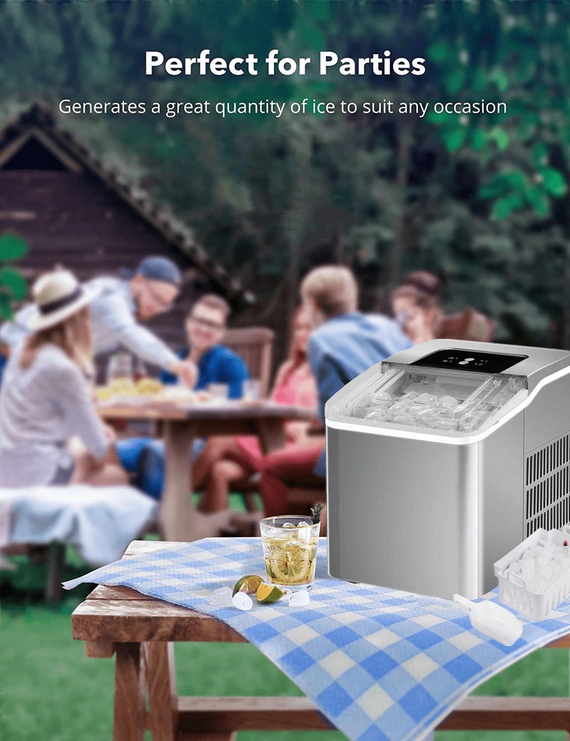 Ice Maker Machine Countertop 2 Ice Sizes. 28 lbs in 24 Hrs. Self-clean. 9 Cubes Ready in 5 Mins. Portable Ice Maker 2L. LCD Display. Ice Scoop and Basket Perfect for Home Kitchen Office