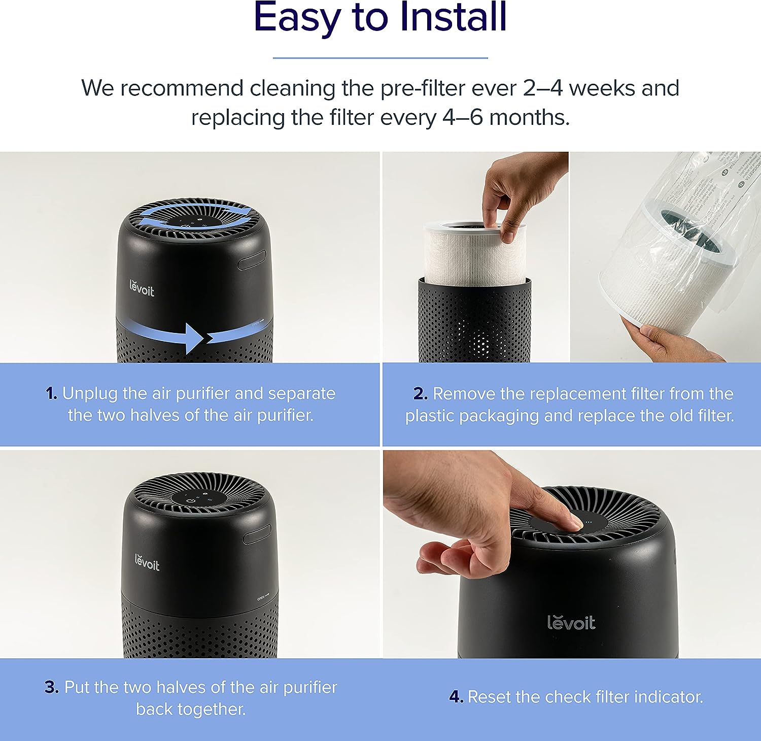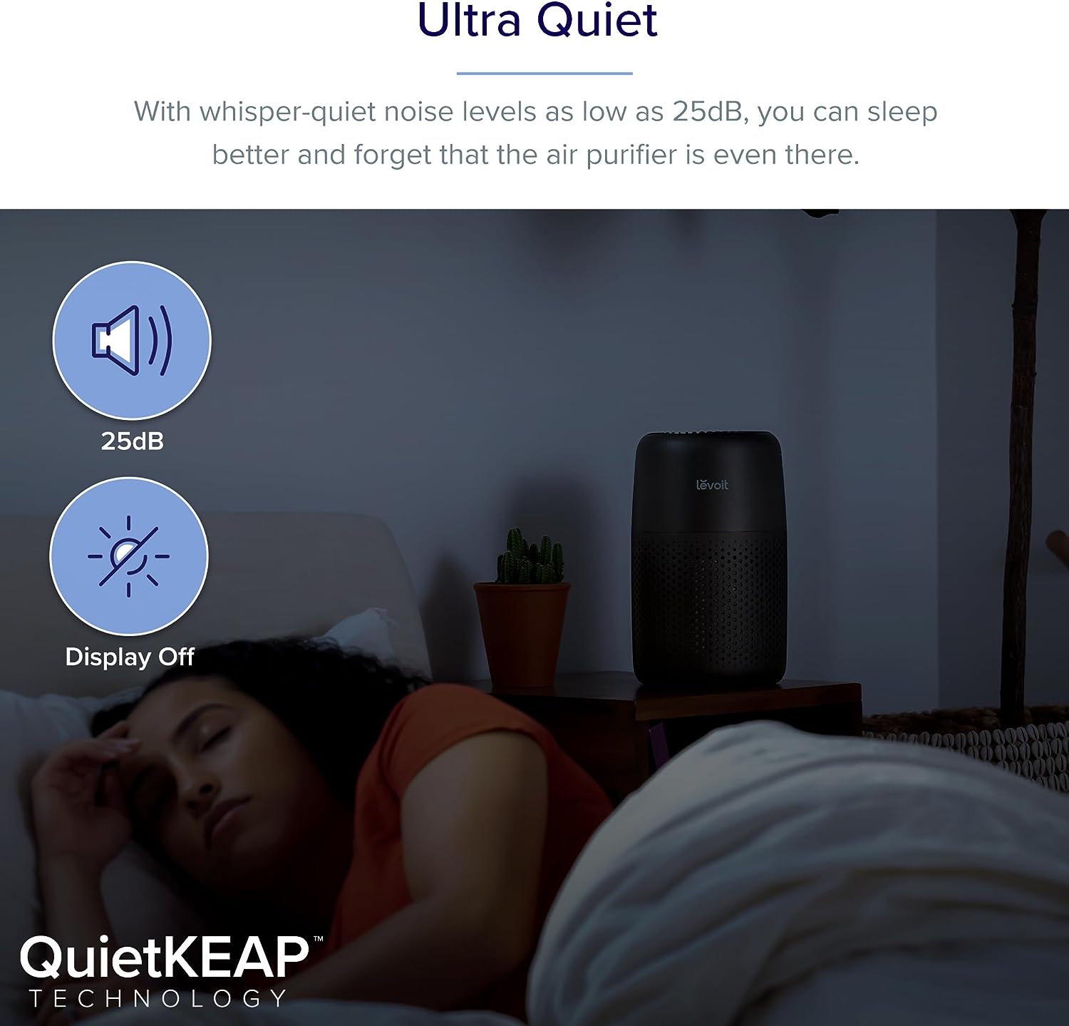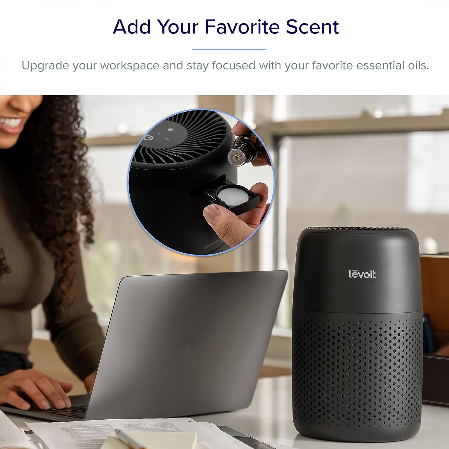 LEVOIT Air Purifiers For Bedroom Home. HEPA Filter Cleaner With Fragrance Sponge For Better Sleep. Filters Smoke. Allergies. Pet Dander. Odor. Dust. Office. Desktop. Portable. Core Mini. Black