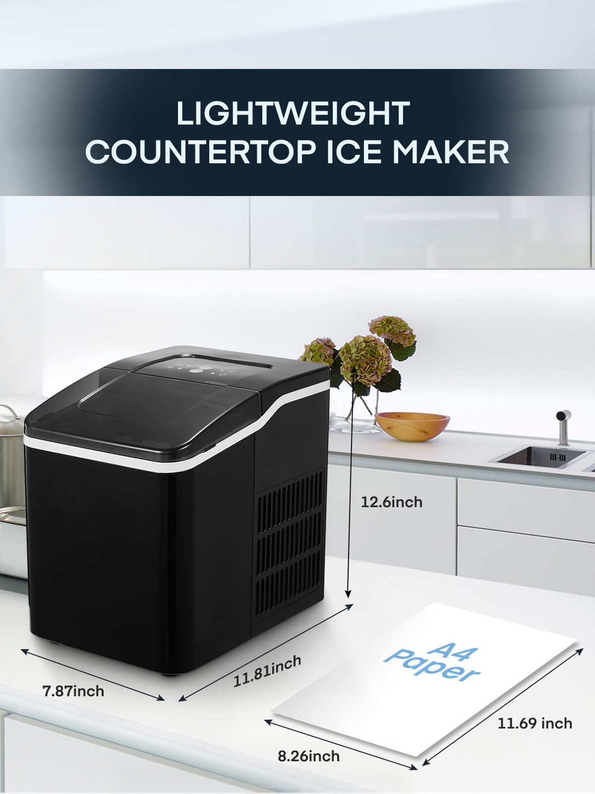 Ice Maker Machine Countertop 2 Ice Sizes. 28 lbs in 24 Hrs. Self-clean. 9 Cubes Ready in 5 Mins. Portable Ice Maker 2 L. LCD Display. Ice Scoop and Basket Perfect for Home Kitchen Office (Black)