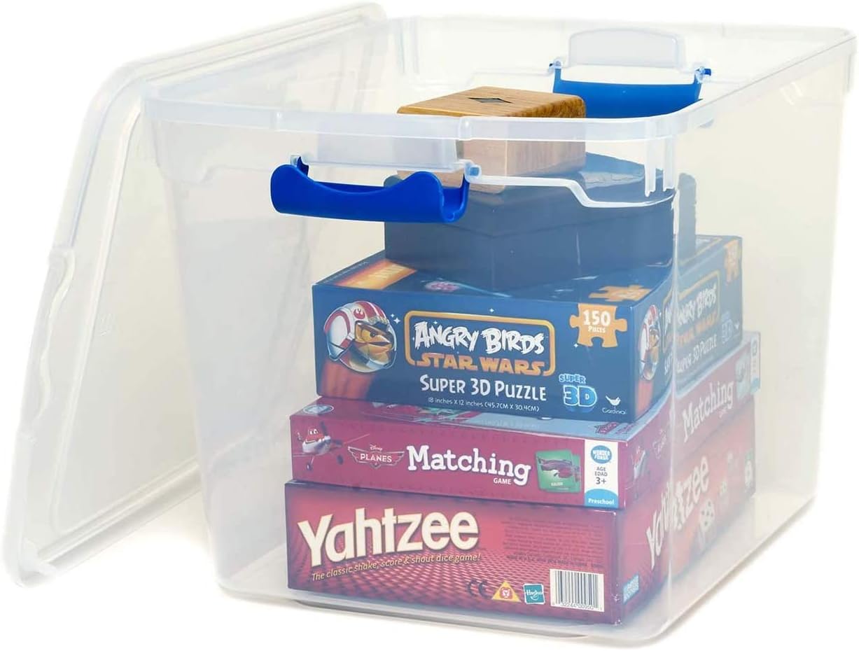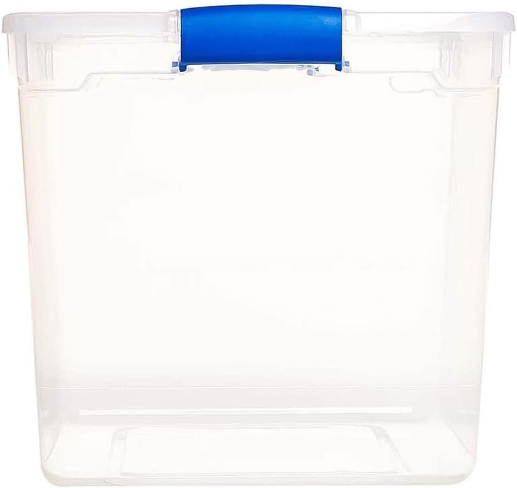 HOMZ Heavy Duty Modular Clear Plastic Stackable Storage Tote Containers with Latching and Locking Lids. 31 Quart Capacity. 4 Pack