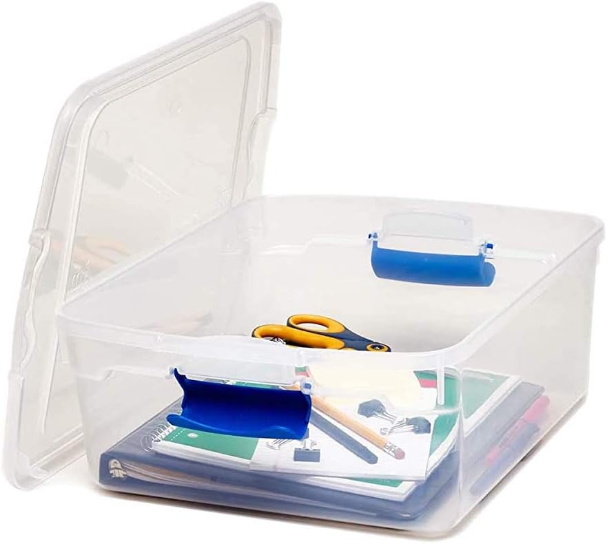 HOMZ 15.5 Qt Plastic Multipurpose Stackable Storage Container Bins with Secure Latching Lids for Home or Office Organization. Clear (4 Pack)