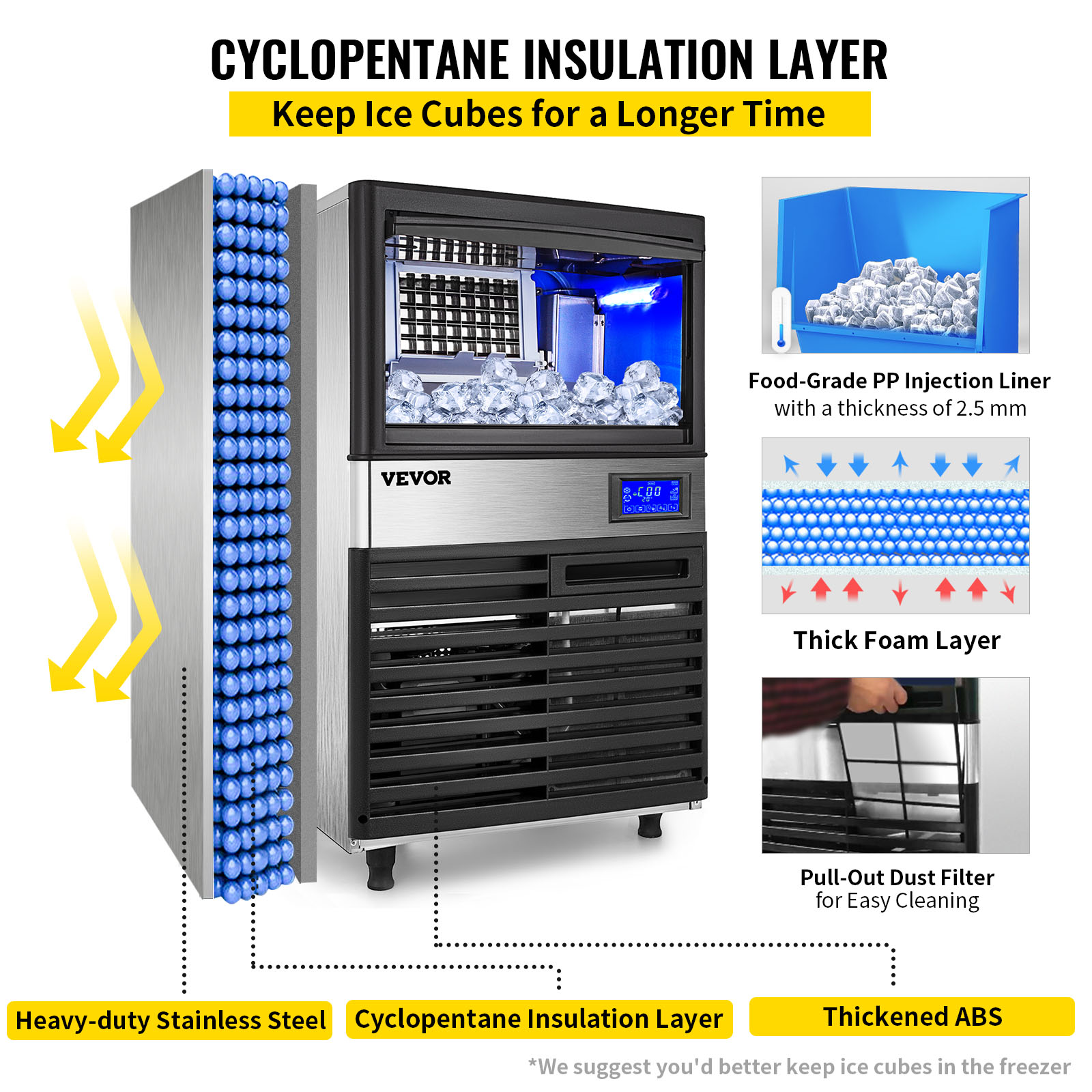 VEVORbrand Commercial Ice Maker 80 - 90 lbs/24H.Ice Machine with 33 lbs Storage Bin. Clear Cube. Advanced LCD Panel. Auto Operation. Blue Light. Fully Upgrade