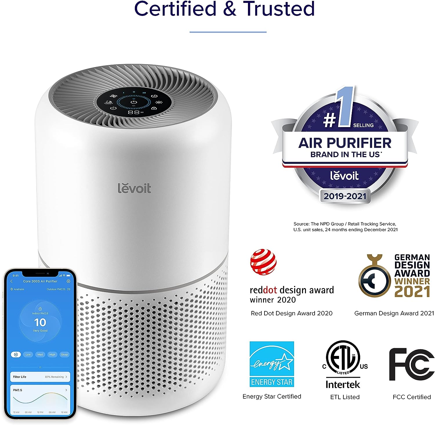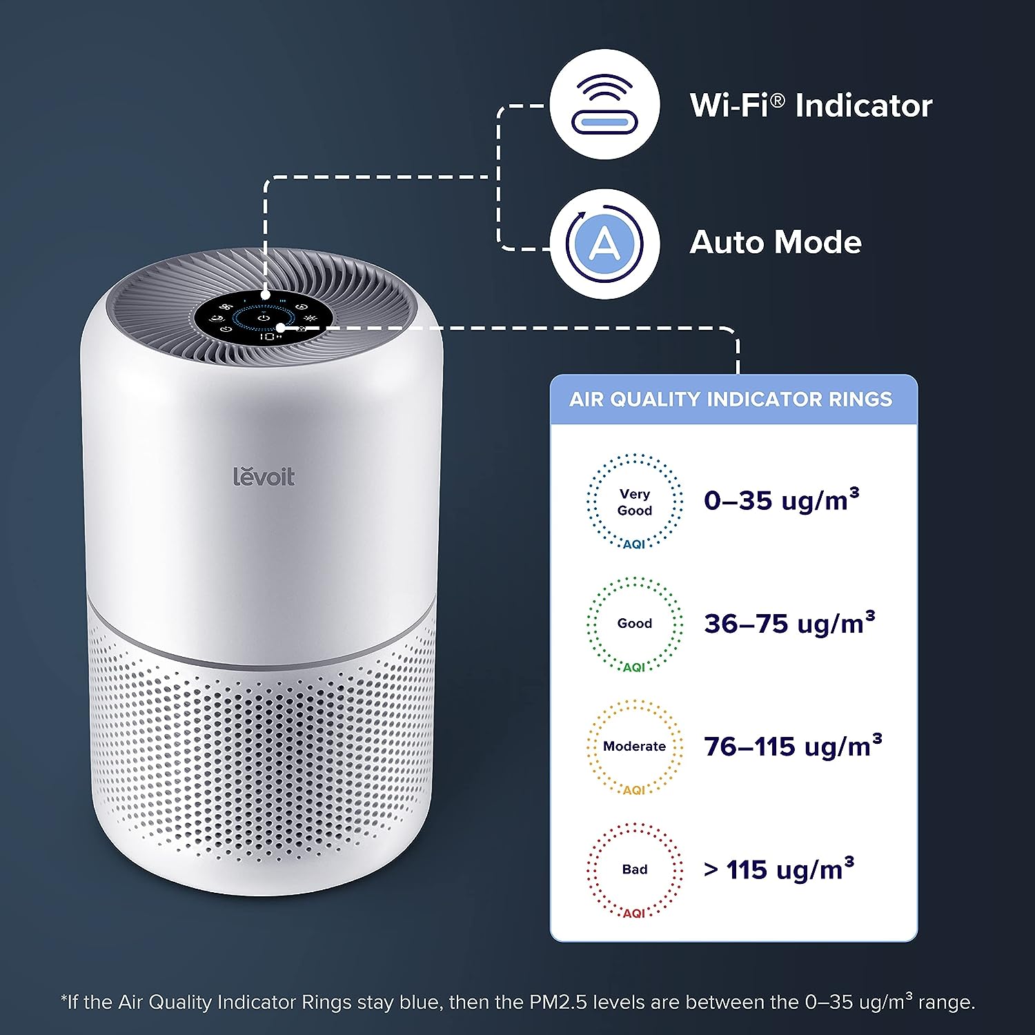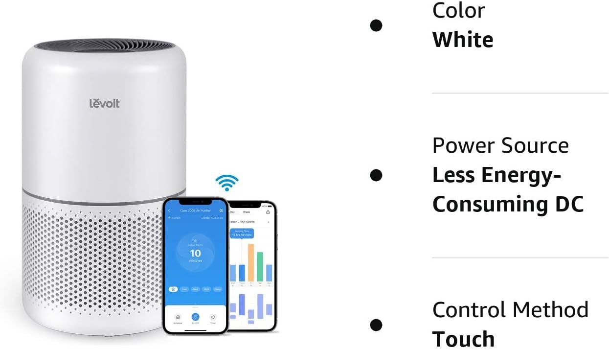 LEVOIT Air Purifiers for Home Bedroom. Smart WiFi. Auto Mode. Covers Up to 1095 Sq.ft for Home Large Room. Quiet Cleaner for Pets. Allergies. Dust. Smoke. White Noise. Core 300S. White