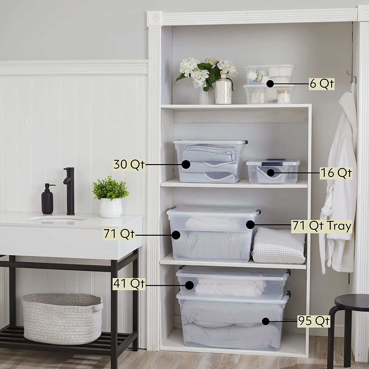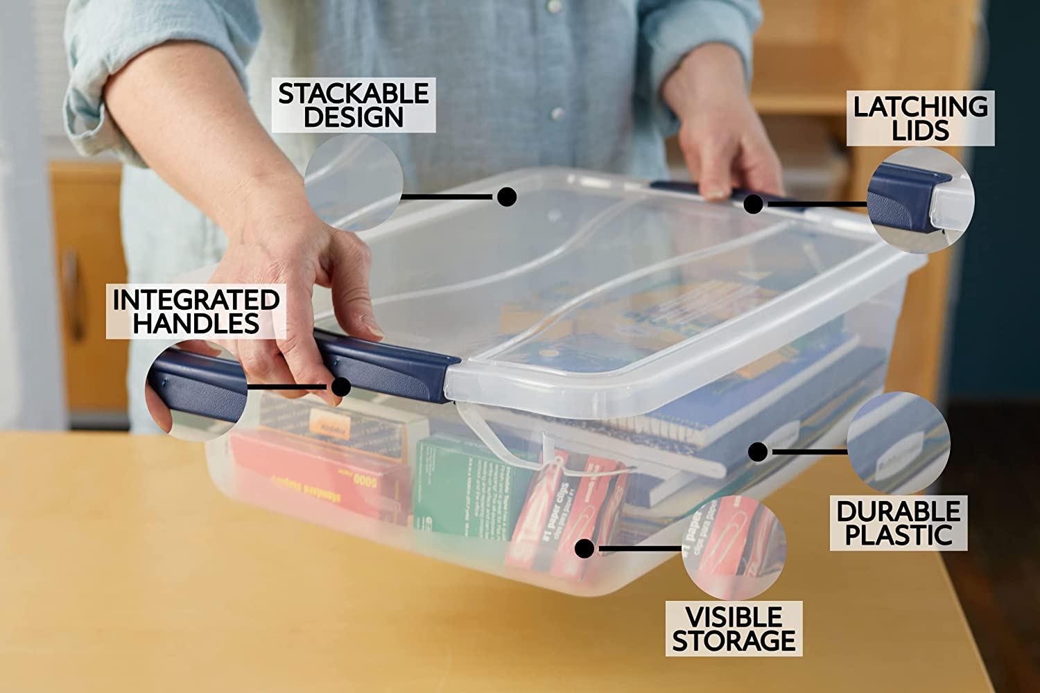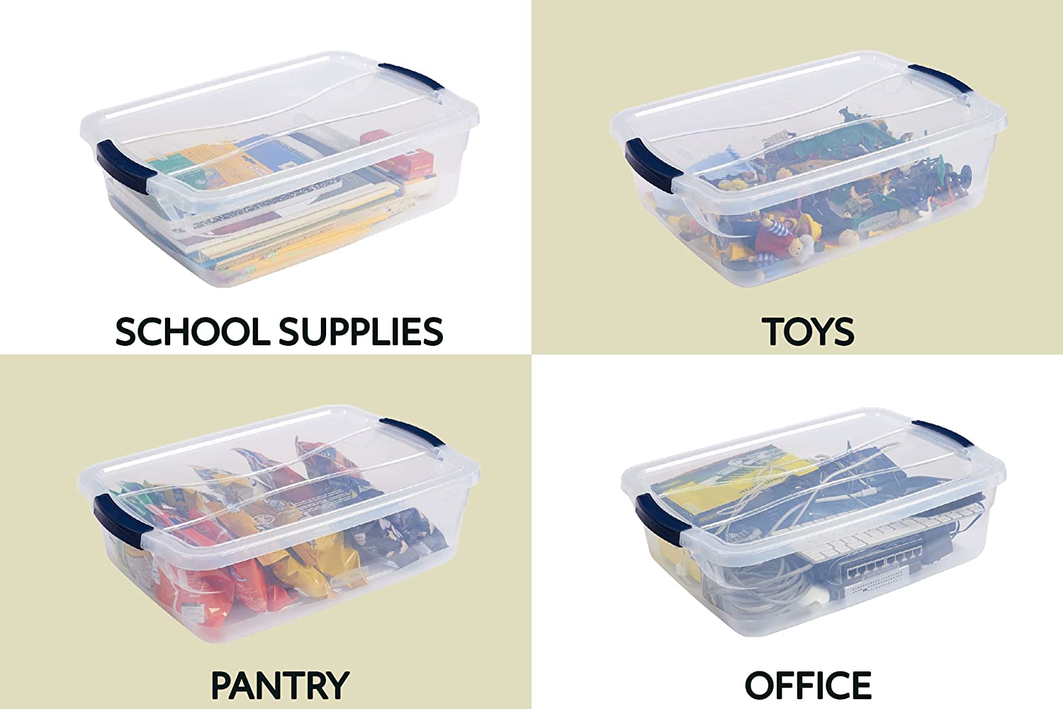 Rubbermaid Cleverstore Clear 16 Qt/4 Gal. Pack of 6 Stackable Plastic Storage Containers with Durable Latching Clear Lids. Visible Organization. Great for Classroom. Underbed. and Kitchen Storage