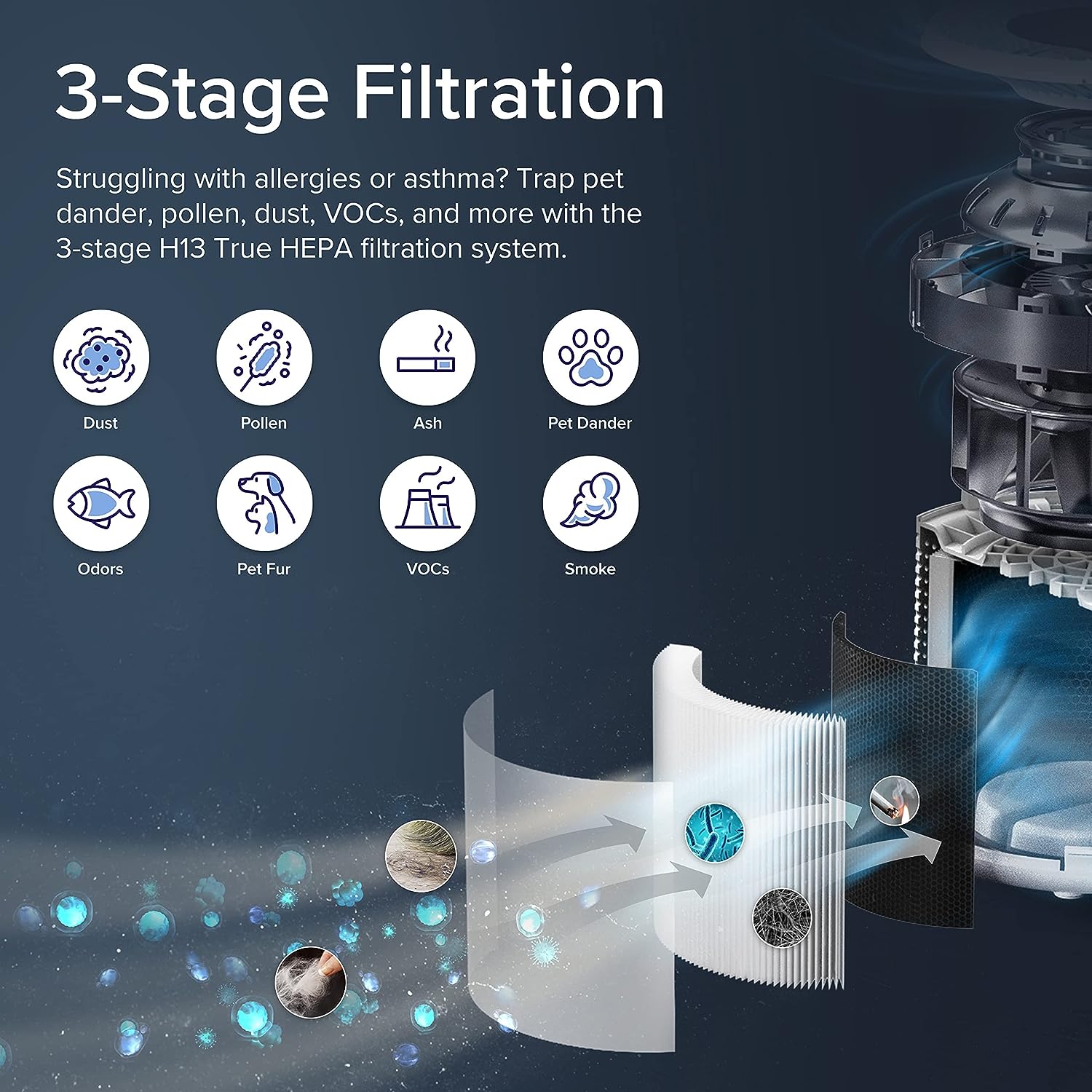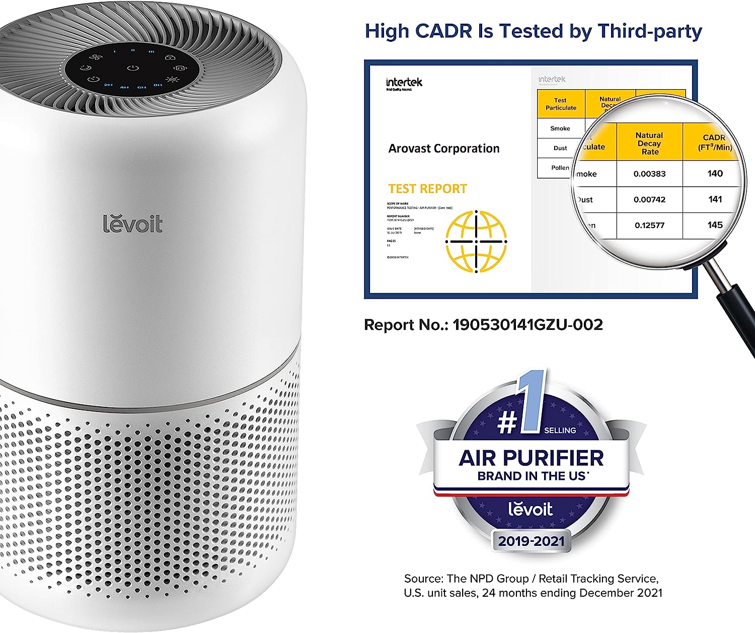 LEVOIT Air Purifier for Home Allergies Pets Hair in Bedroom. Covers Up to 1095 Sq.Foot Powered by 45W High Torque Motor. 3-in-1 Filter. Remove Dust Smoke Pollutants Odor. Core 300. White
