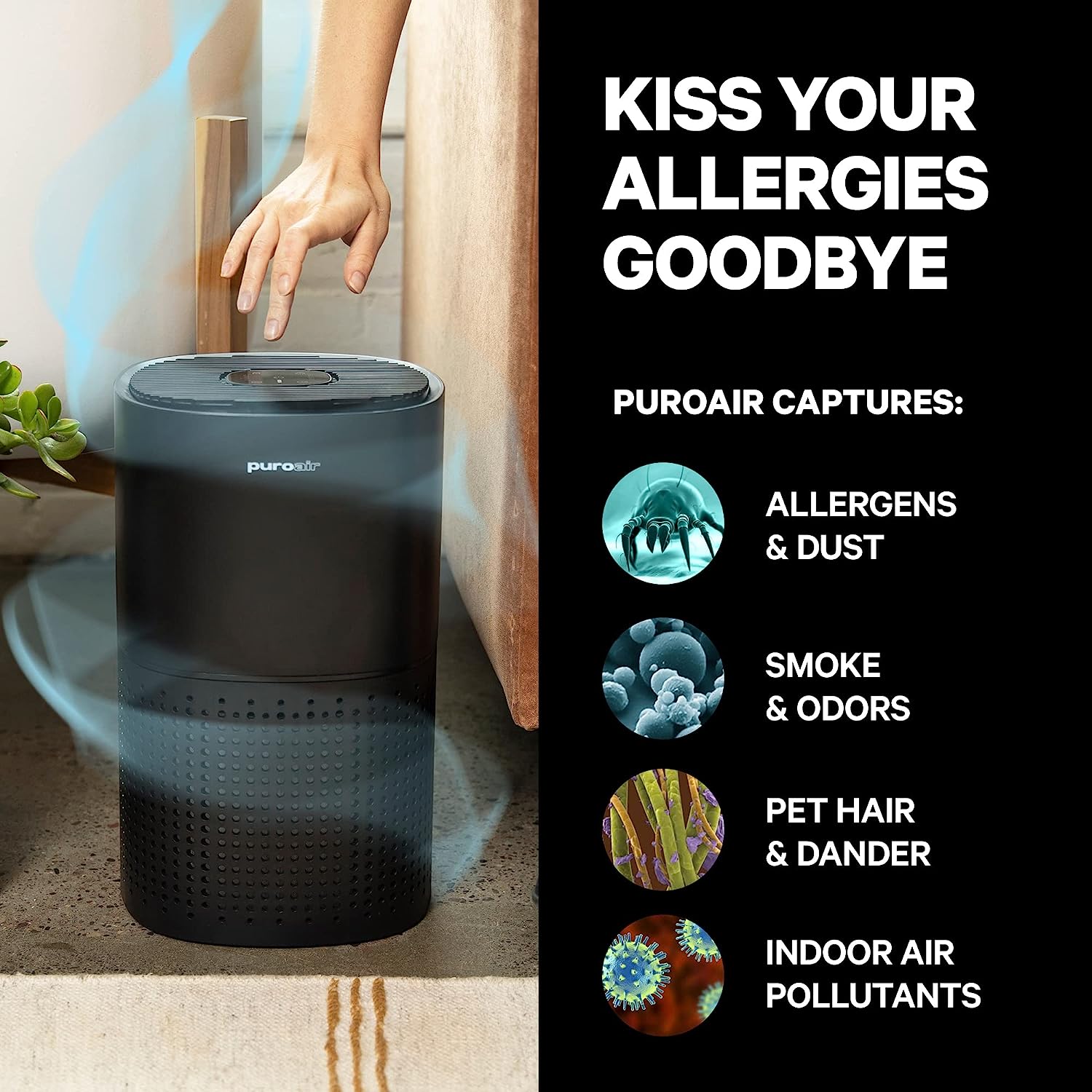 PuroAir HEPA 14 Air Purifier for Allergies - Covers 1.115 Sq Ft - Hospital-Grade Air Filter - Air Purifier for Allergies and Pets - Covers Large Rooms - Filters 99.99% of Pet Dander. Smoke. Allergens. Dust. Odors. Mold