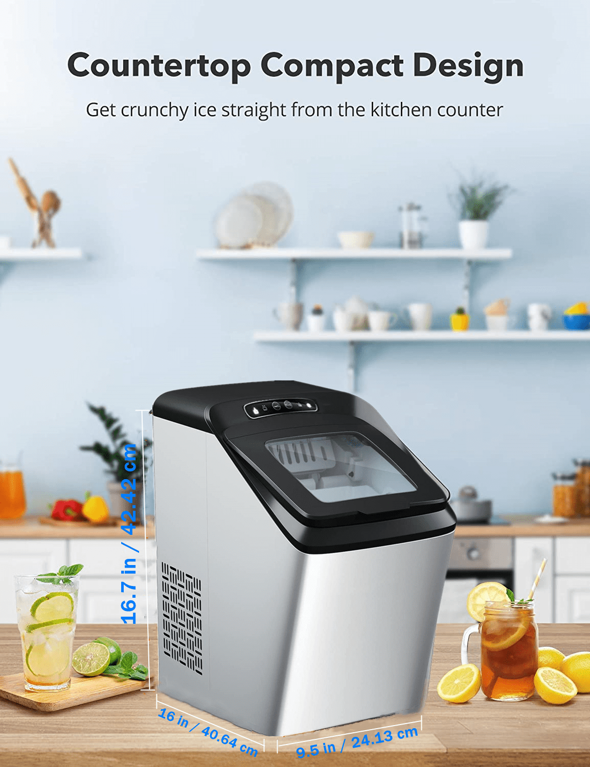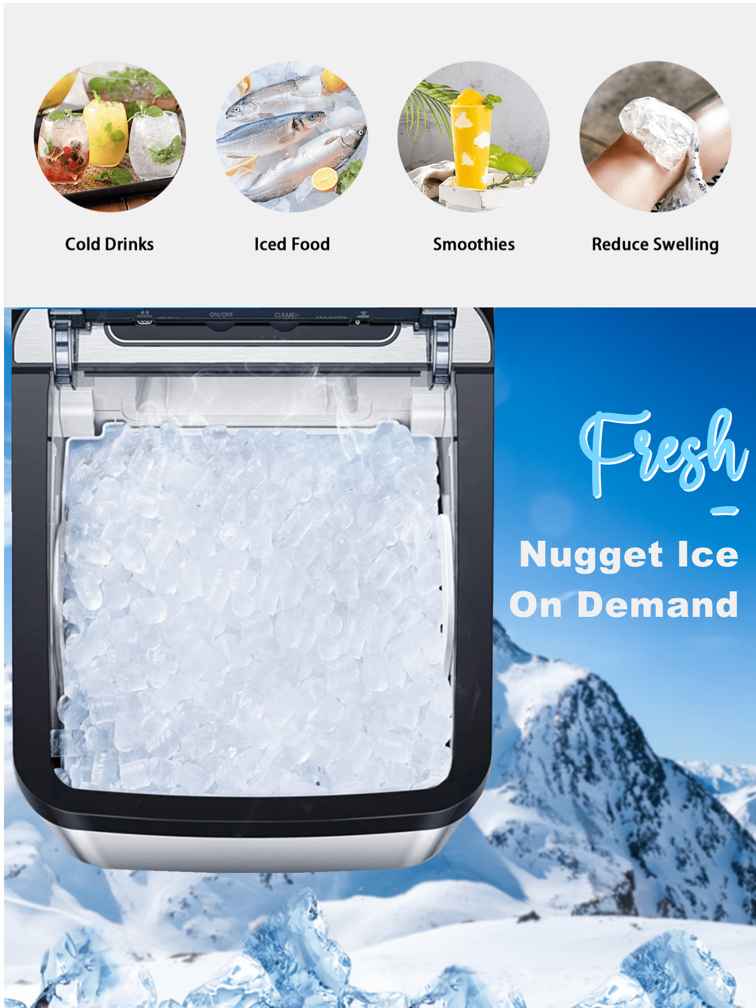 AICOOK Nugget Ice Maker for Countertop. Makes 26lb Nugget Ice per Day. Sonic Ice Maker Machine. Crunchy Pellet Ice Maker with 5.3lb Ice Bin and Scoop for Home Office. Self-Cleaning