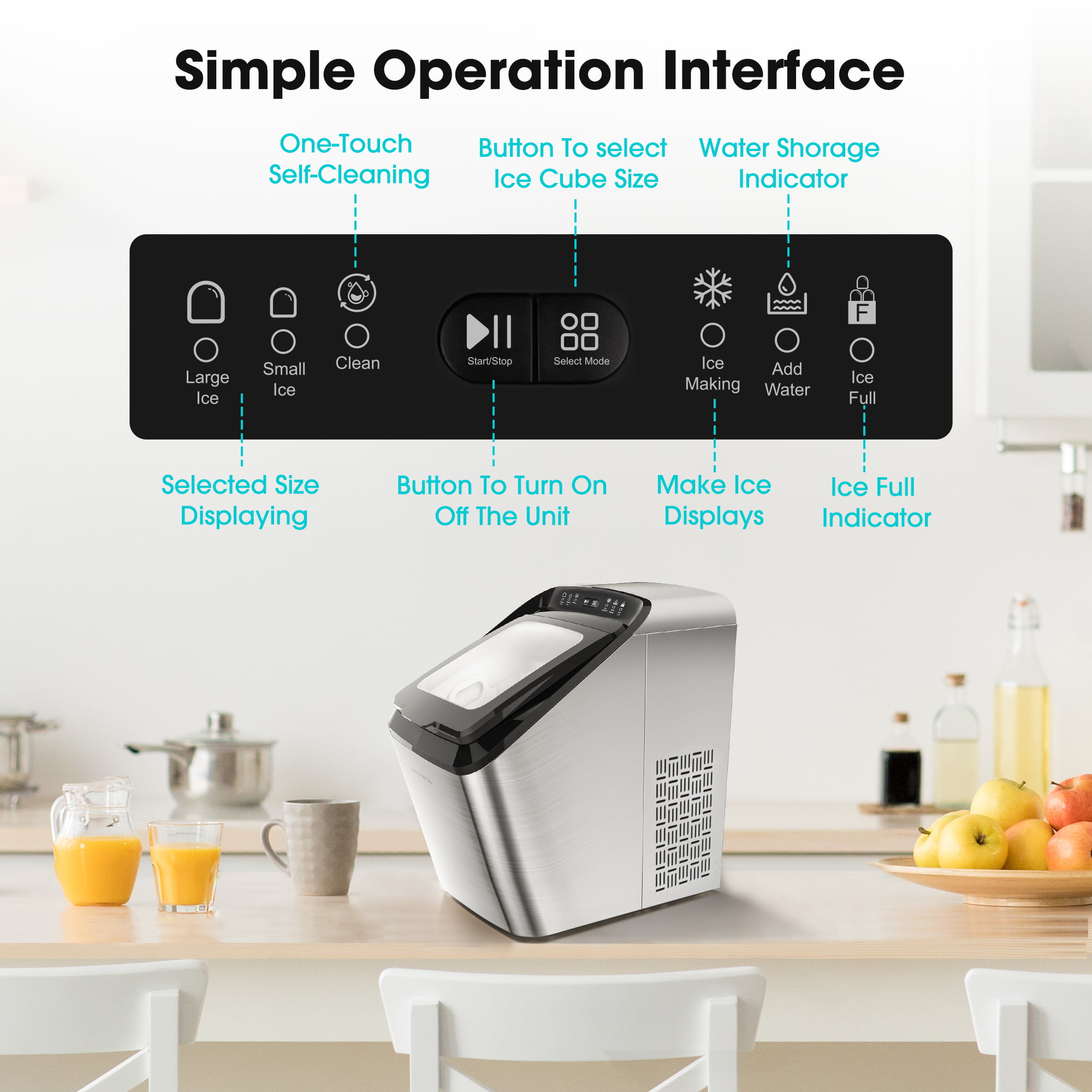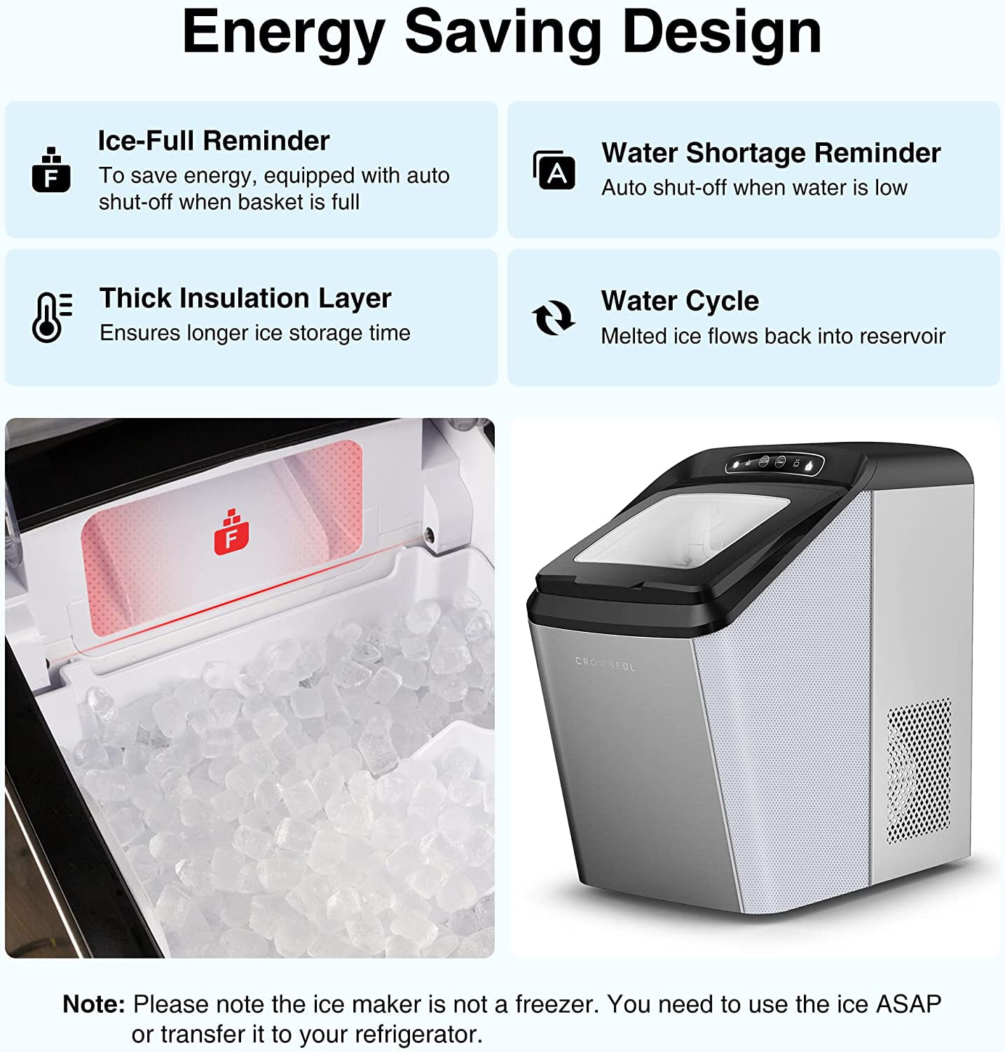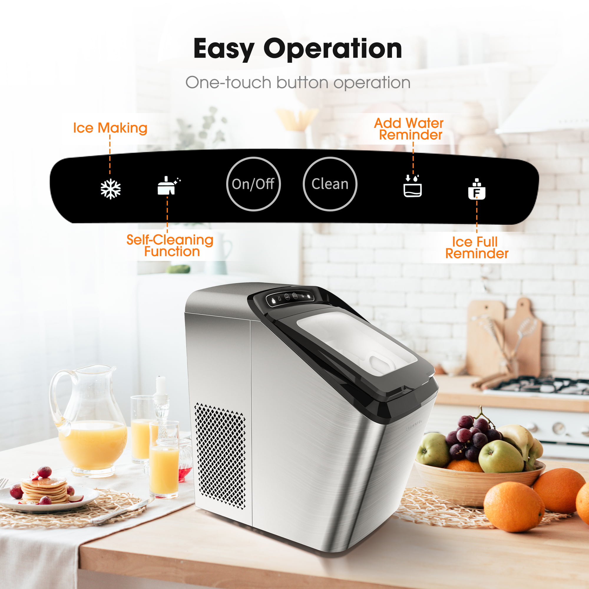 CROWNFUL Smart Ice Maker Countertop. with App Remote Control Ice Machine. 33 lbs/24H. 2 Size (S/L) Ice. Self-Cleaning