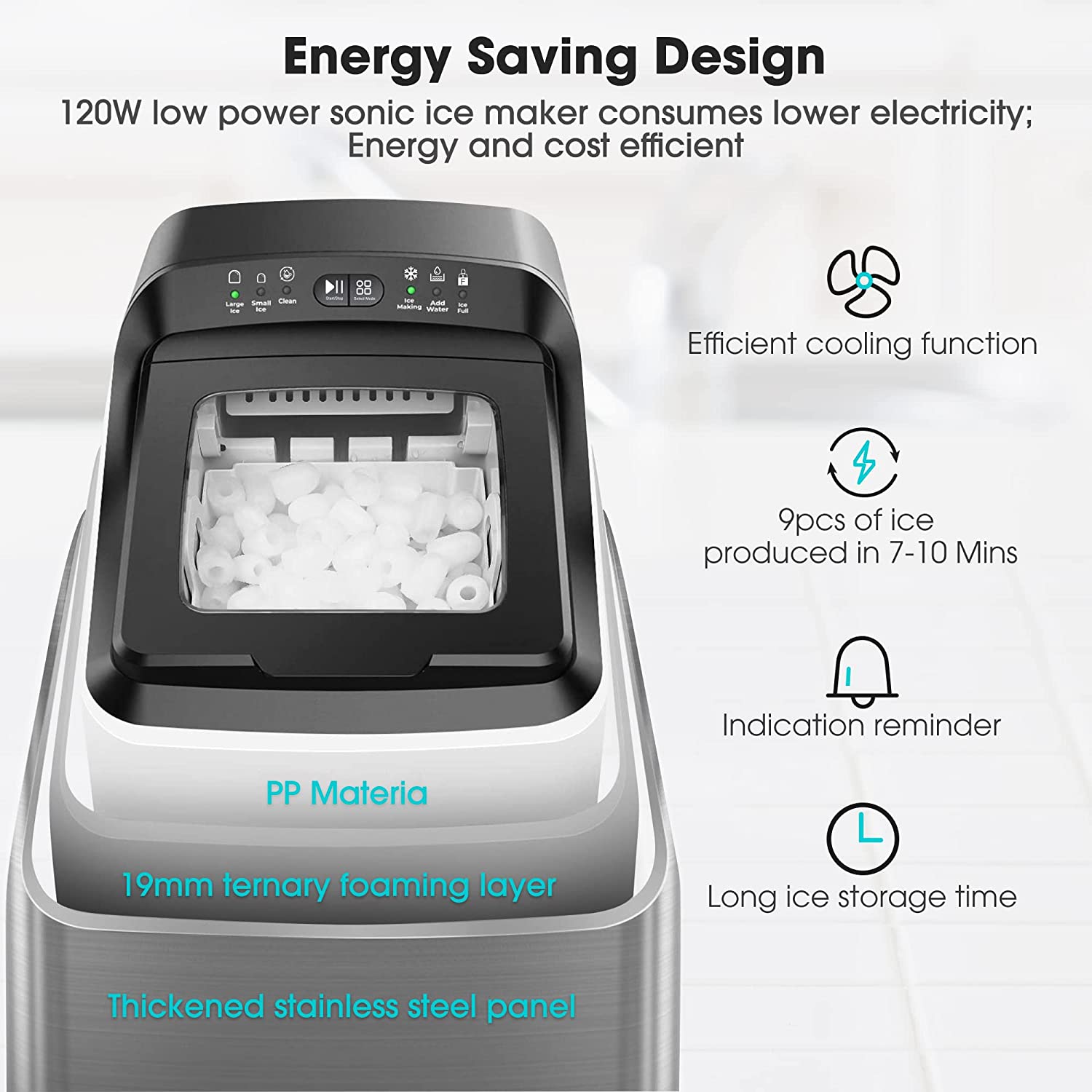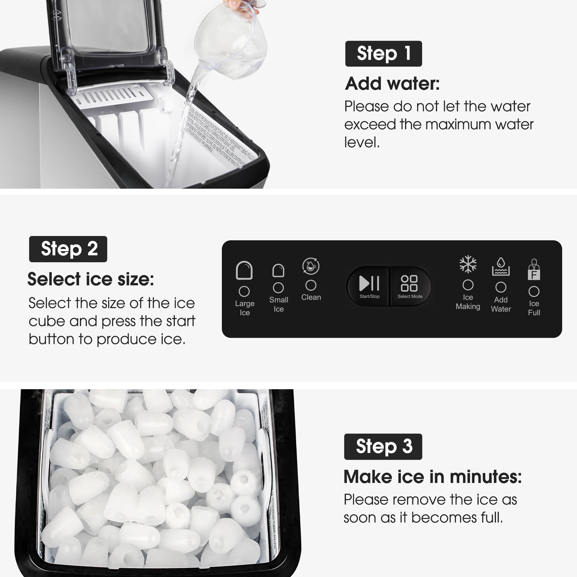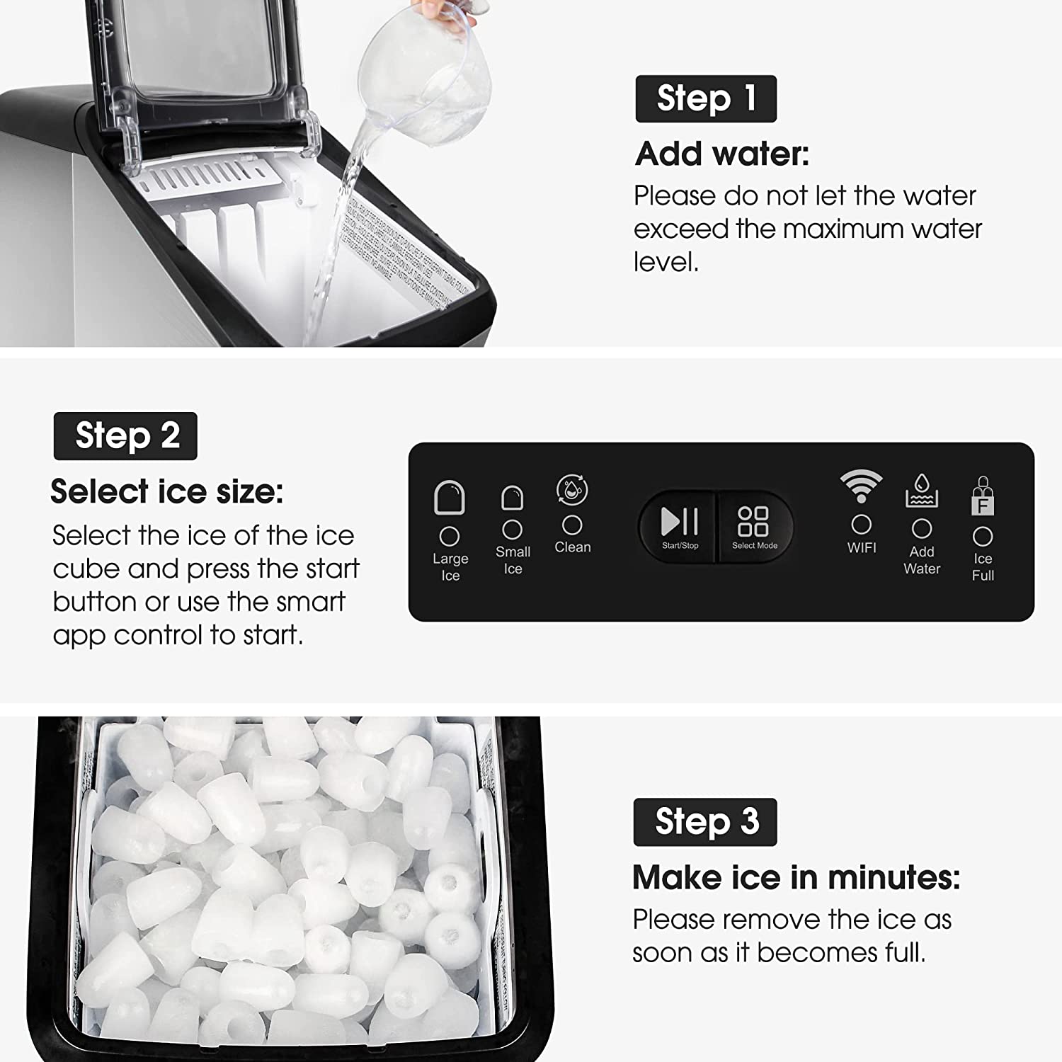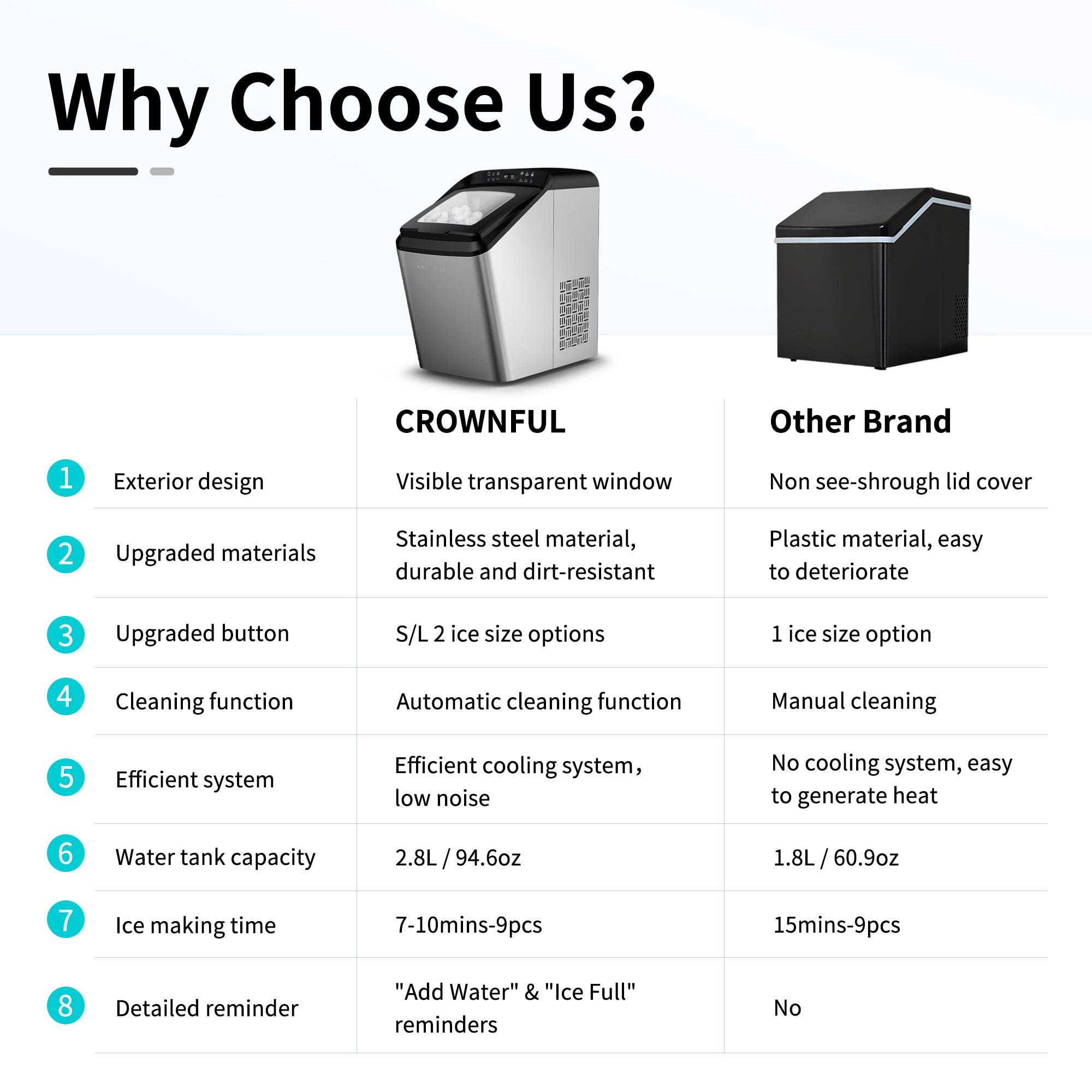 CROWNFUL Smart Ice Maker Countertop. with App Remote Control Ice Machine. 33 lbs/24H. 2 Size (S/L) Ice. Self-Cleaning