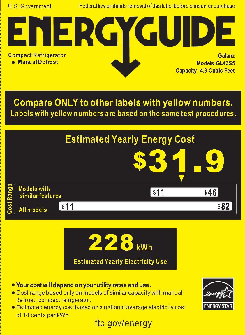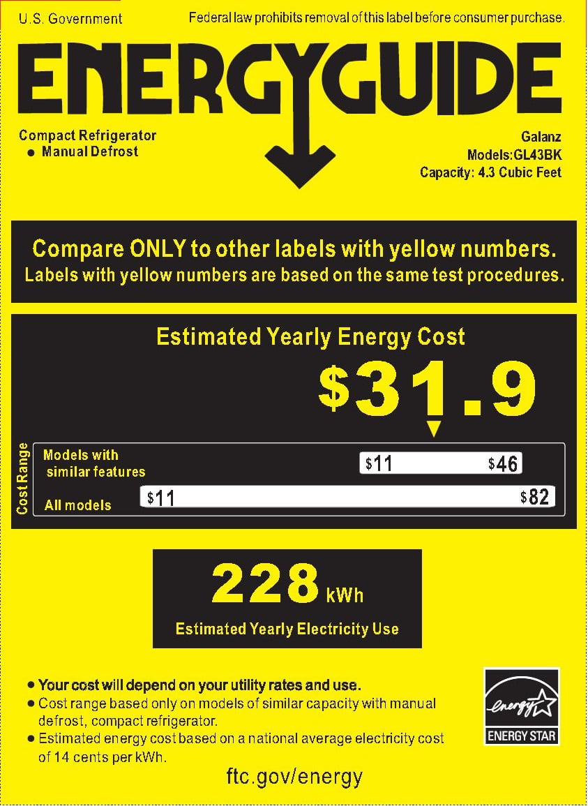 Galanz 4.3 Cu ft Single Door Mini Fridge. Black Estar
