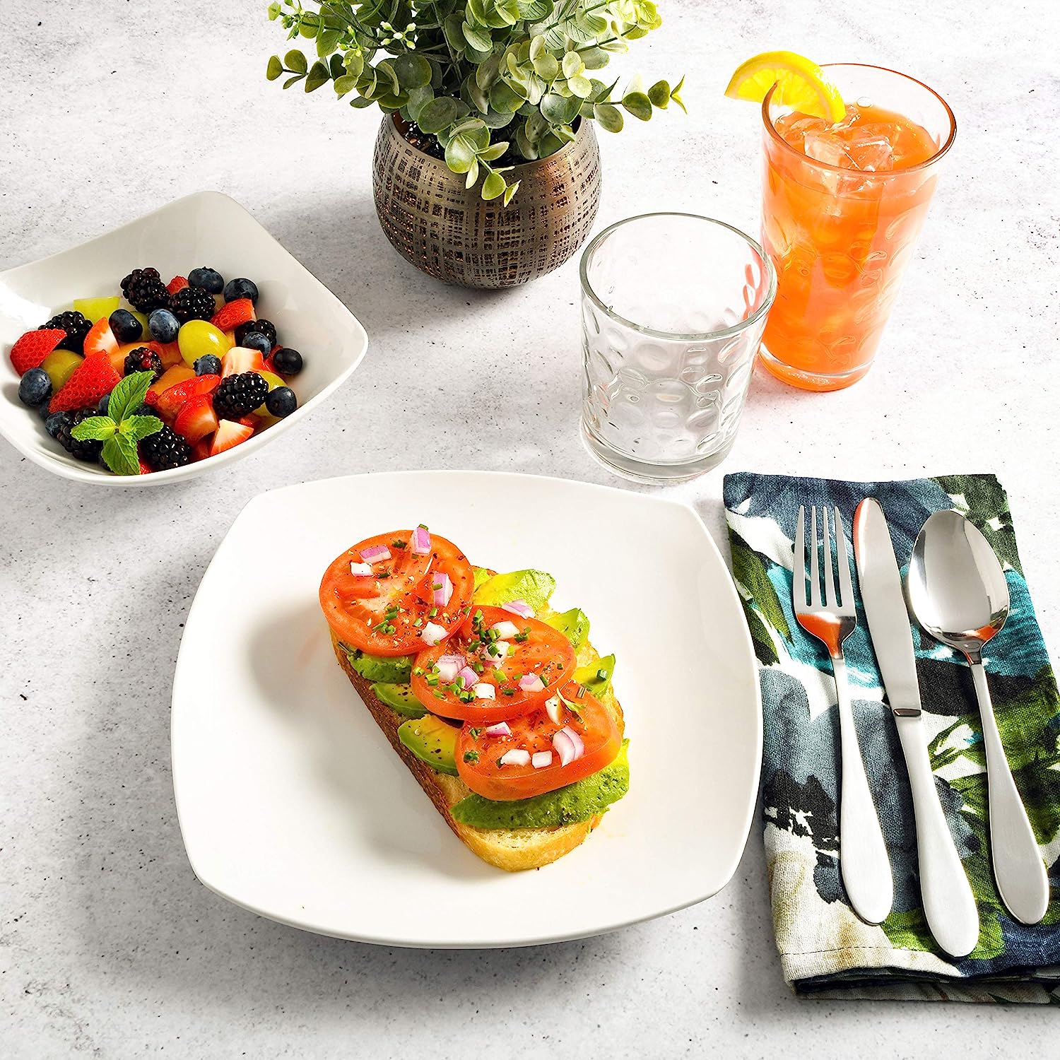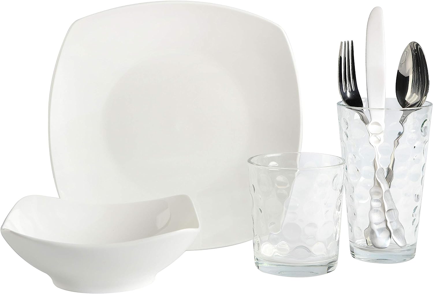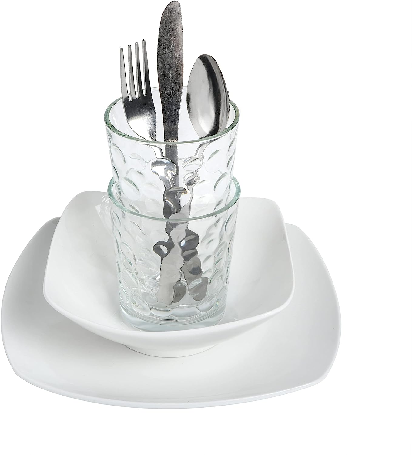 Gibson Home Zen Buffet Square 42 Piece Combo Porcelain Dinnerware. Glassware. Silverware Set. White (Square) (138423.42R)