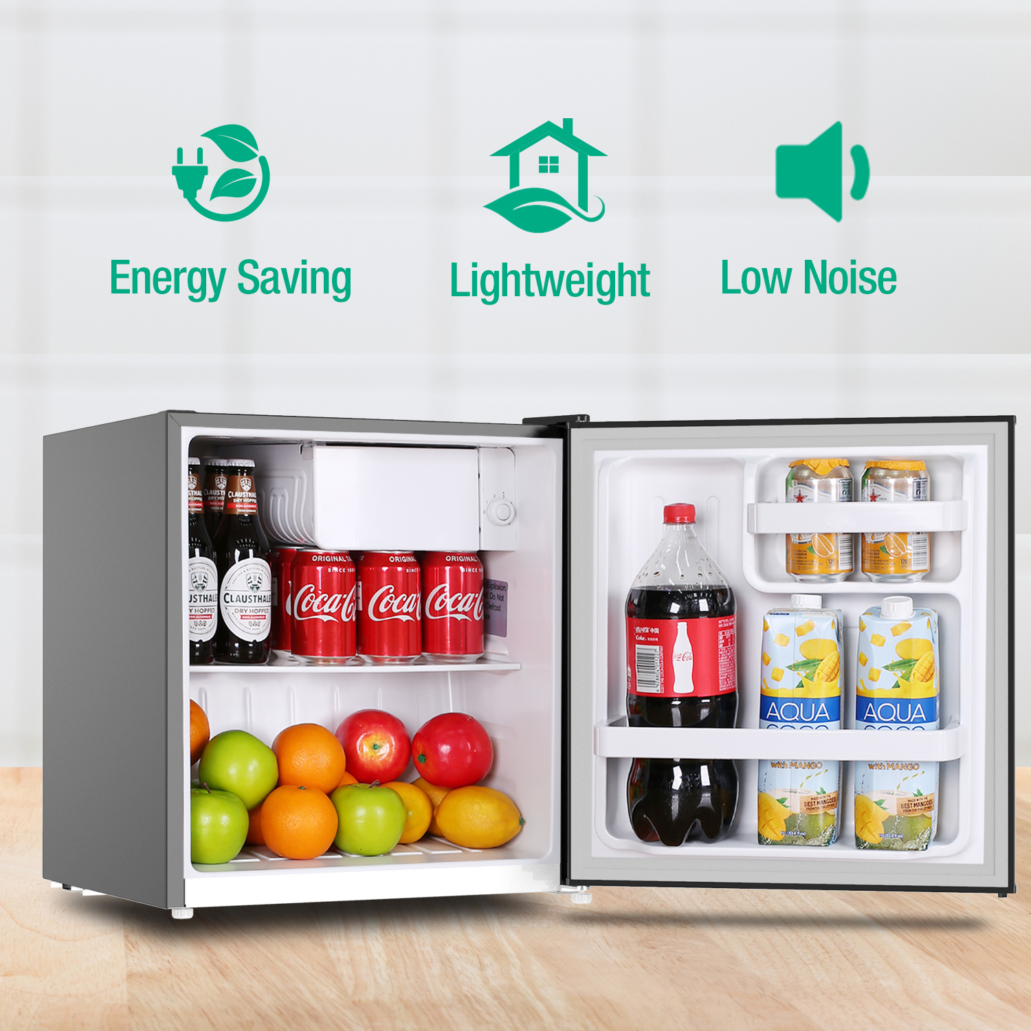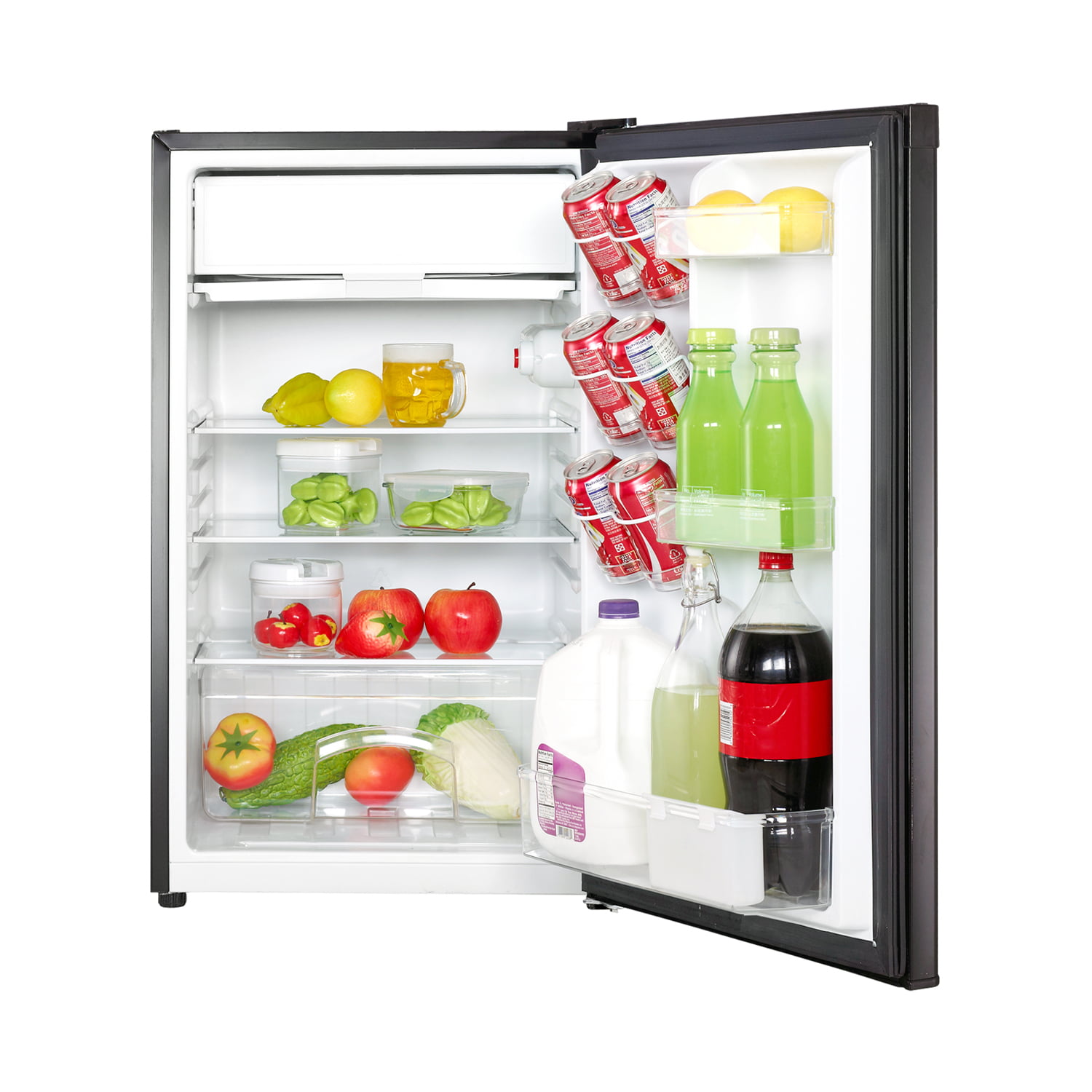 Mini Fridge with Freezer. 1.7 Cu.Ft Small Refrigerator. 6 Adjustable Thermostat Control. One-Touch Defrost. Reversible Doors Design. Dorm/Office/Home Refrigerator. Black