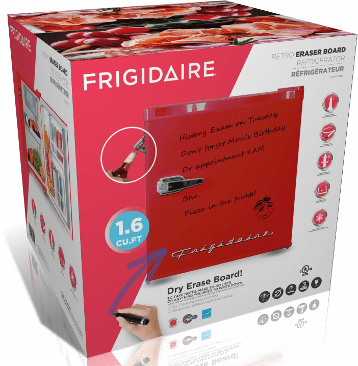 Frigidaire. 1.6 Cu ft Retro Dry Erase Compact Refrigerator With Side Bottle Opener. (EFR177). Red