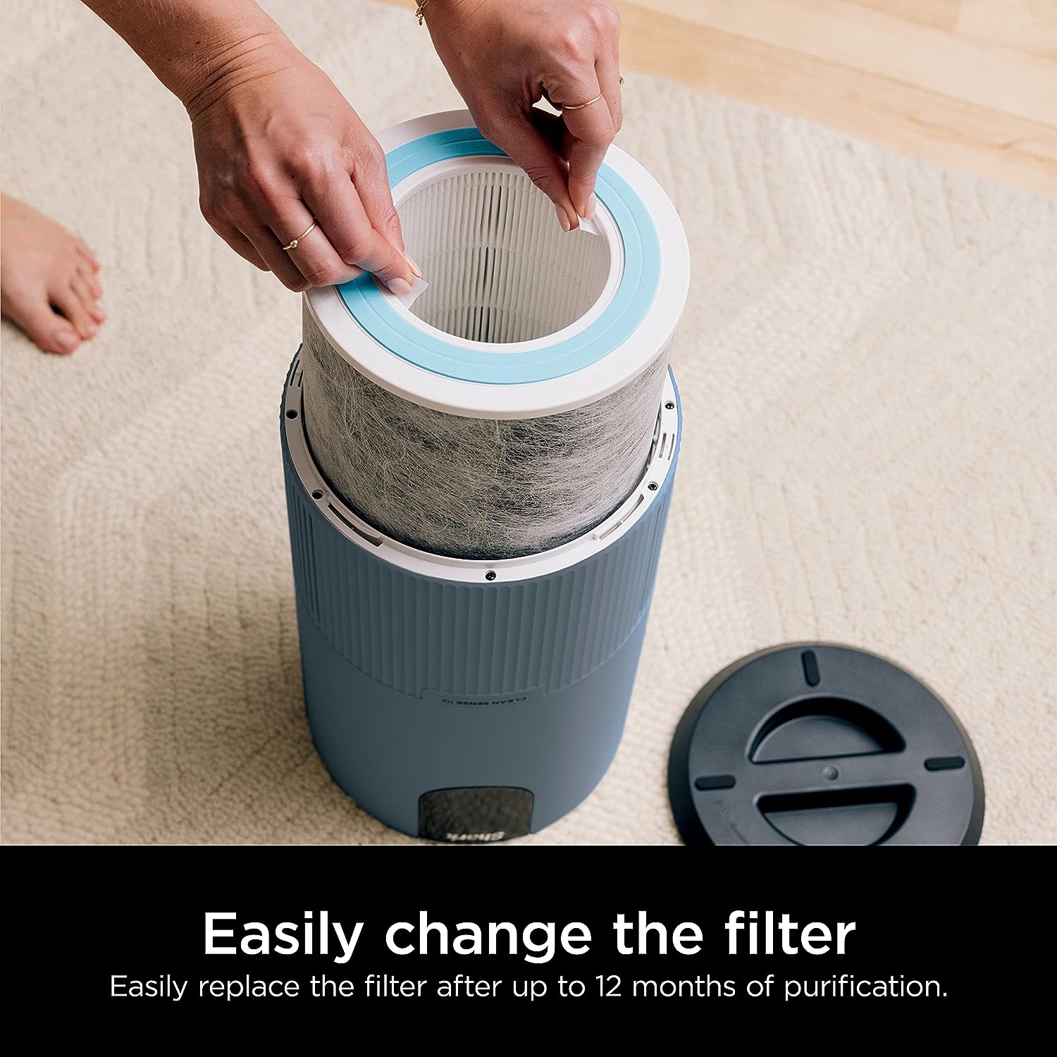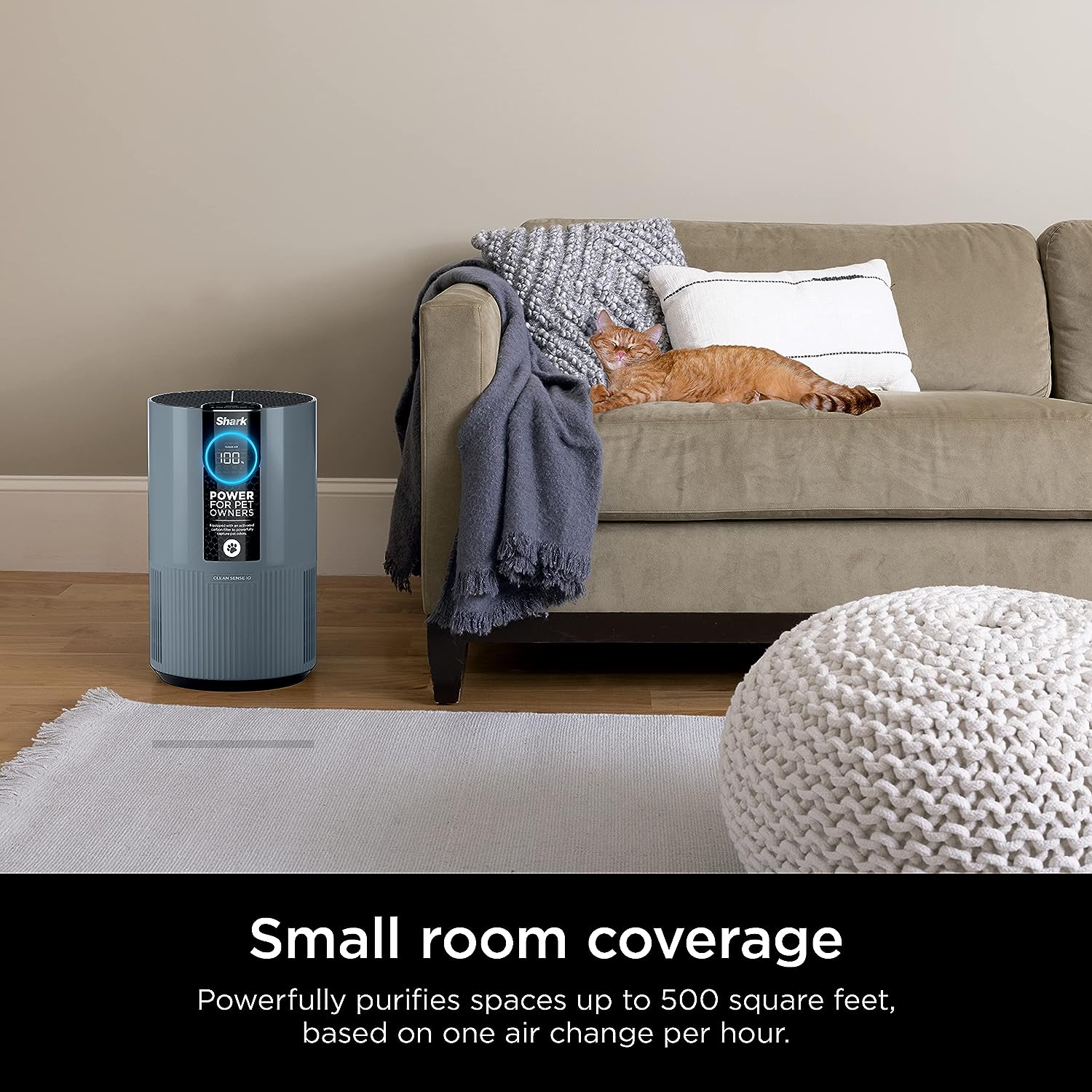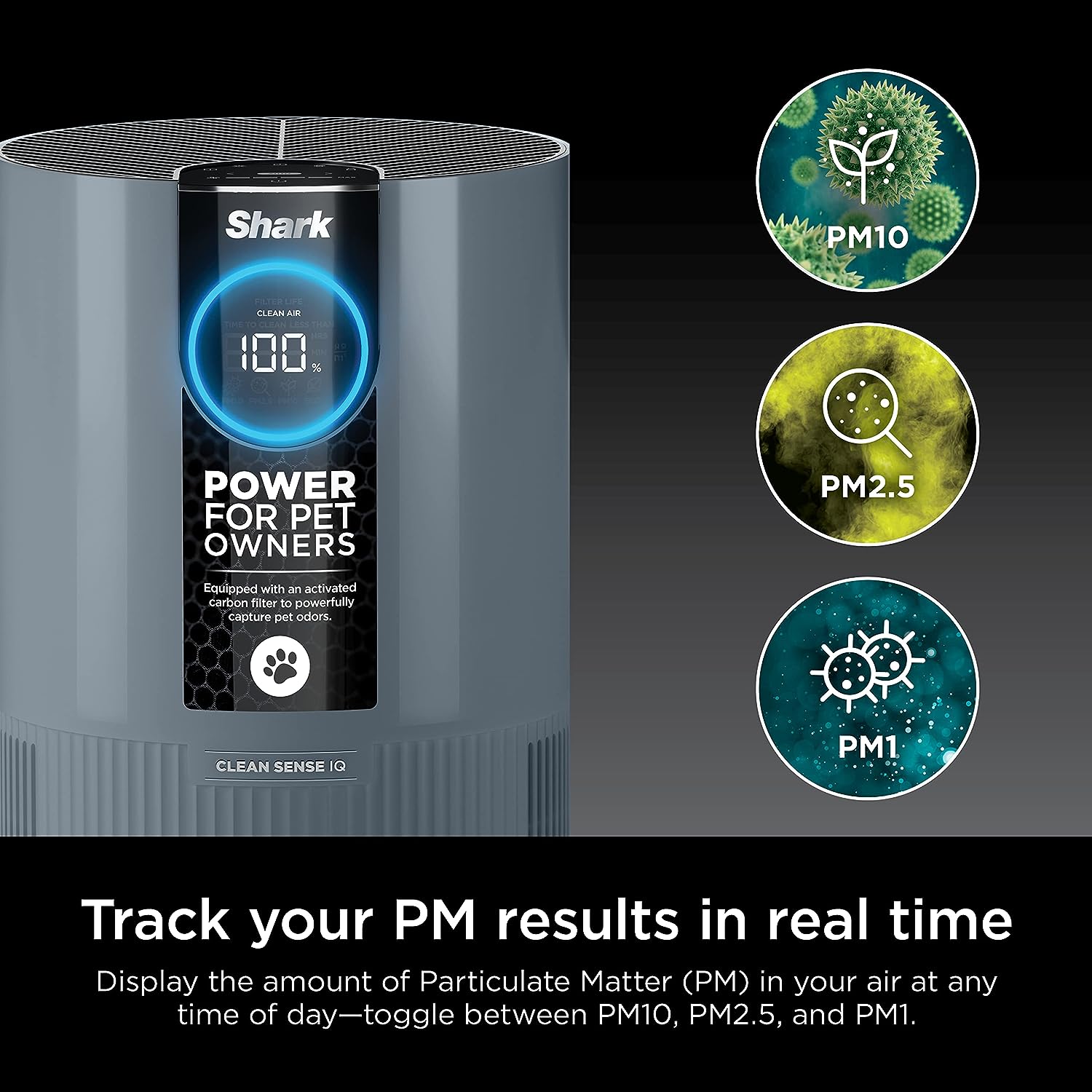 Shark HP102PETBL Clean Sense Air Purifier for Home. Allergies. Pet Hair. HEPA Filter. 500 Sq Ft Small Room. Bedroom. Captures 99.98% of Particles. Pet Dander. Fur. Allergens & Odor. Portable. Midnight. Blue