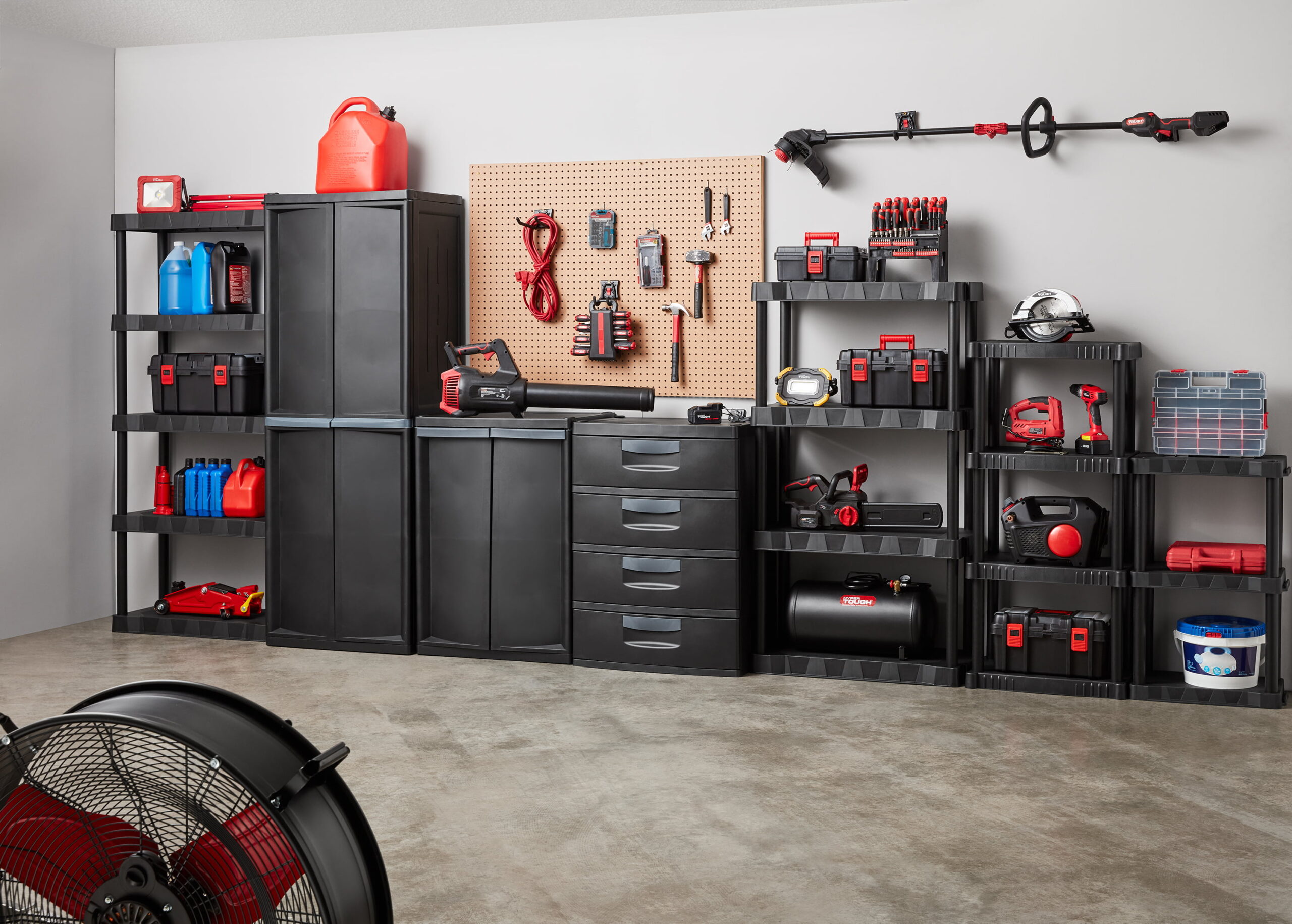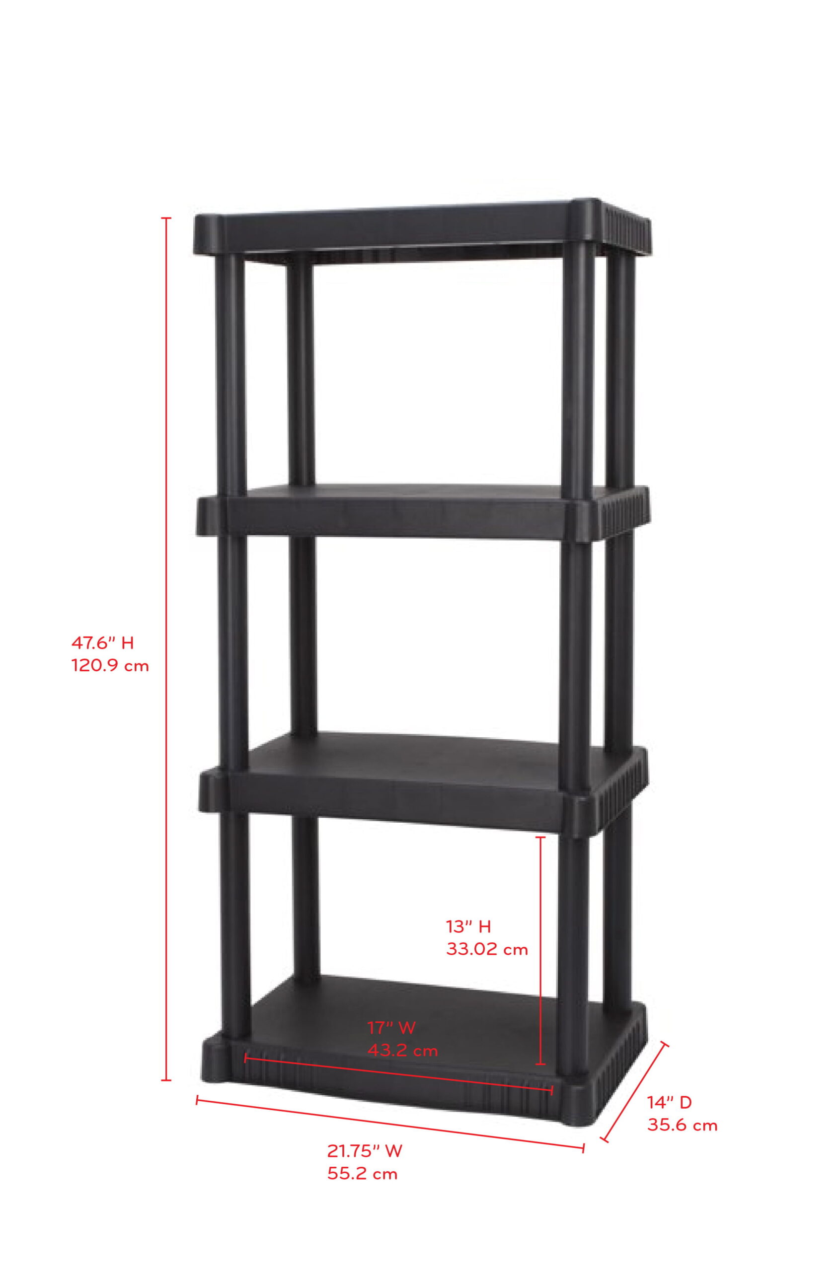 Hyper Tough 14″D x 21.75″W x 47.6″H 4 Shelf Plastic Garage Shelves. Black