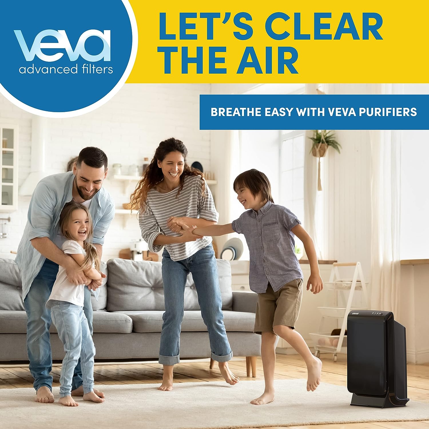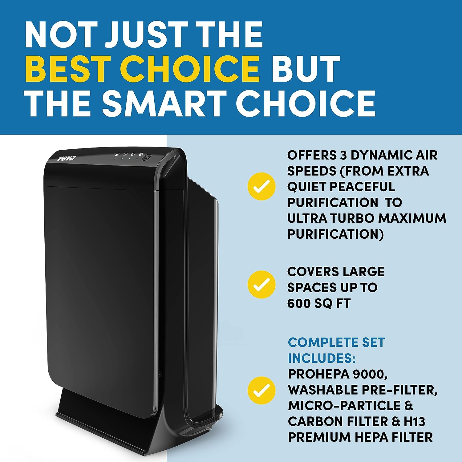VEVA Air Purifier Large Room - ProHEPA 9000 Premium Air Purifiers for Home w/ H13 Washable HEPA Filter for Smoke. Dust. Pet Dander & Odor - Black