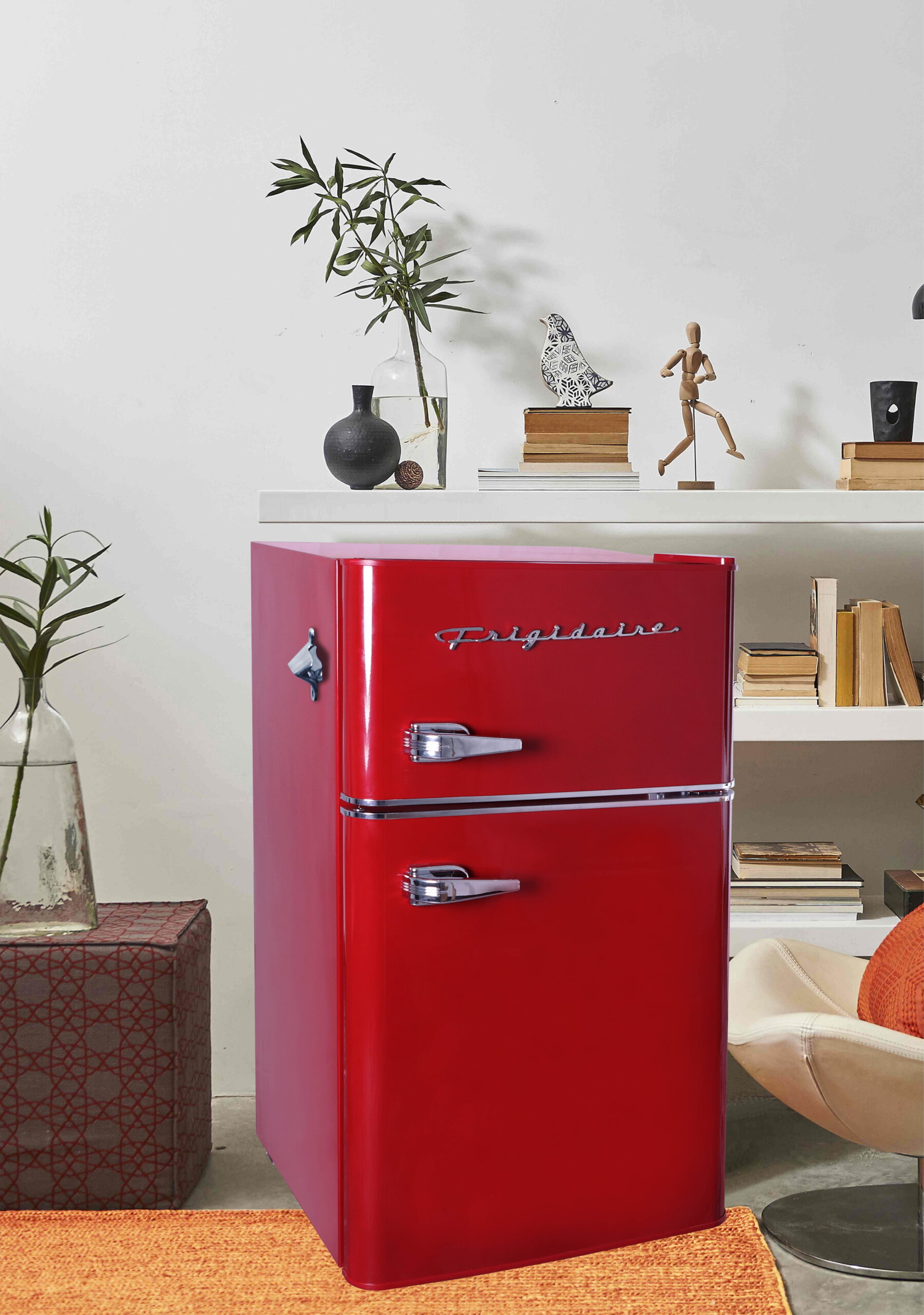 Frigidaire Retro 3.2 Cu ft Two Door Compact Refrigerator with Freezer. Red