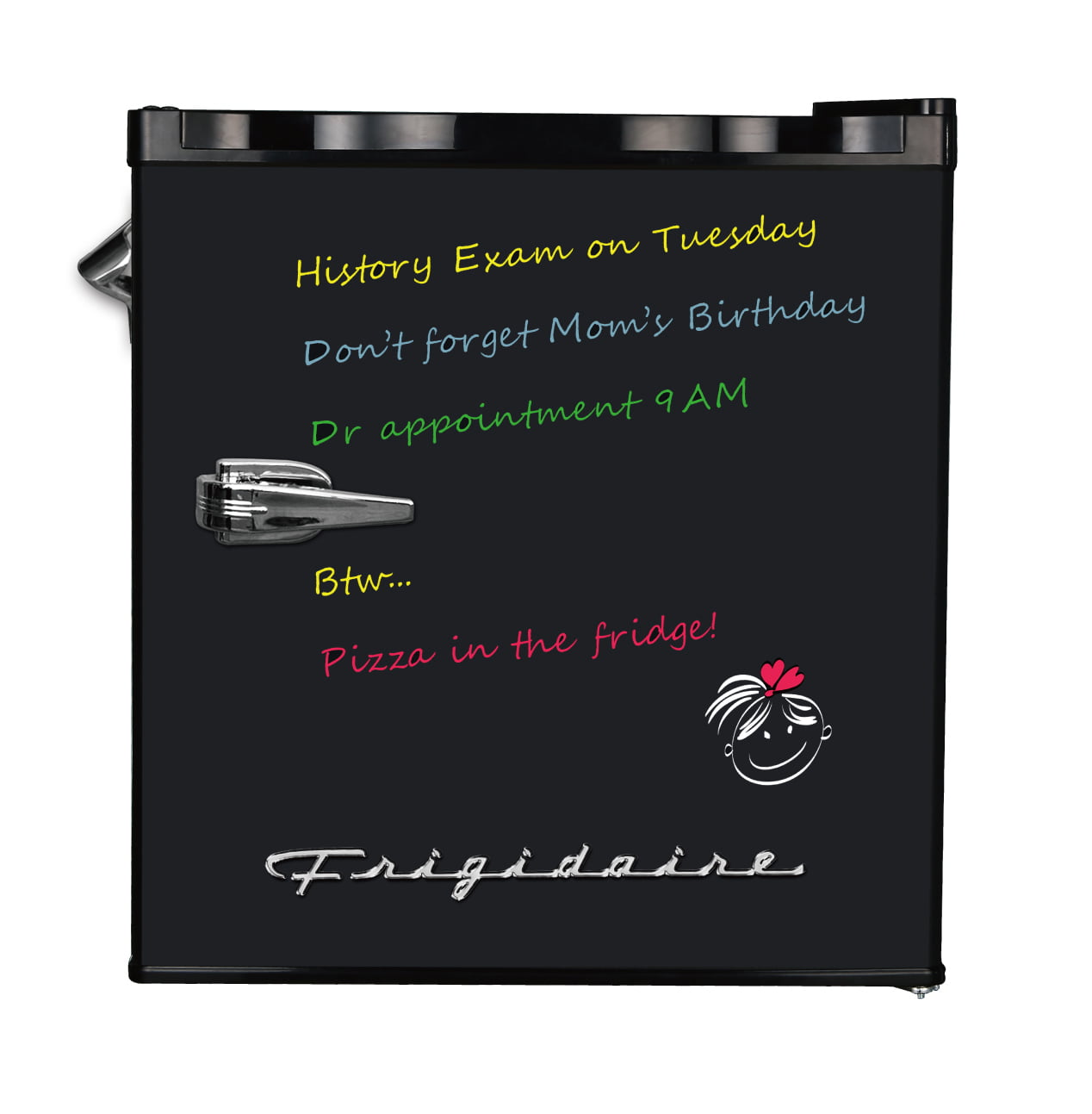 Frigidaire. 1.6 Cu ft Retro Dry Erase Compact Refrigerator With Side Bottle Opener. (EFR177). Black