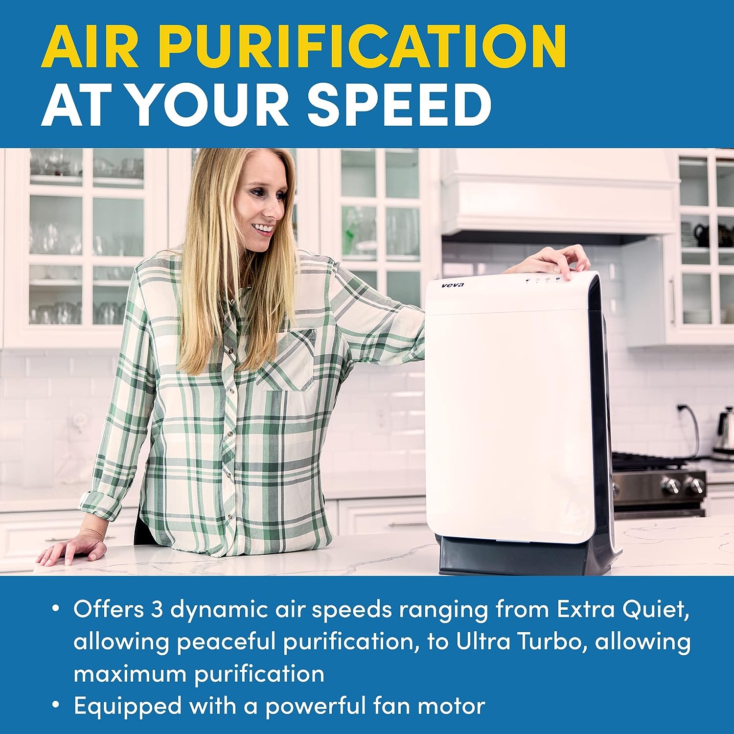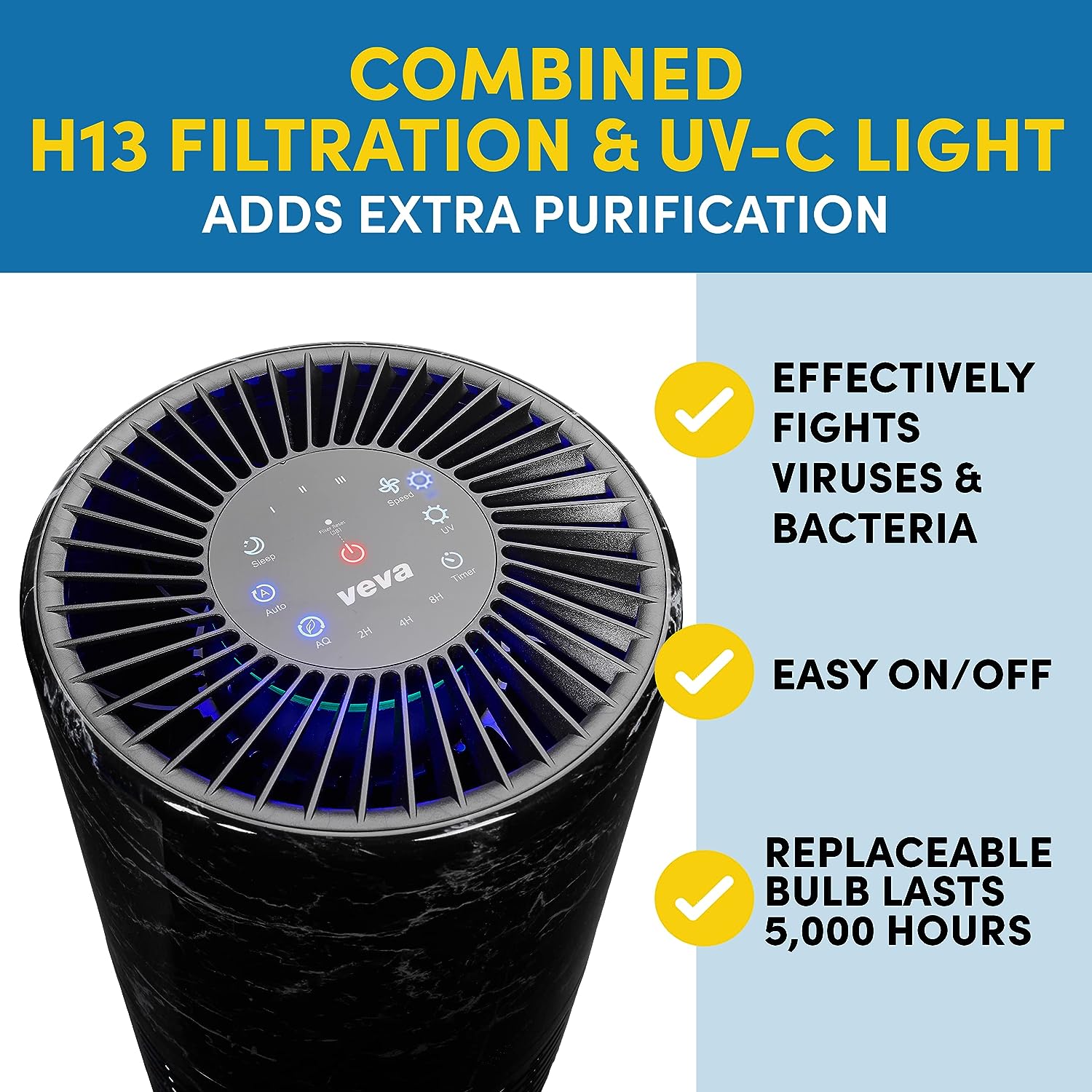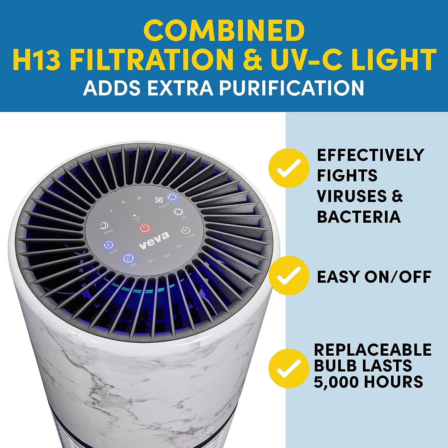VEVA Air Purifier Large Room - ProHEPA 9000 Premium Air Purifiers for Allergies. Smoke. Dust. Pet Dander & Odor with H13 Washable Filters - White