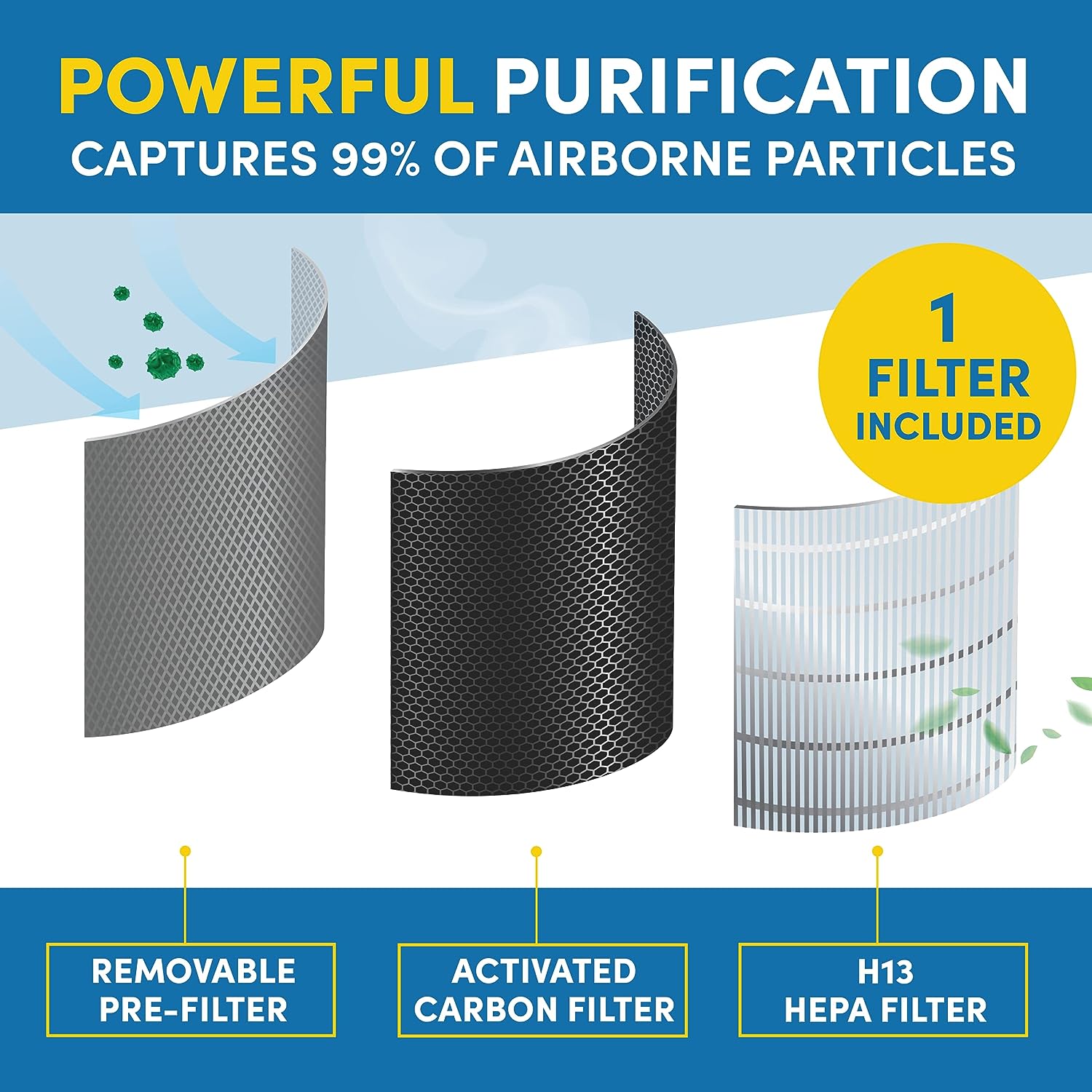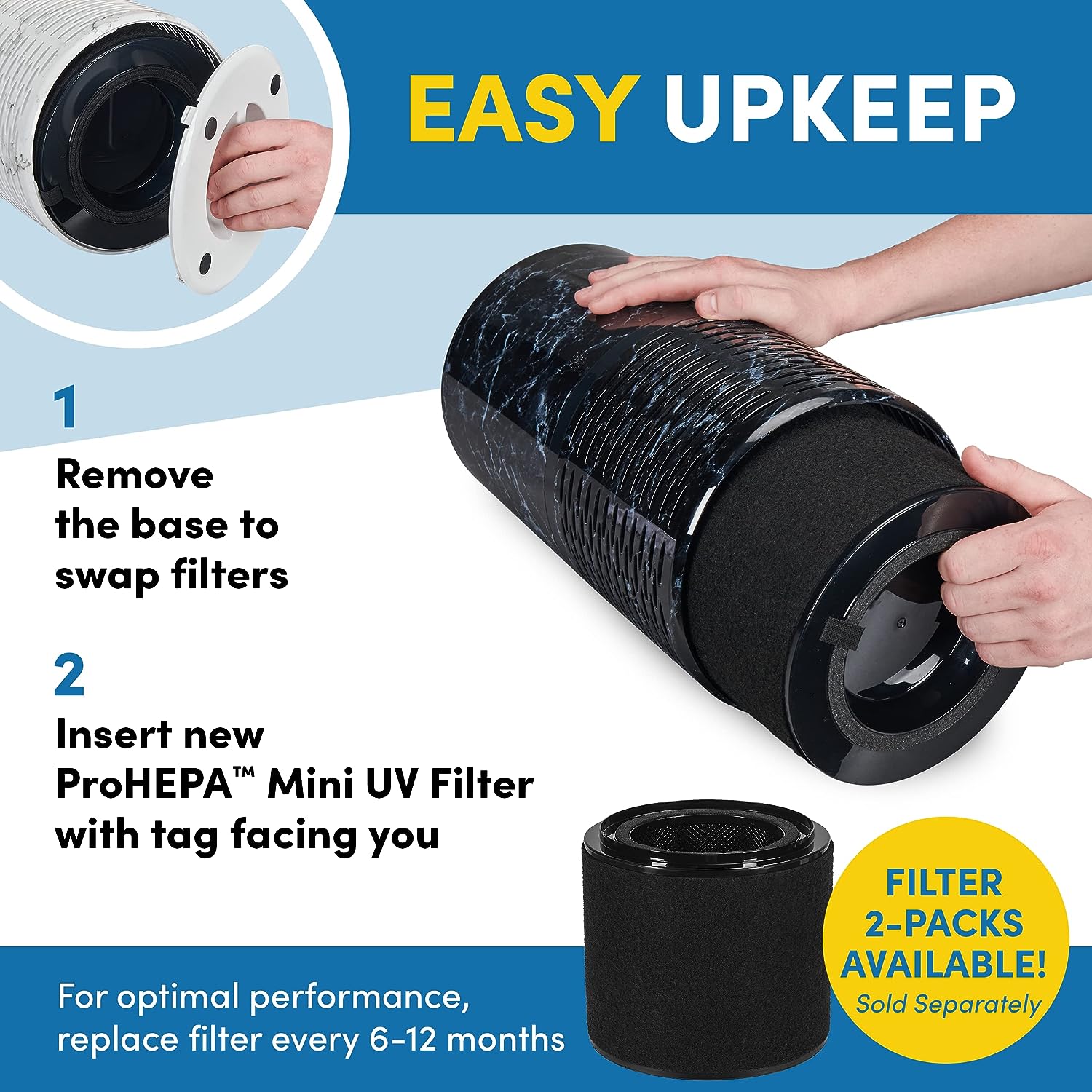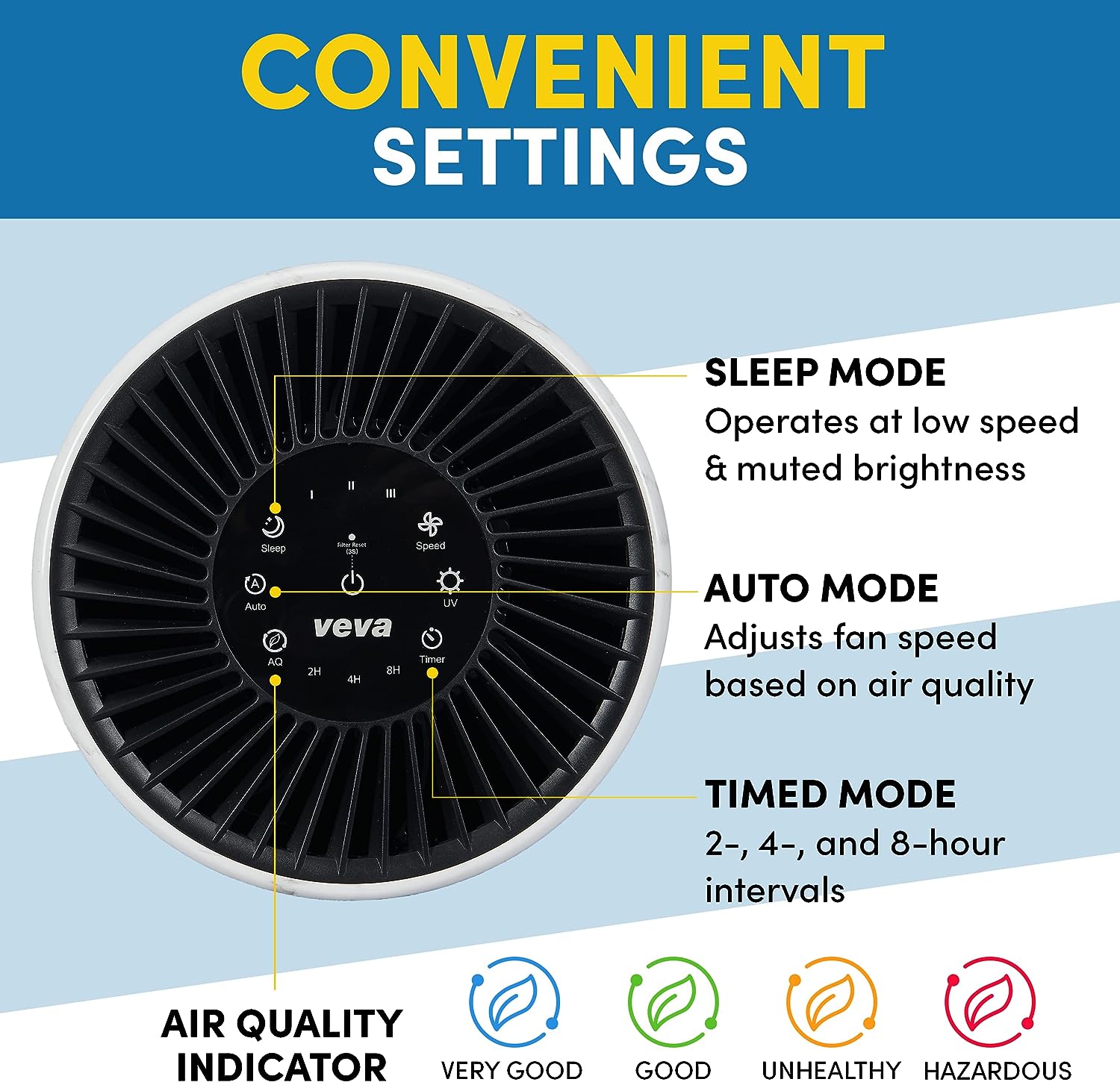 VEVA Air Purifier Large Room - ProHEPA 9000 Premium Air Purifiers for Allergies. Smoke. Dust. Pet Dander & Odor with H13 Washable Filters - White