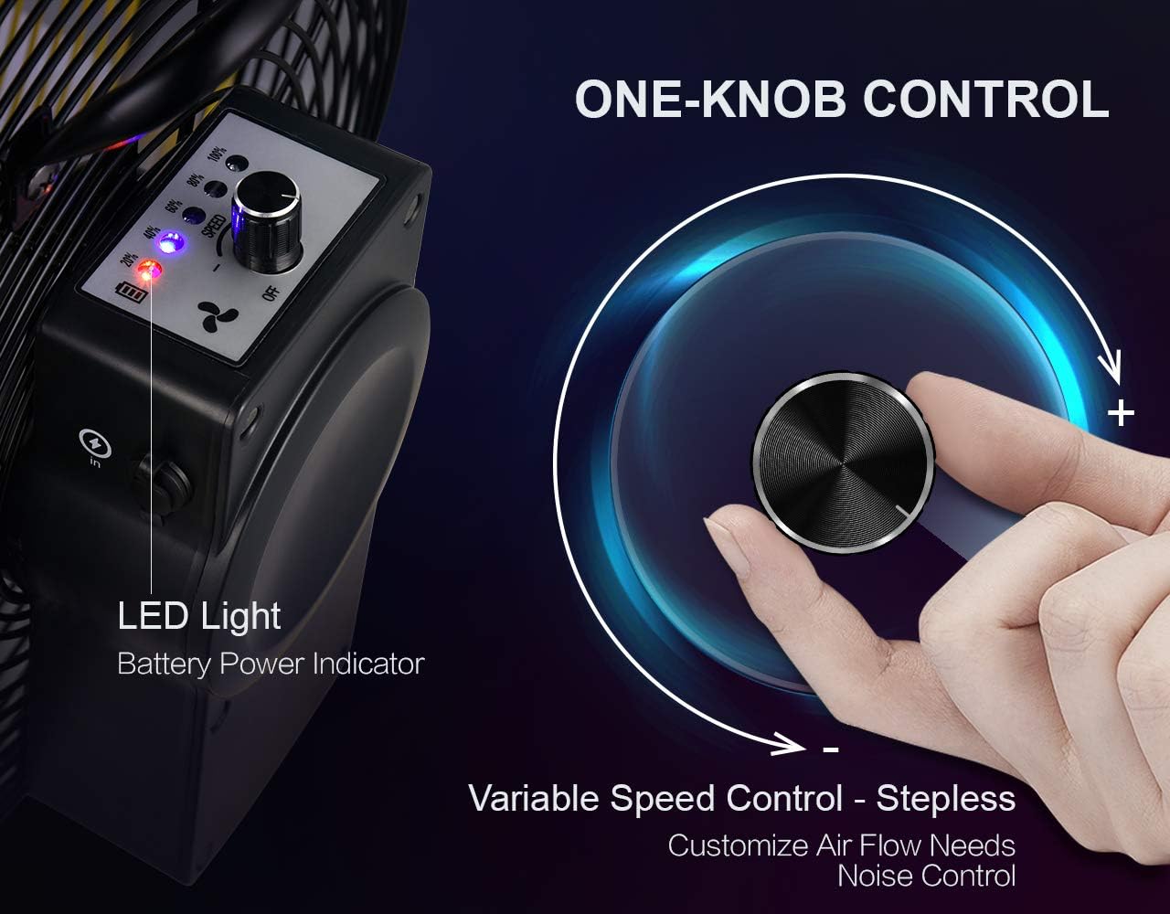 XPOWER FC-125B Portable High Velocity Battery Operated Portable Rechargeable Cordless DC Fan. Outdoor. Camping. Travel. USB Port for Charging Devices. 900 CFM. 12.000mAh