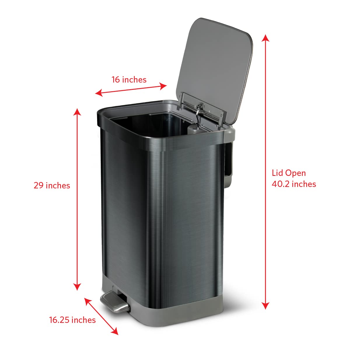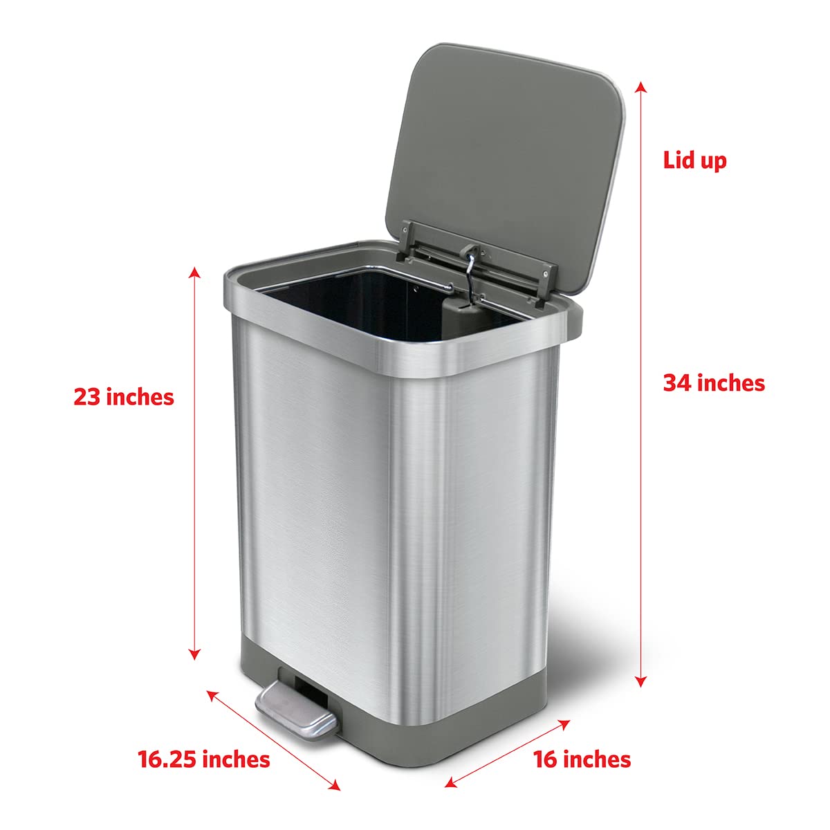 Glad Stainless Steel Step Trash Can with Clorox Odor Protection | Large Metal Kitchen Garbage Bin with Soft Close Lid. Foot Pedal and Waste Bag Roll Holder. 13 Gallon. All Stainless