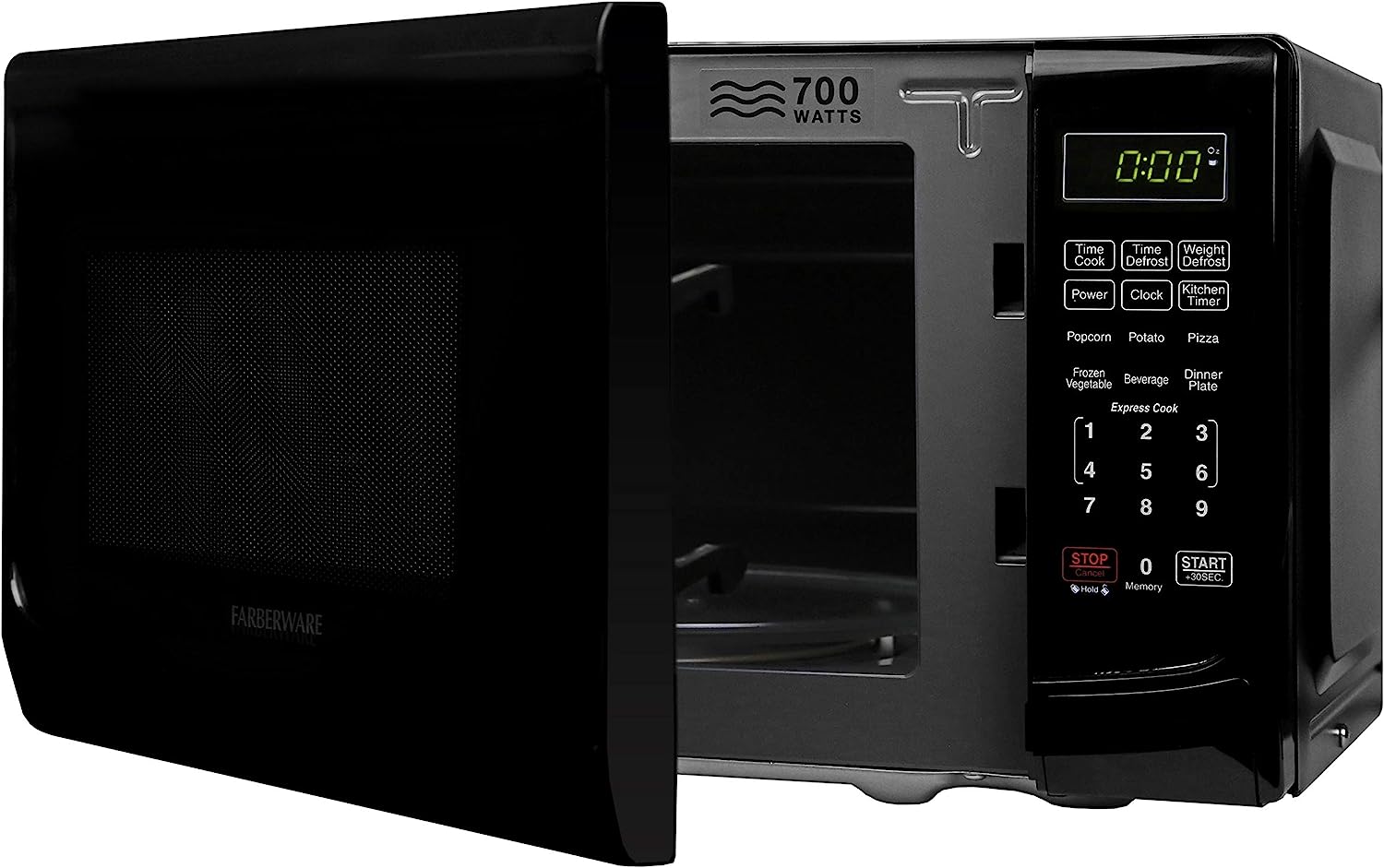 Farberware Countertop Microwave 700 Watts. 0.7 cu ft - Microwave Oven With LED Lighting and Child Lock - Perfect for Apartments and Dorms - Easy Clean Grey Interior. Retro Black