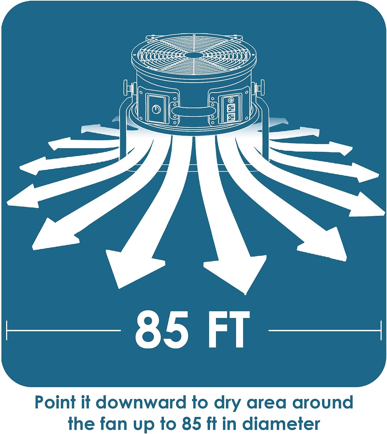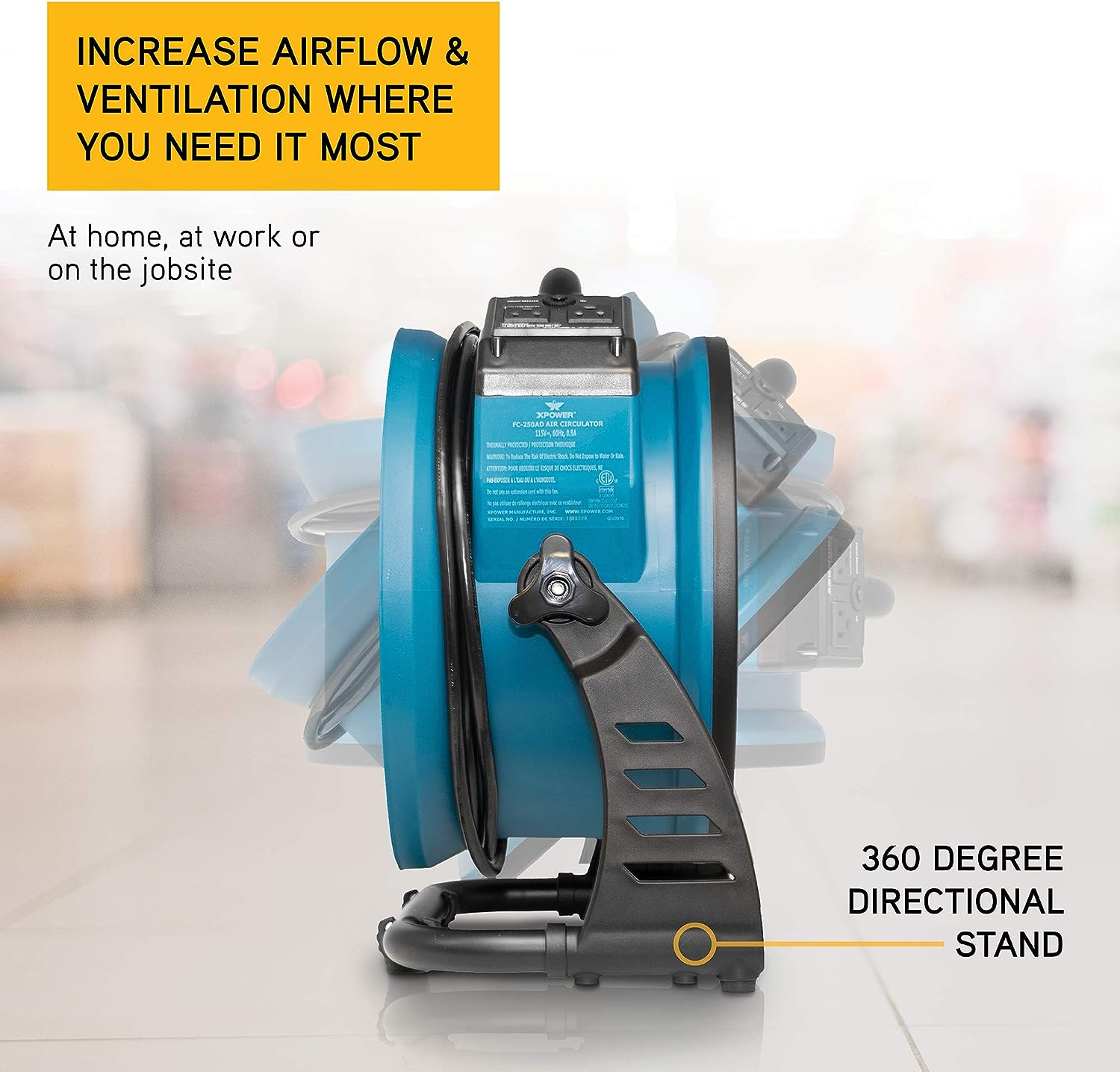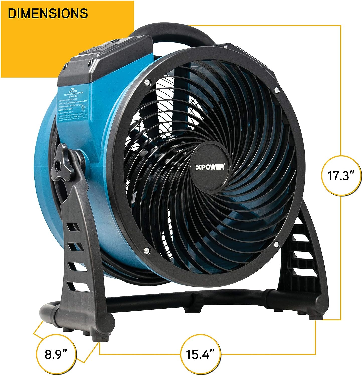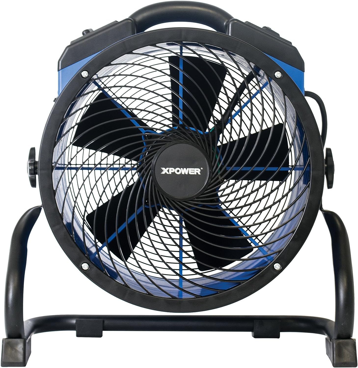 XPOWER FC-300 Heavy Duty Industrial High Velocity Whole Room Air Mover Air Circulator Utility Shop Floor Fan. Variable Speed. Timer. 14 inch. 2100 CFM. Black. Blue