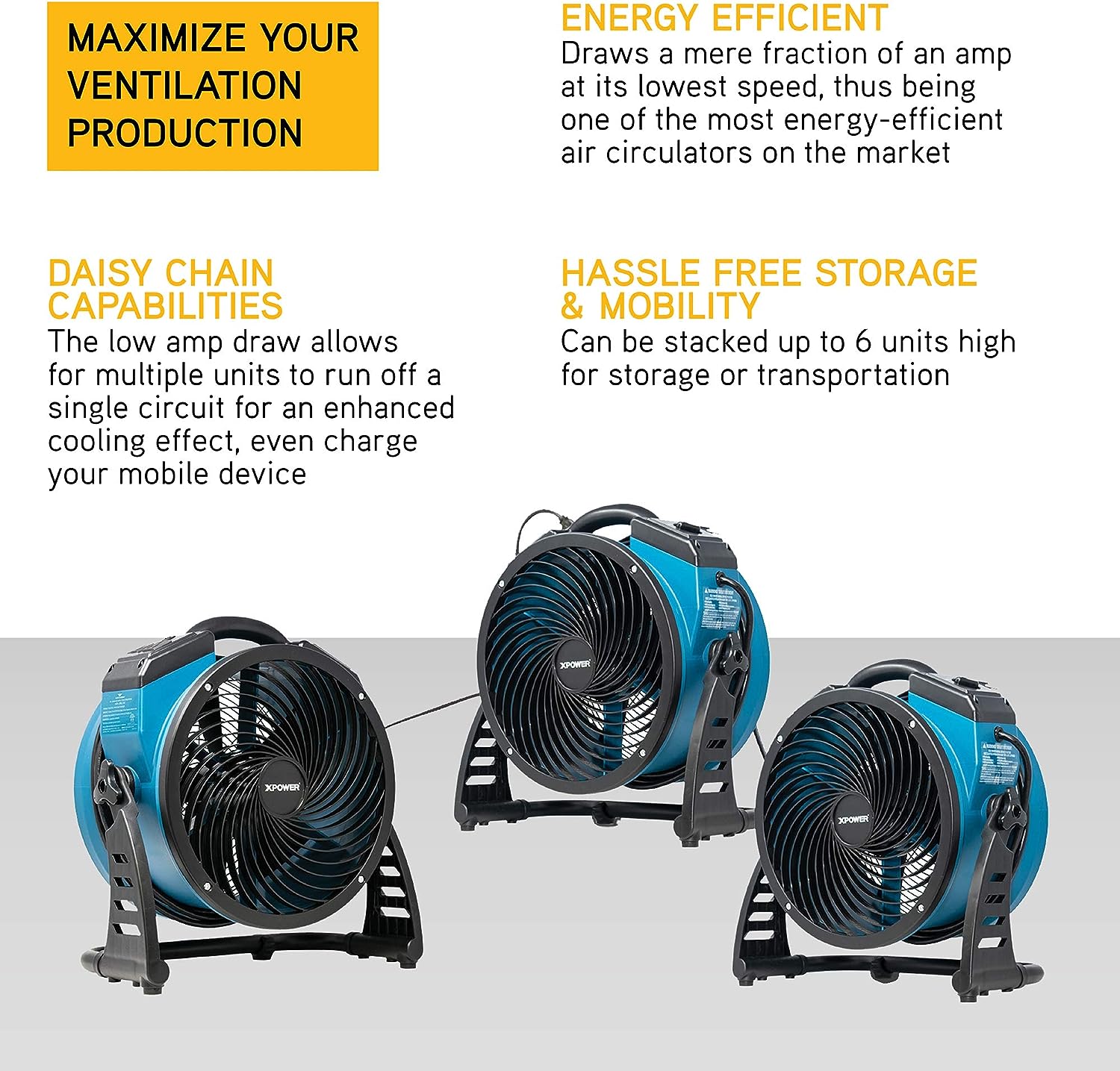 XPOWER FC-250AD DC Motor Heavy Duty Industrial High Velocity Whole Room Air Mover Air Circulator Utility Floor Fan with Daisy Chain. Variable Speed. Timer. 13 inch. 1560 CFM