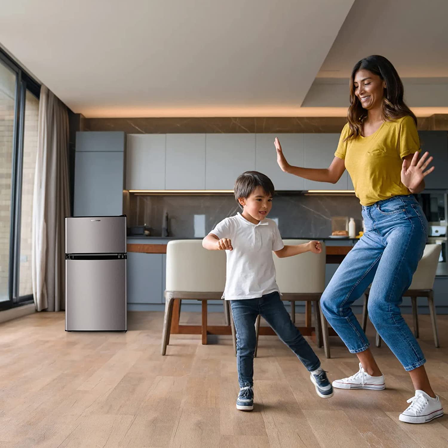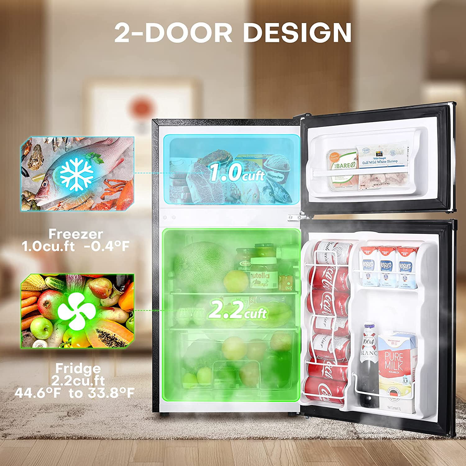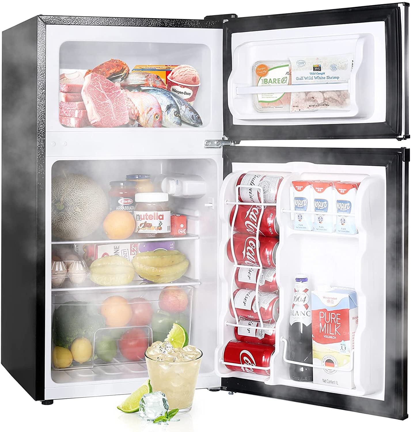 Upstreman 3.2 Cu.ft Mini Fridge with Freezer. Double Door Mini Refrigerator
