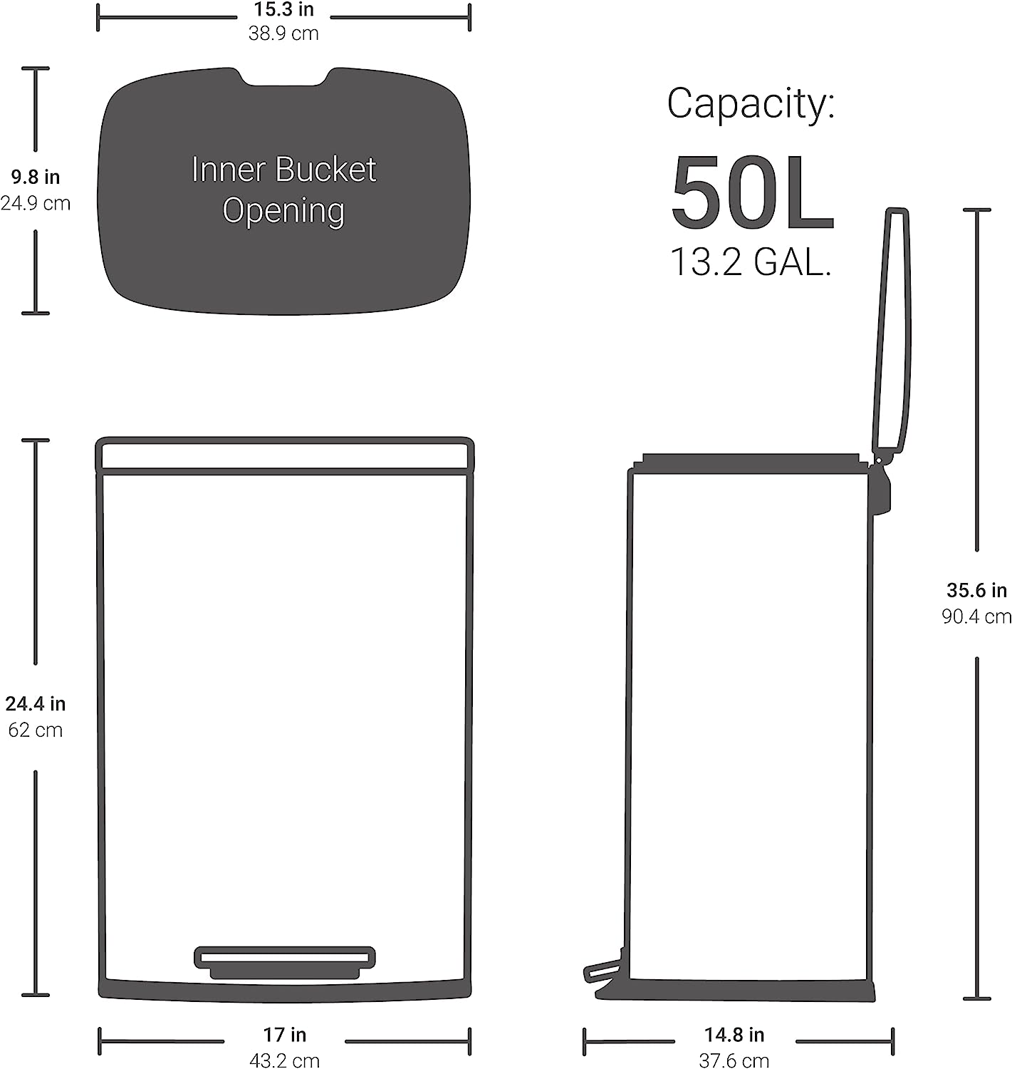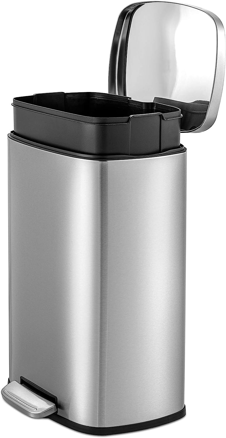 QUALIAZERO 50L/13Gal Heavy Duty Hands-Free Stainless Steel Commercial/Kitchen Step Trash Can. Fingerprint-Resistant Soft Close Lid Trashcan. 50L / 13 GAL