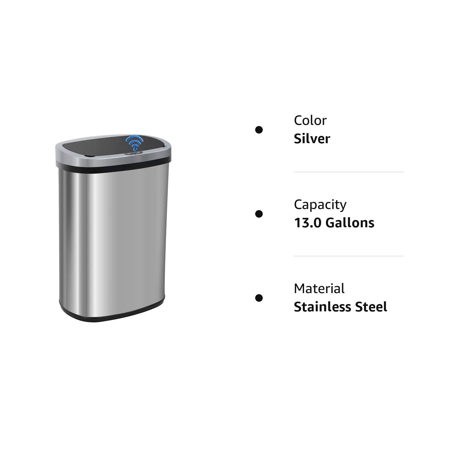 FDW Garbage Can 13 Gallon 50 Liter Kitchen Trash Can for Bathroom Bedroom Home Office Automatic Touch Free High-Capacity with Lid Brushed Stainless Steel Waste Bin