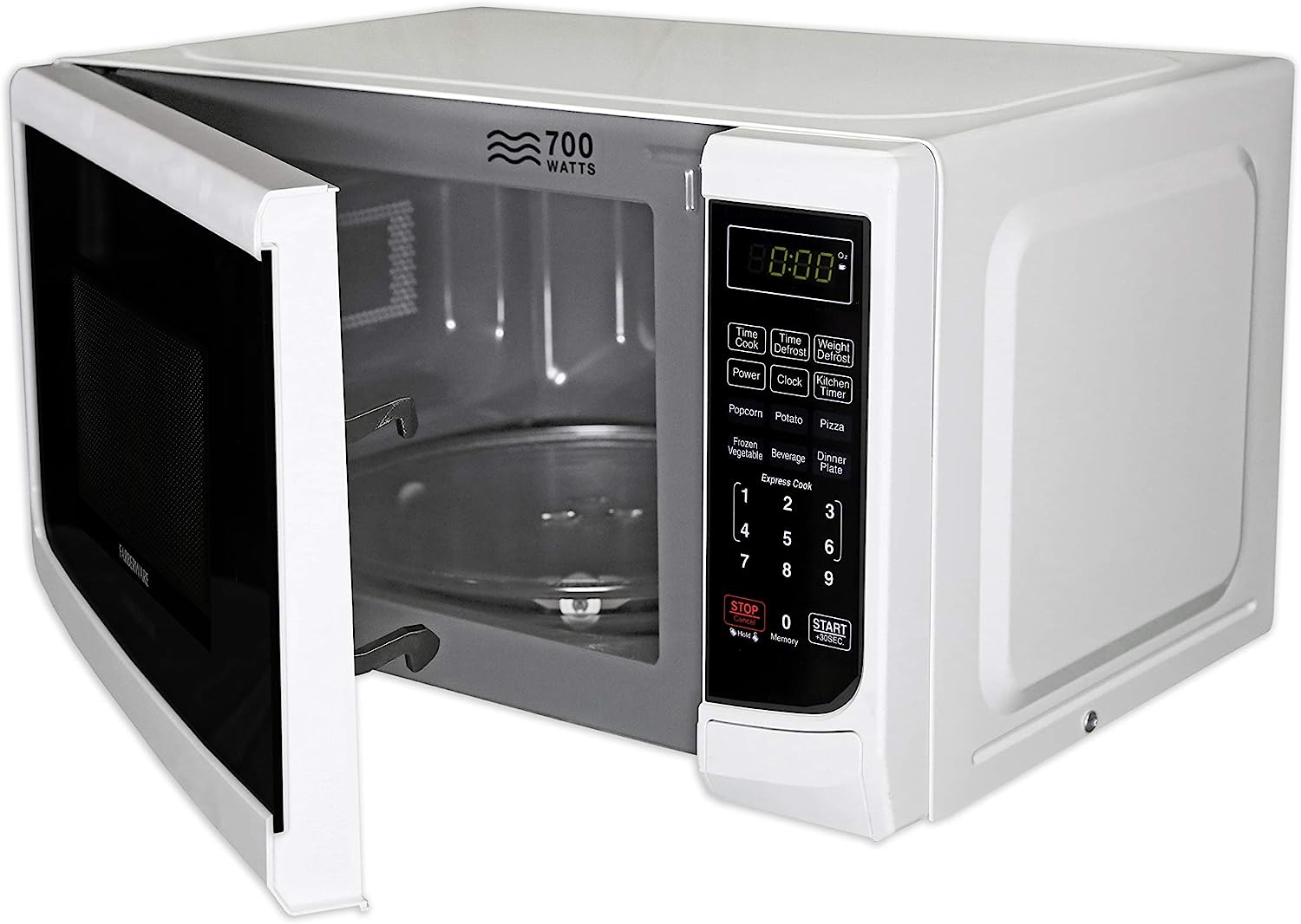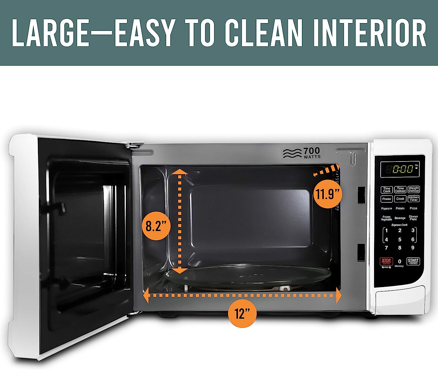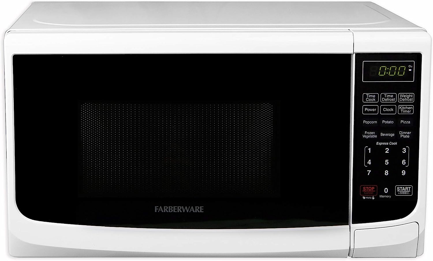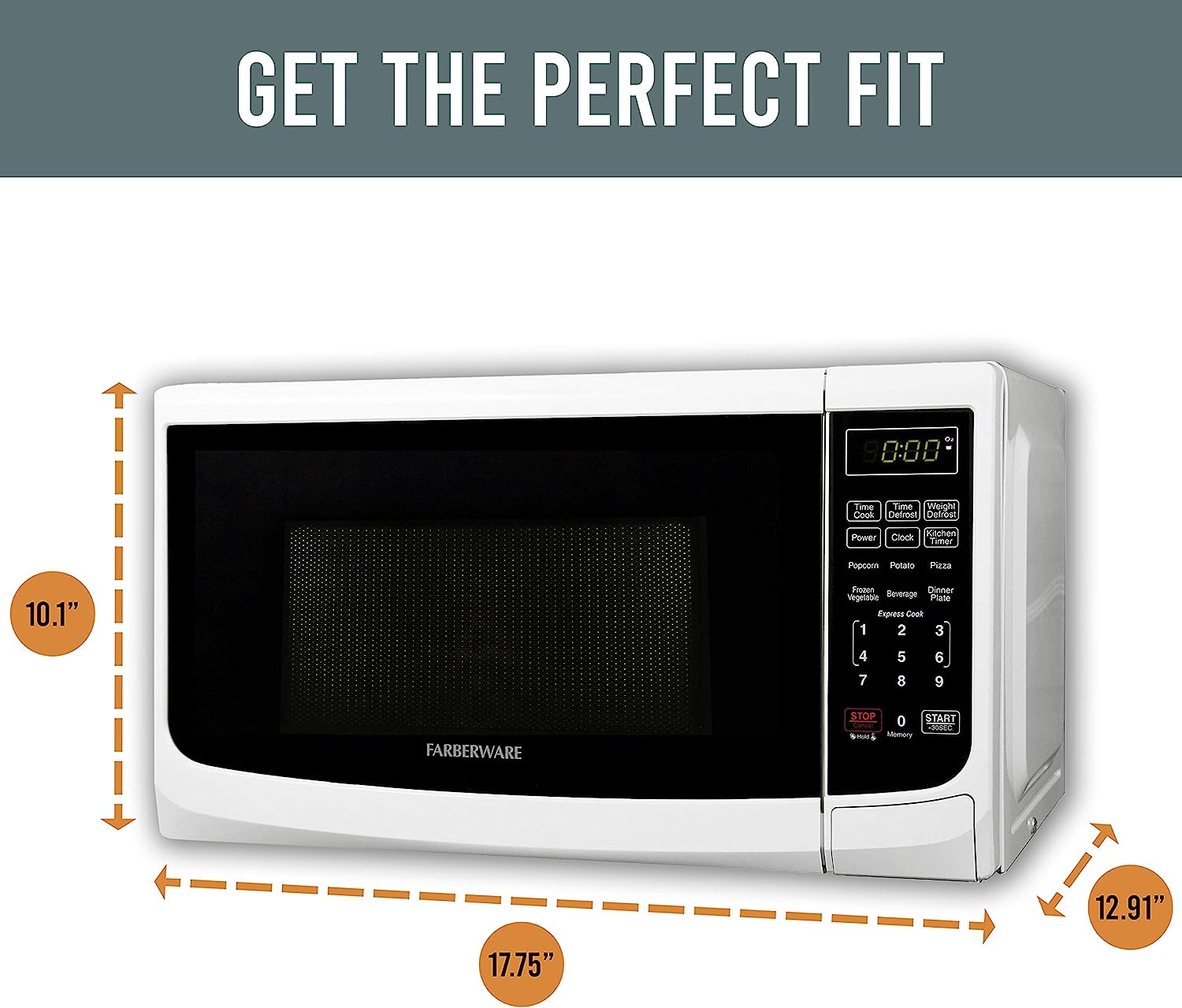 Farberware Countertop Microwave 700 Watts. 0.7 cu ft - Microwave Oven With LED Lighting and Child Lock - Perfect for Apartments and Dorms - Easy Clean Grey Interior. Retro White