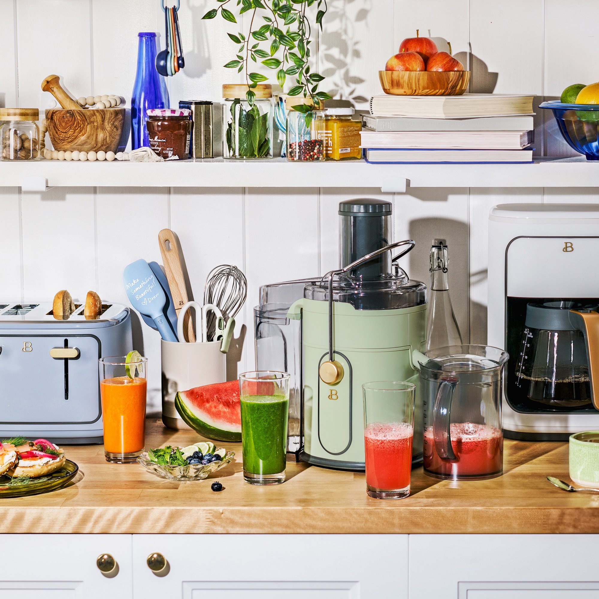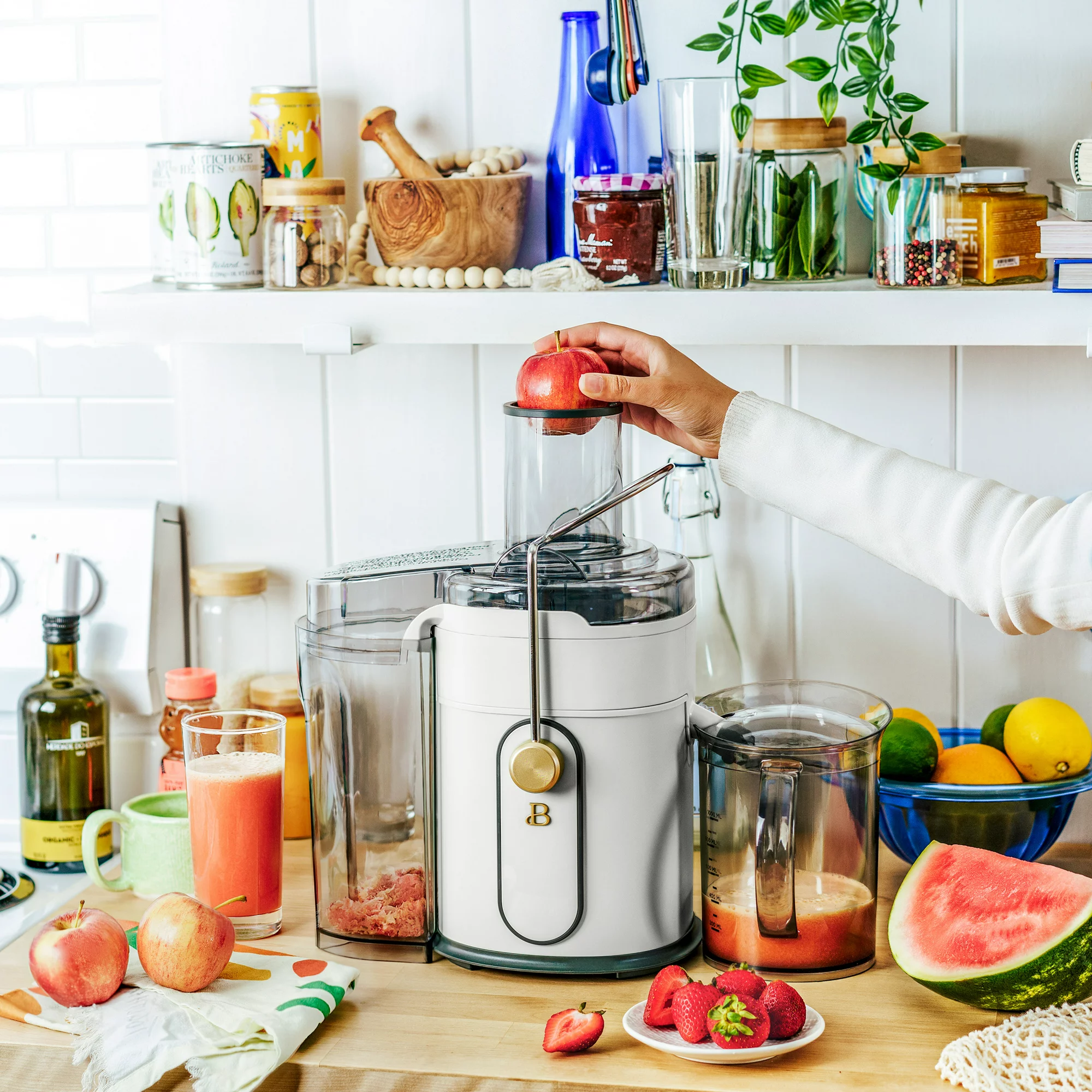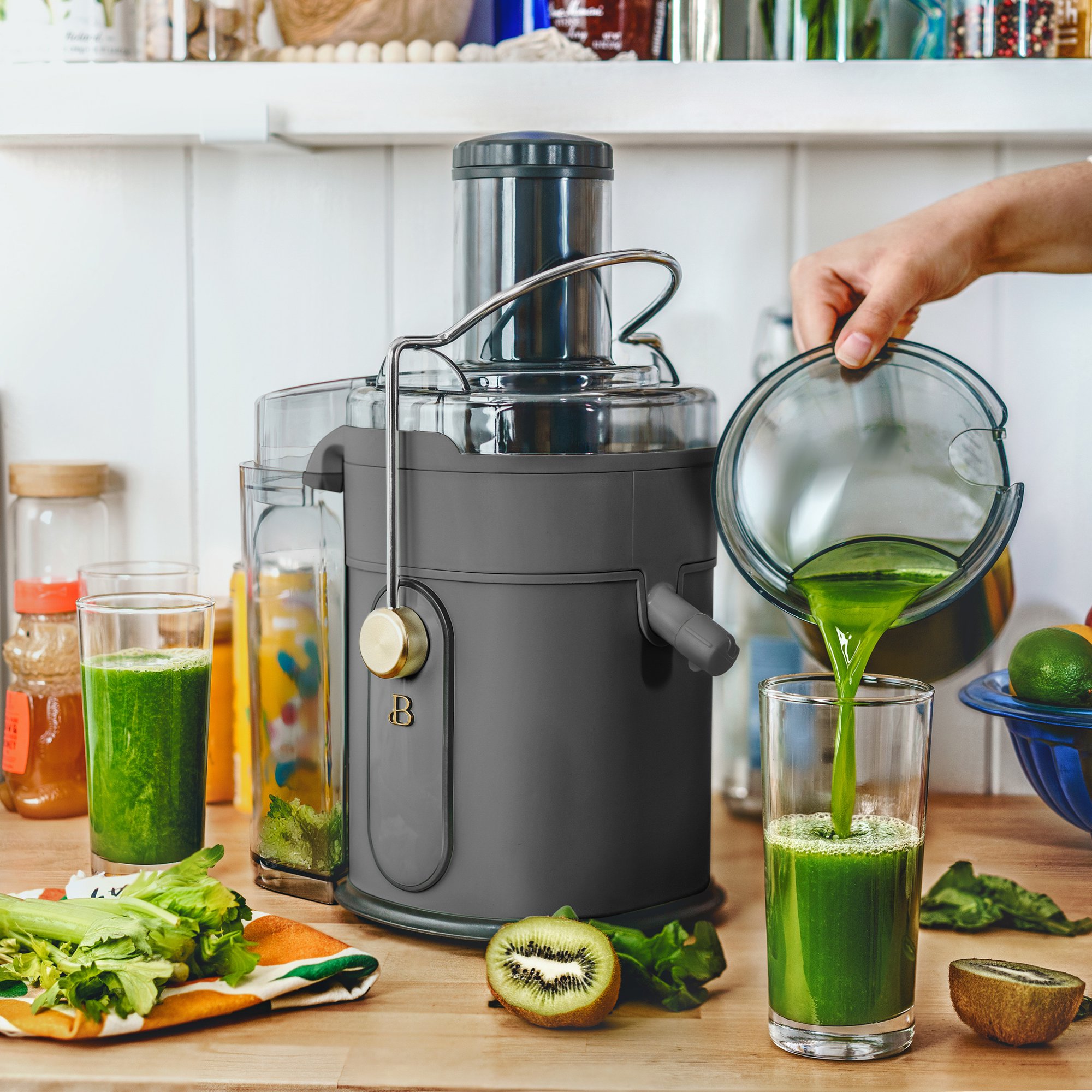 Beautiful 5-Speed 1000W Electric Juice Extractor with Touch Activated Display. Oyster Grey by Drew Barrymore