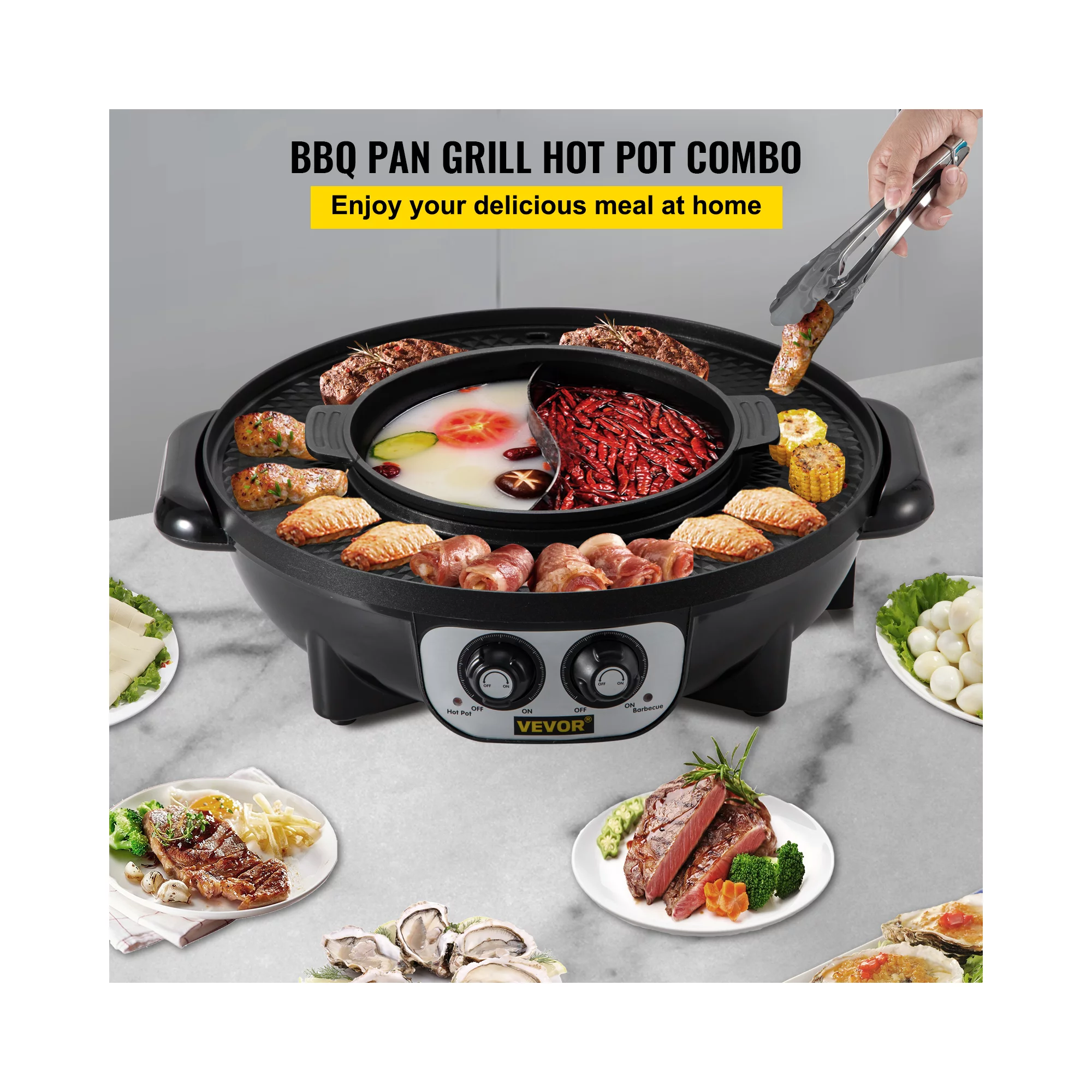 Vevor 2-in-1 2200W Electric Hot Pot and Grill with Dual Temp Control. Nonstick Coating. Black