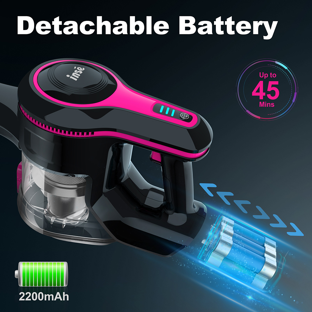 INSE Cordless Vacuum Cleaner. 23Kpa 265W Brushless Motor Stick Vacuum. up to 45 Mins Max Runtime. 12-in-1 Lightweight Handheld for Carpet Hard Floor Pet Hair