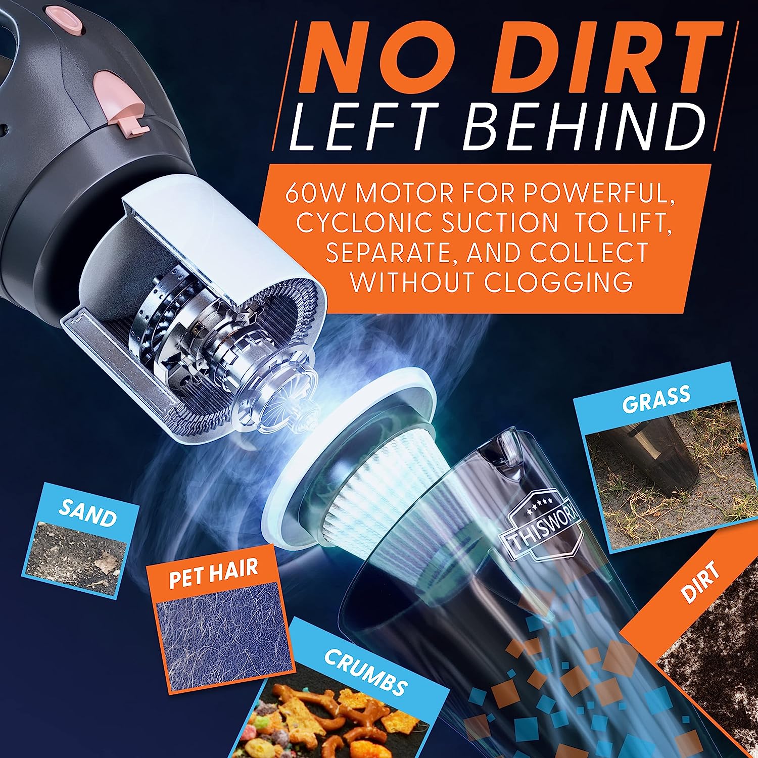 ThisWorx Cordless Car Vacuum - Portable. Mini Handheld Vacuum w/Rechargeable Battery and 3 Attachments - High-Powered Vacuum Cleaner w/ 60w Motor. Black Cordless
