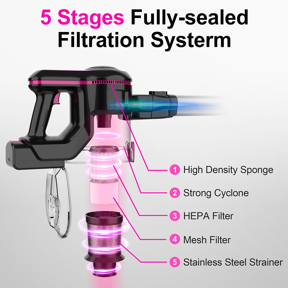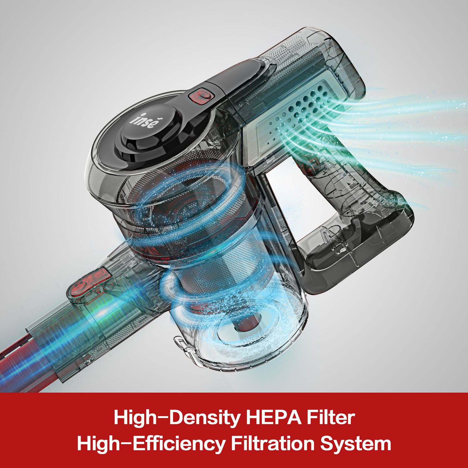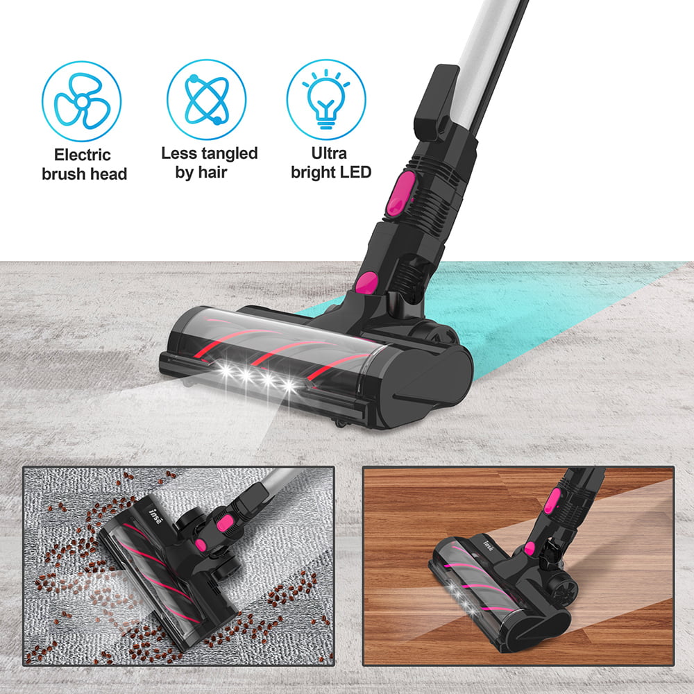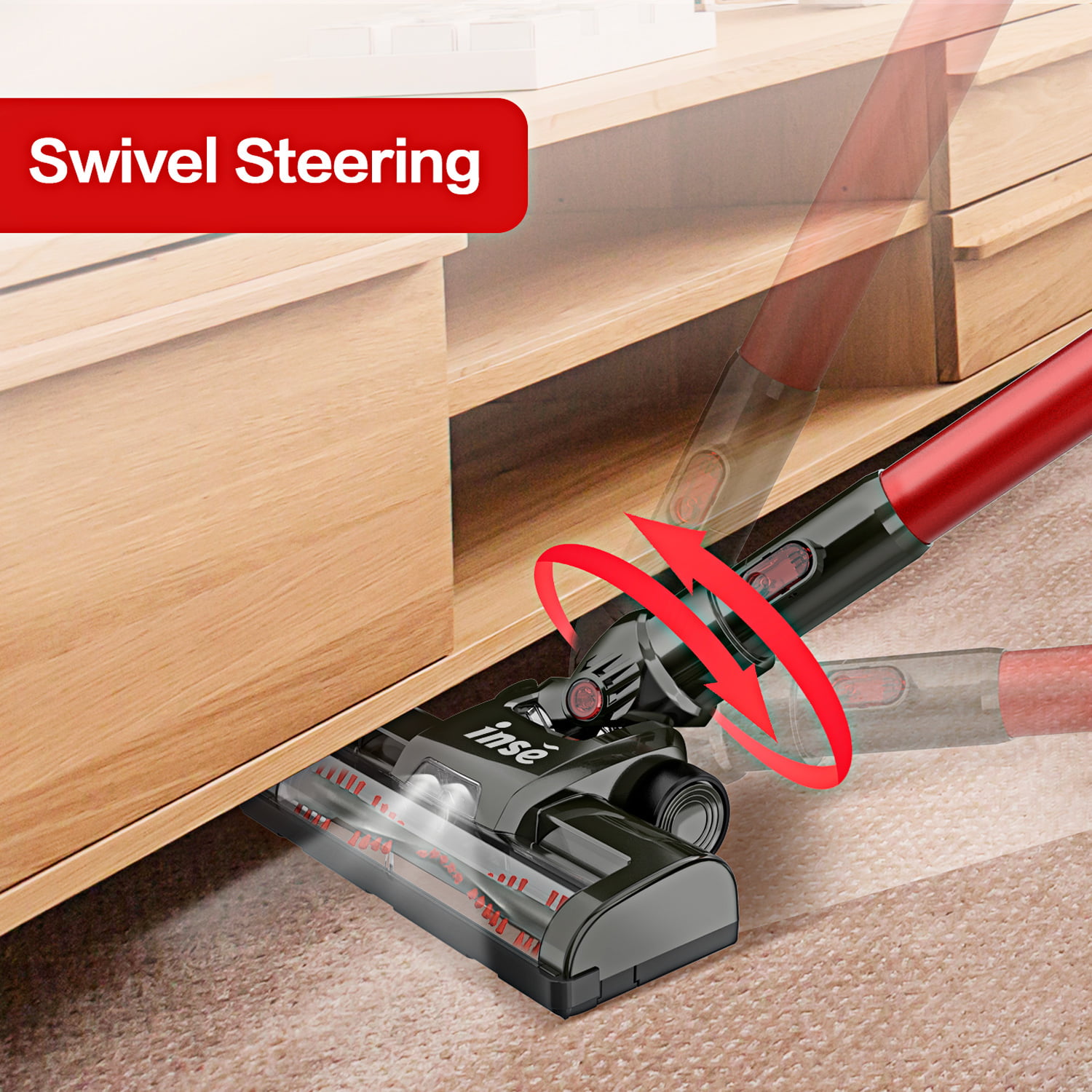 INSE Cordless Vacuum Cleaner. 6-in-1 Rechargeable Stick Vacuum. 20kPa Powerful Lightweight Vacuum Cleaner up to 45 Mins Runtime. for Home Hard Floor Carpet Pet Hair. Red