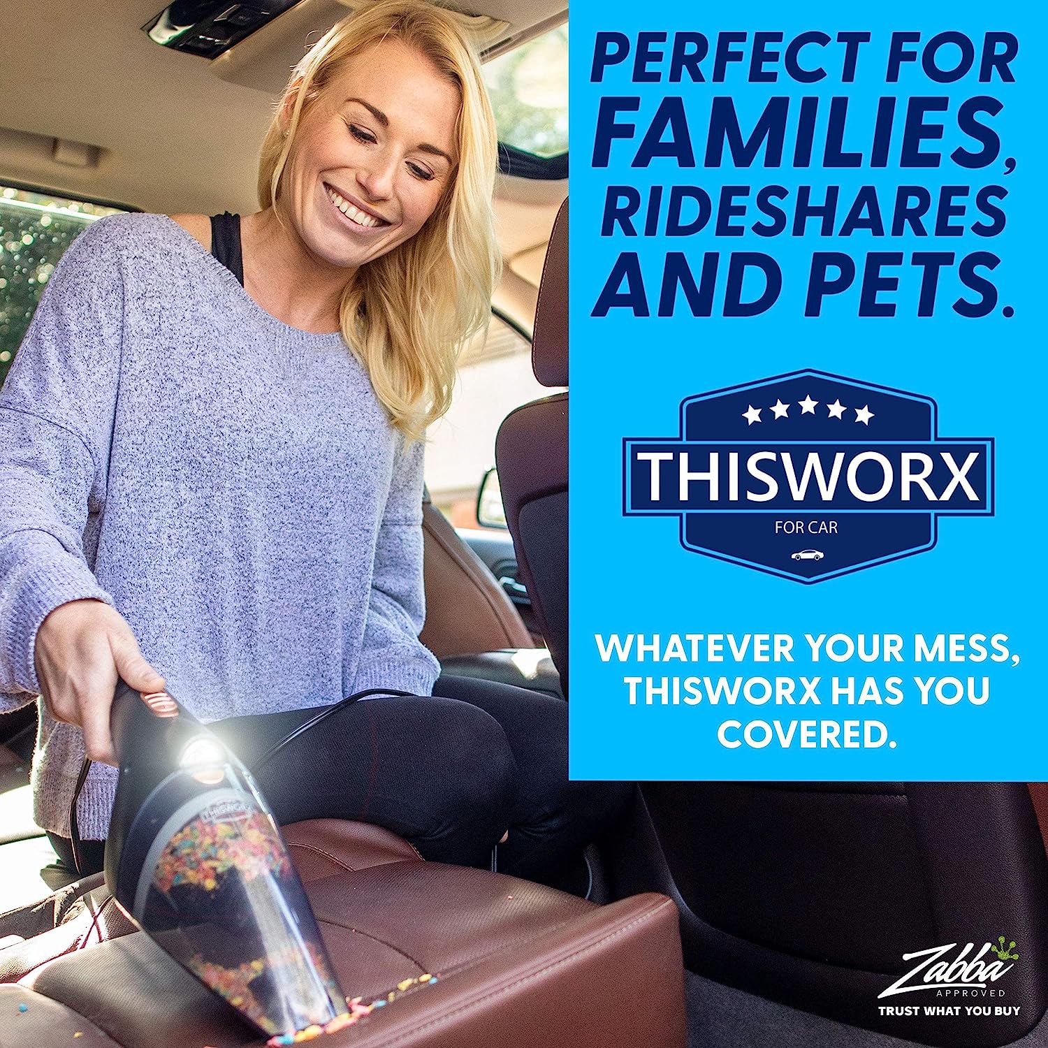 ThisWorx Car Vacuum Cleaner - Car Accessories - Small 12V High Power Handheld Portable Car Vacuum w/Attachments. 16 Ft Cord & Bag - Detailing Kit Essentials for Travel. RV Camper. White Corded