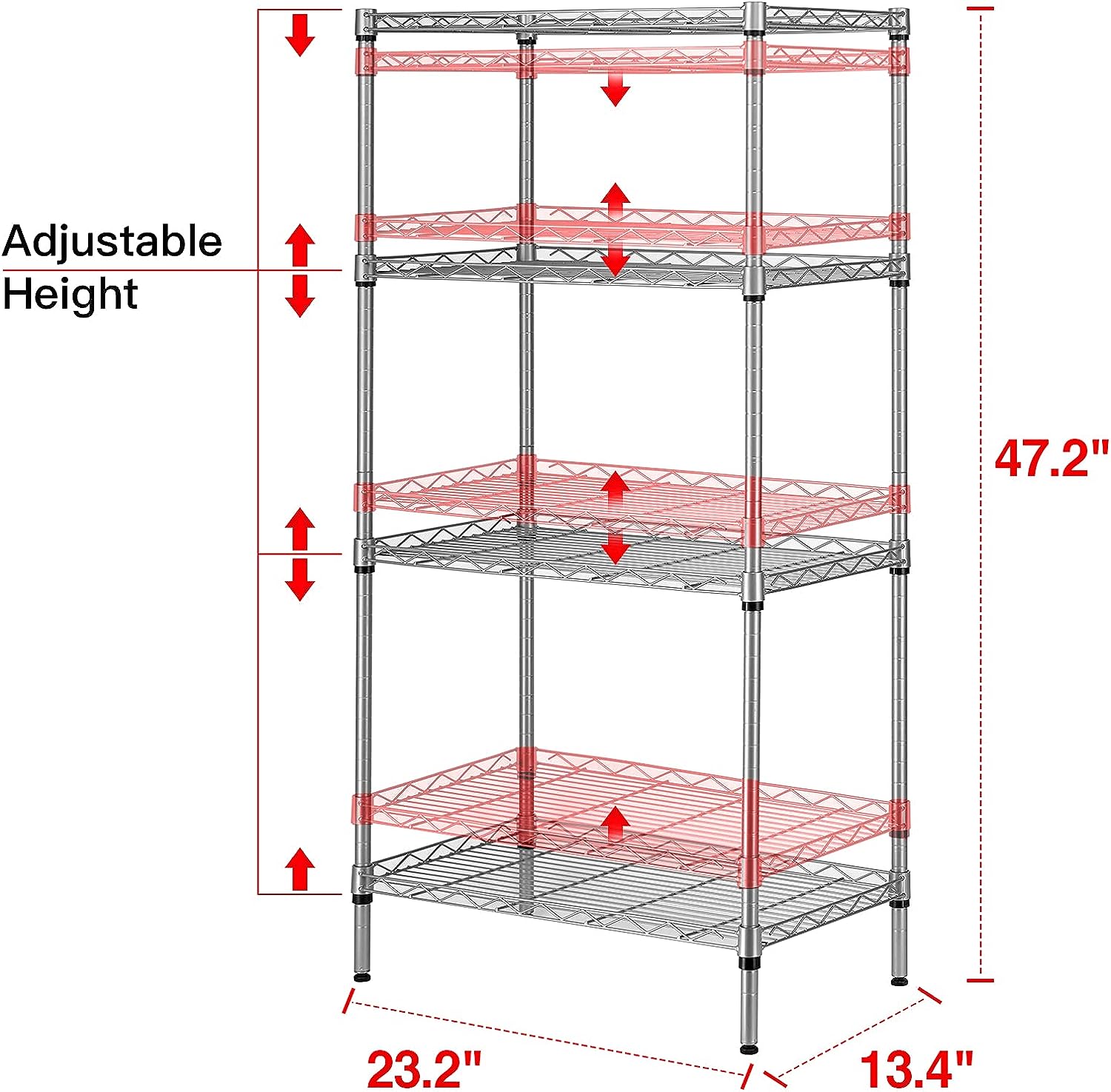 SINGAYE 4 Tier Adjustable Storage Shelf Metal Storage Rack Wire Shelving Unit 530Lbs Capacity 23.6″ W x 14″ D x 47.2″ H for Laundry Bathroom Kitchen Silver