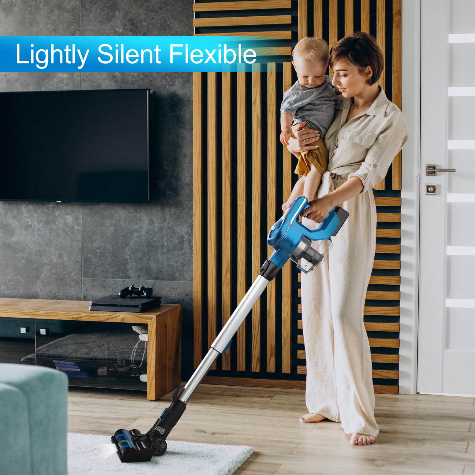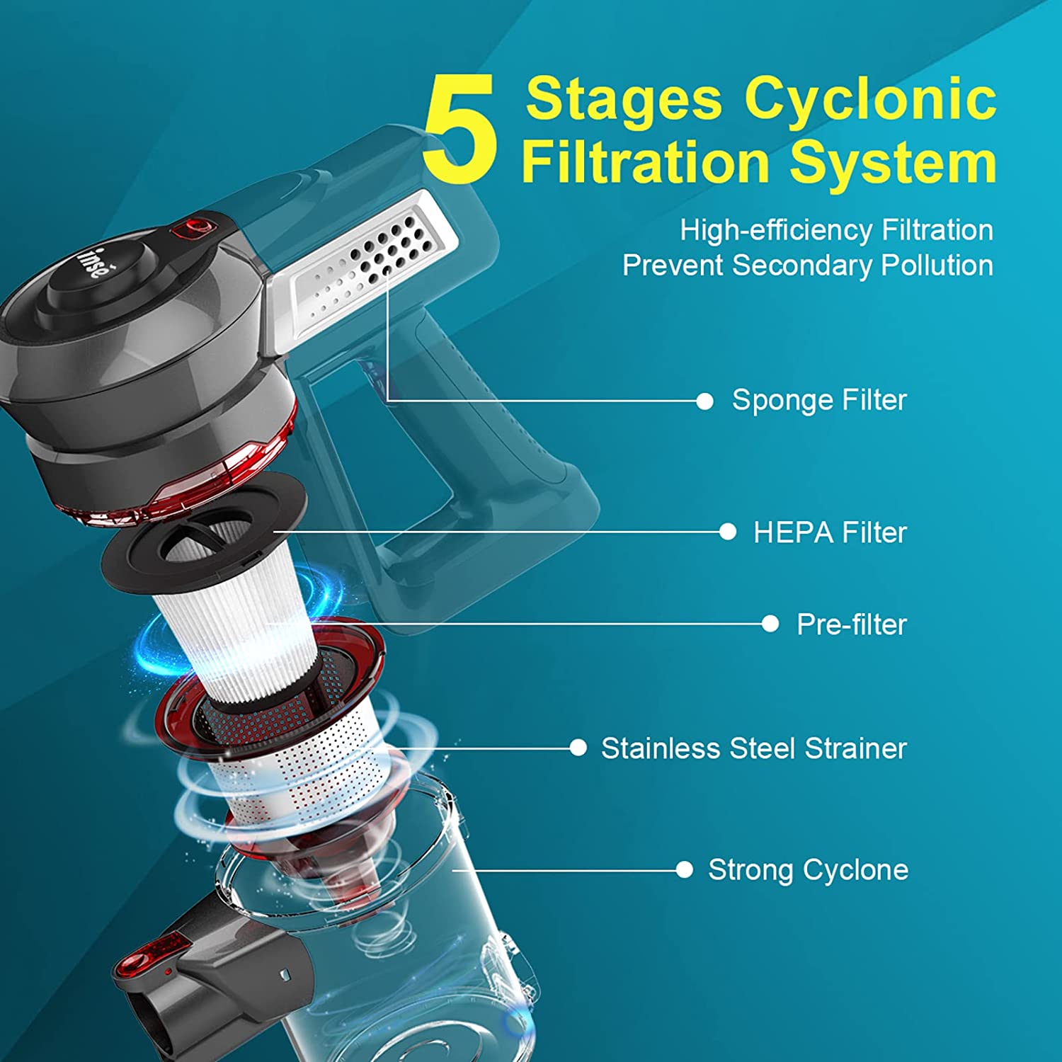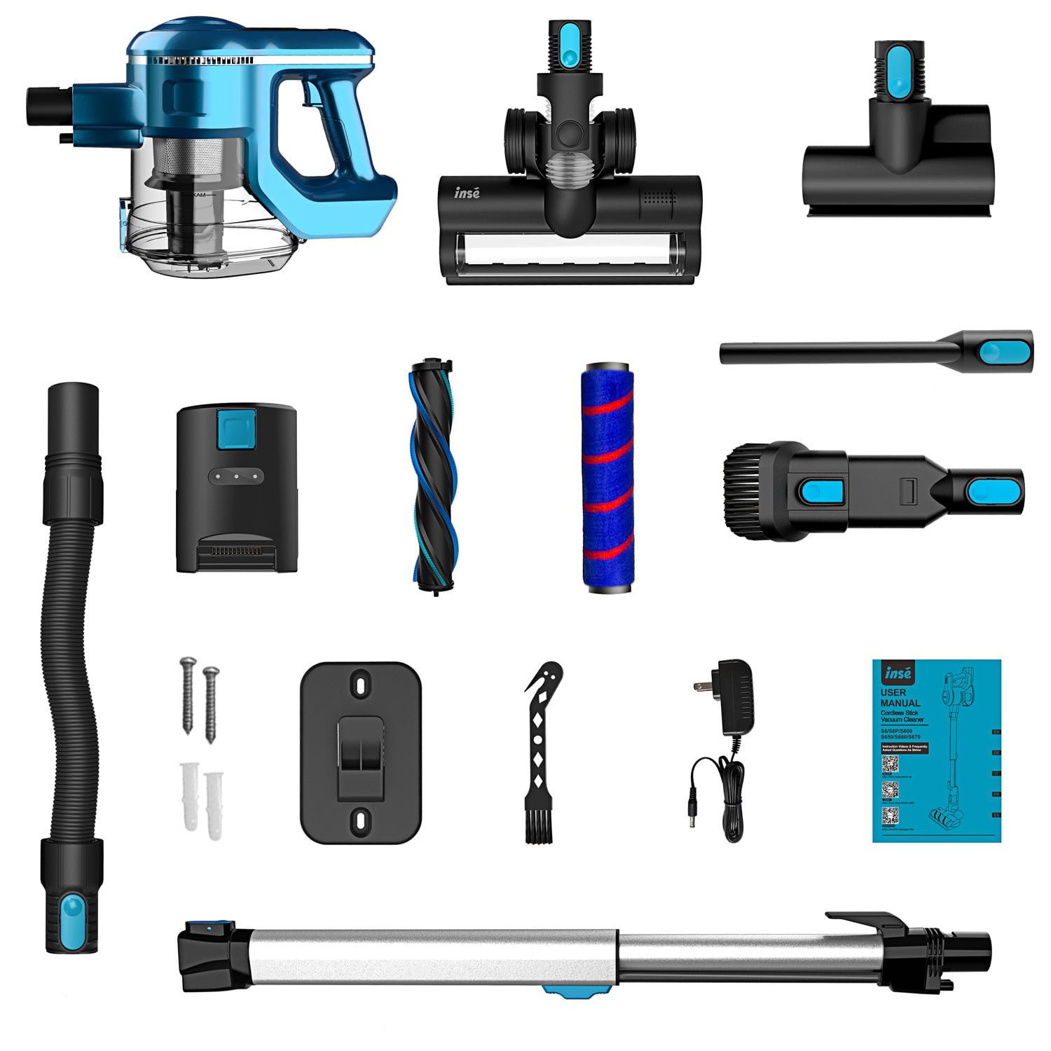 INSE Cordless Stick Vacuum Cleaner with Quiet Rechargeable Battery. 6-in-1 Lightweight Handheld Vacuum Cleaner for Home Hard Floor Carpet Pet Hair Car