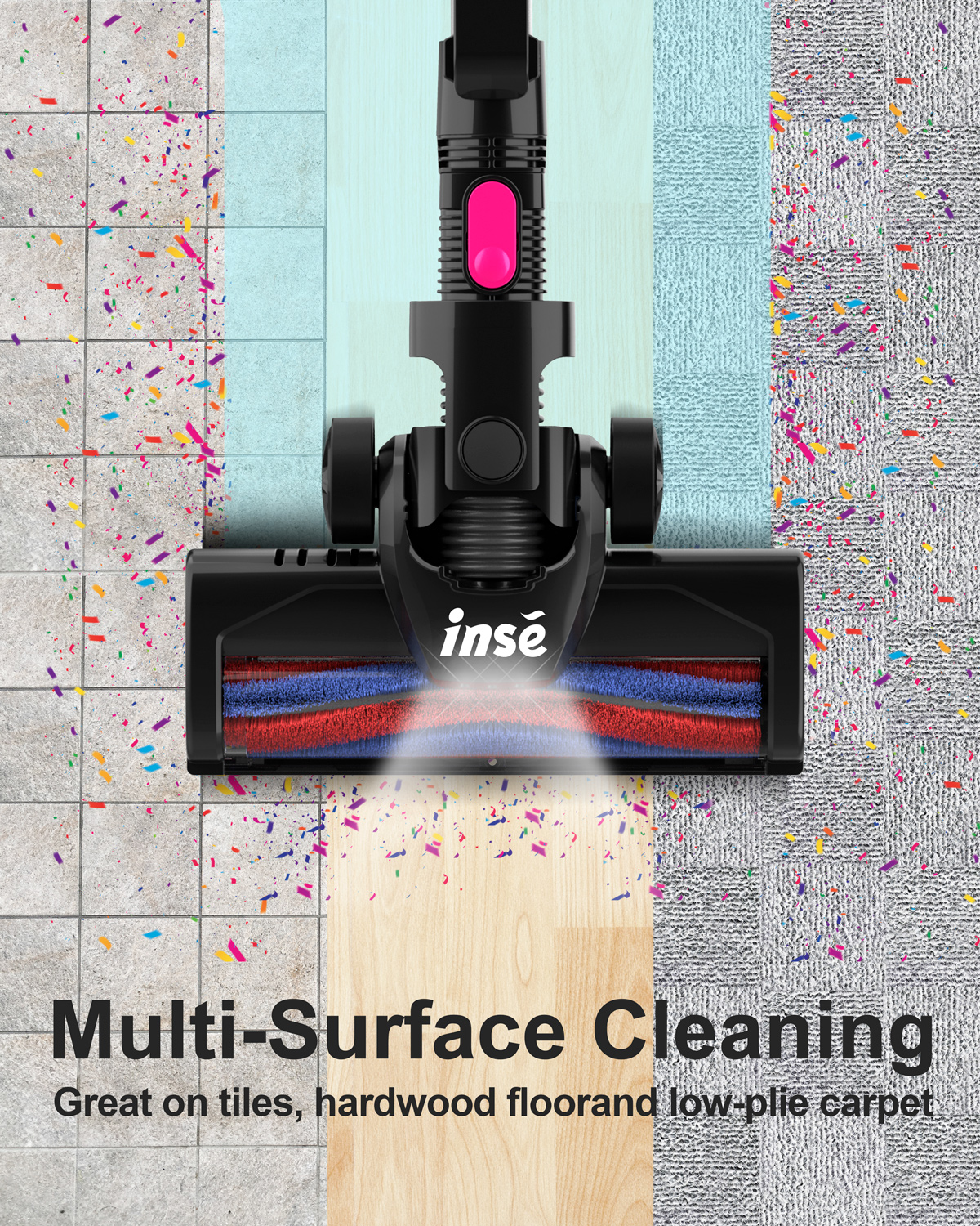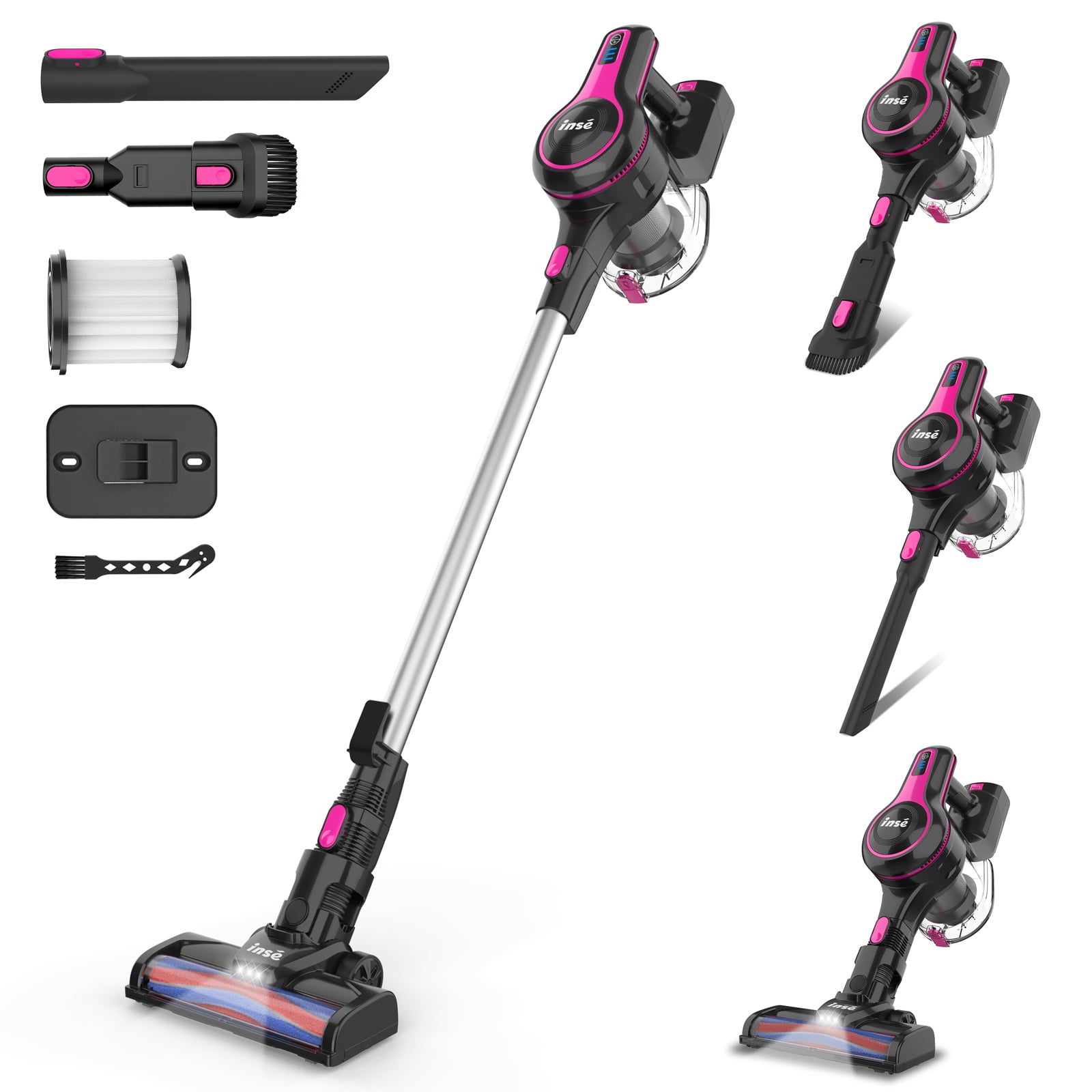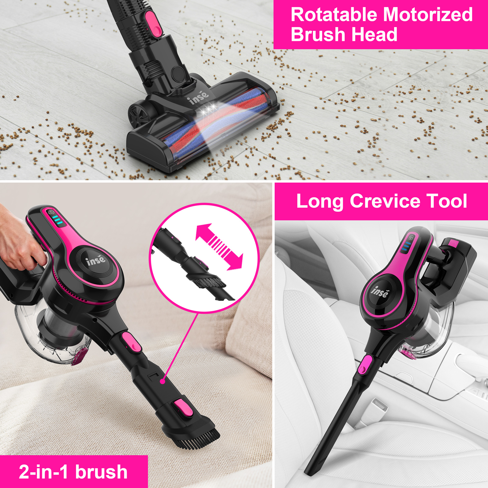INSE Cordless Vacuum Cleaner. 6 in 1 Rechargeable Powerful Lightweight Stick Vacuum with 2200 mAh Battery. Up to 45 Mins Runtime for Home Hard Floor Carpet Pet Hair - Rose Red
