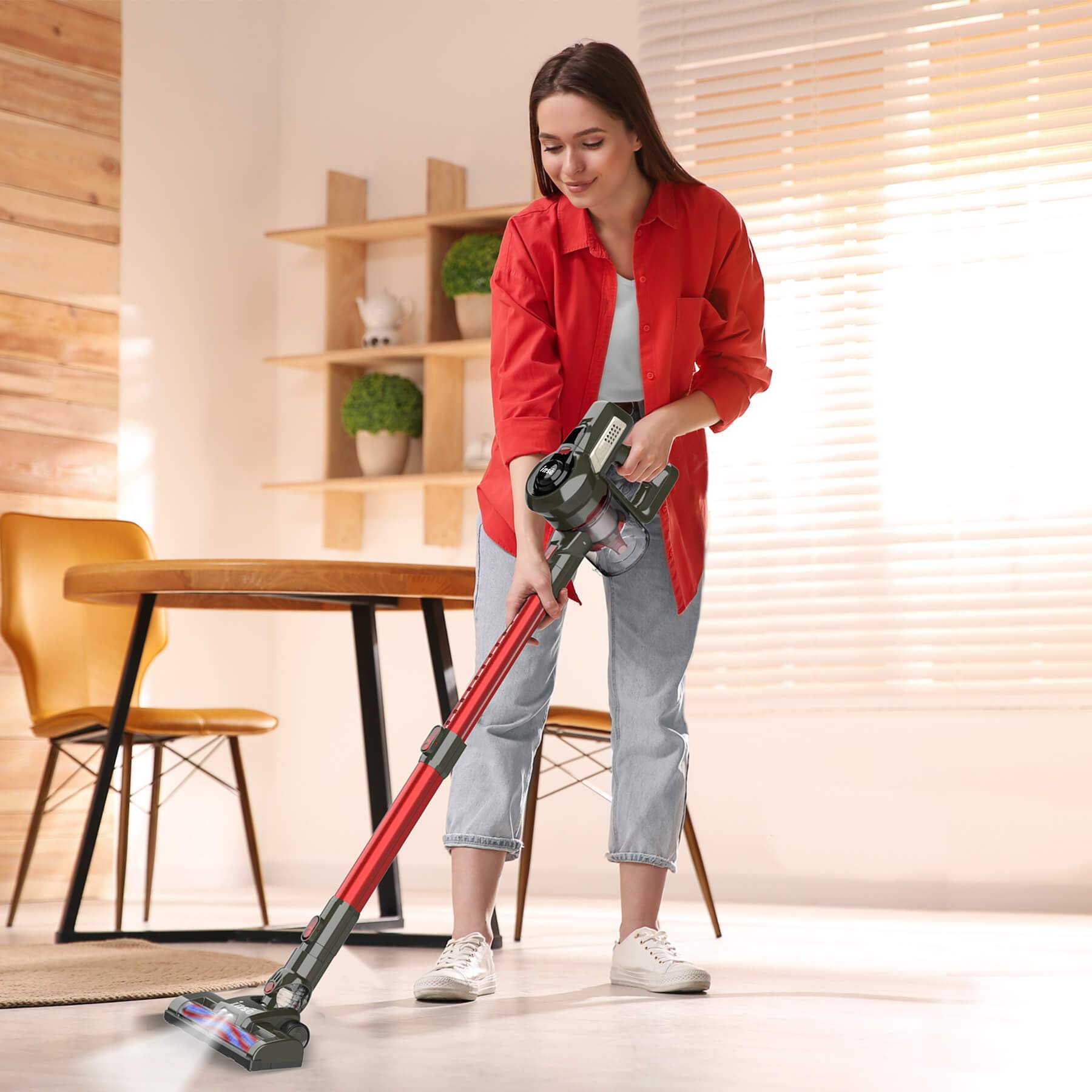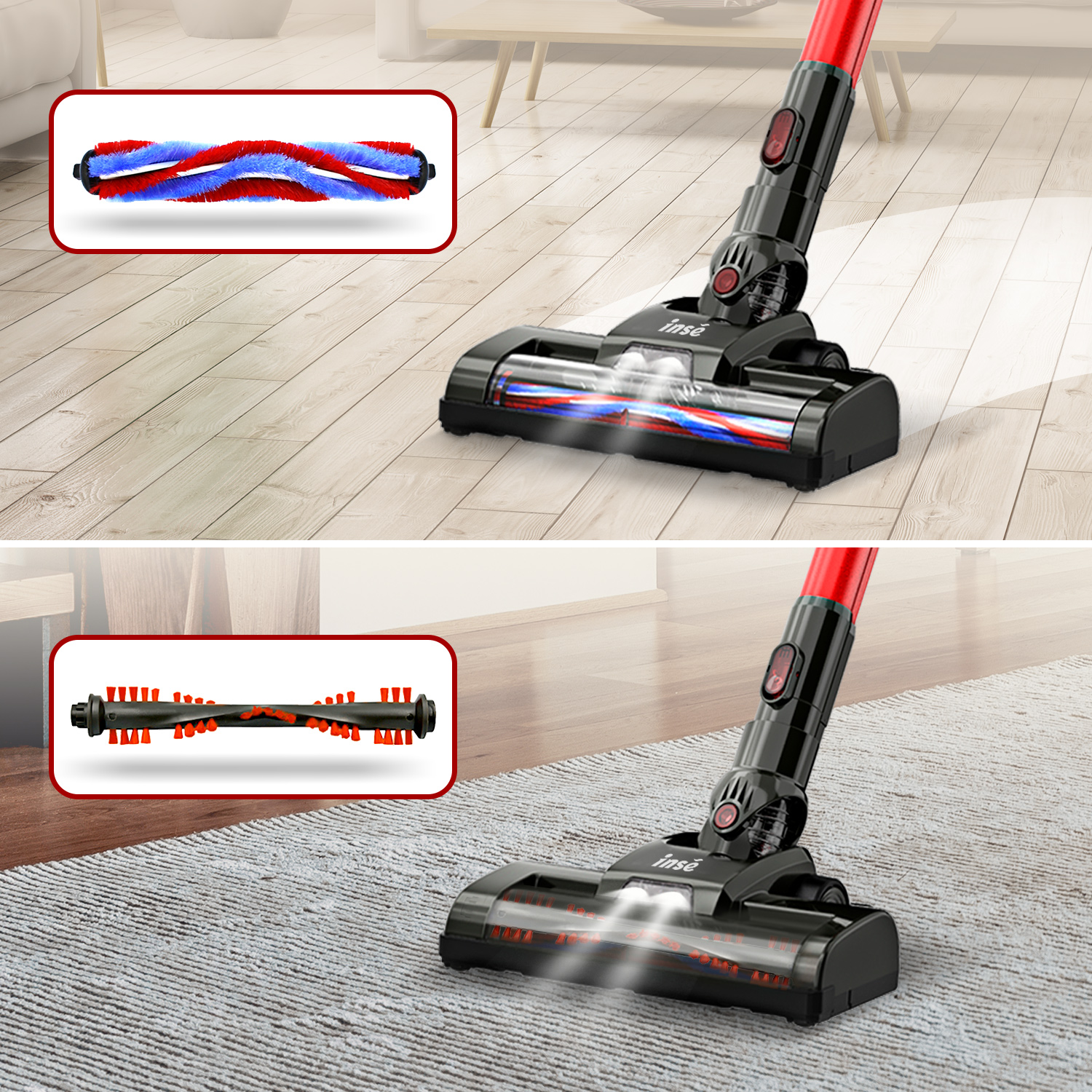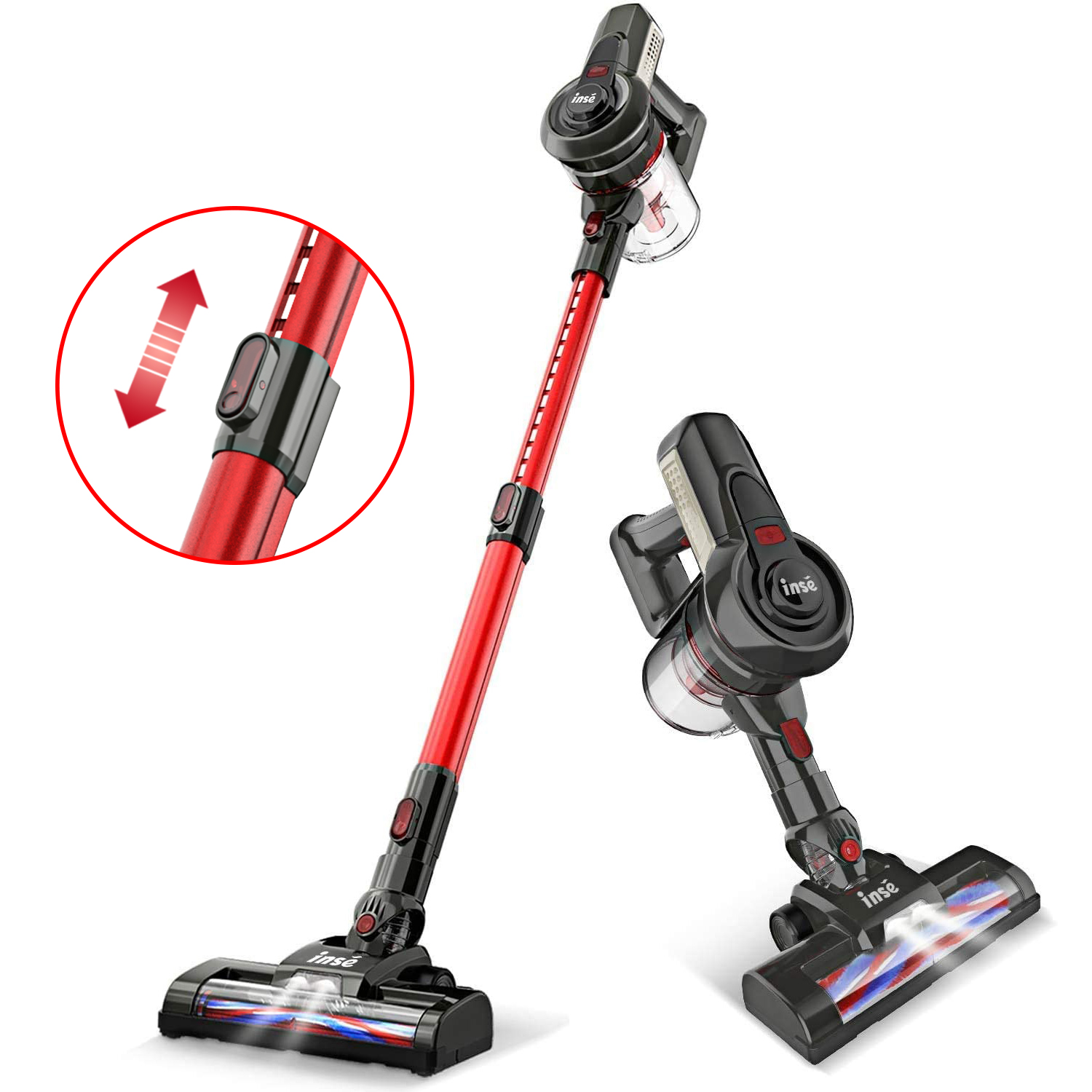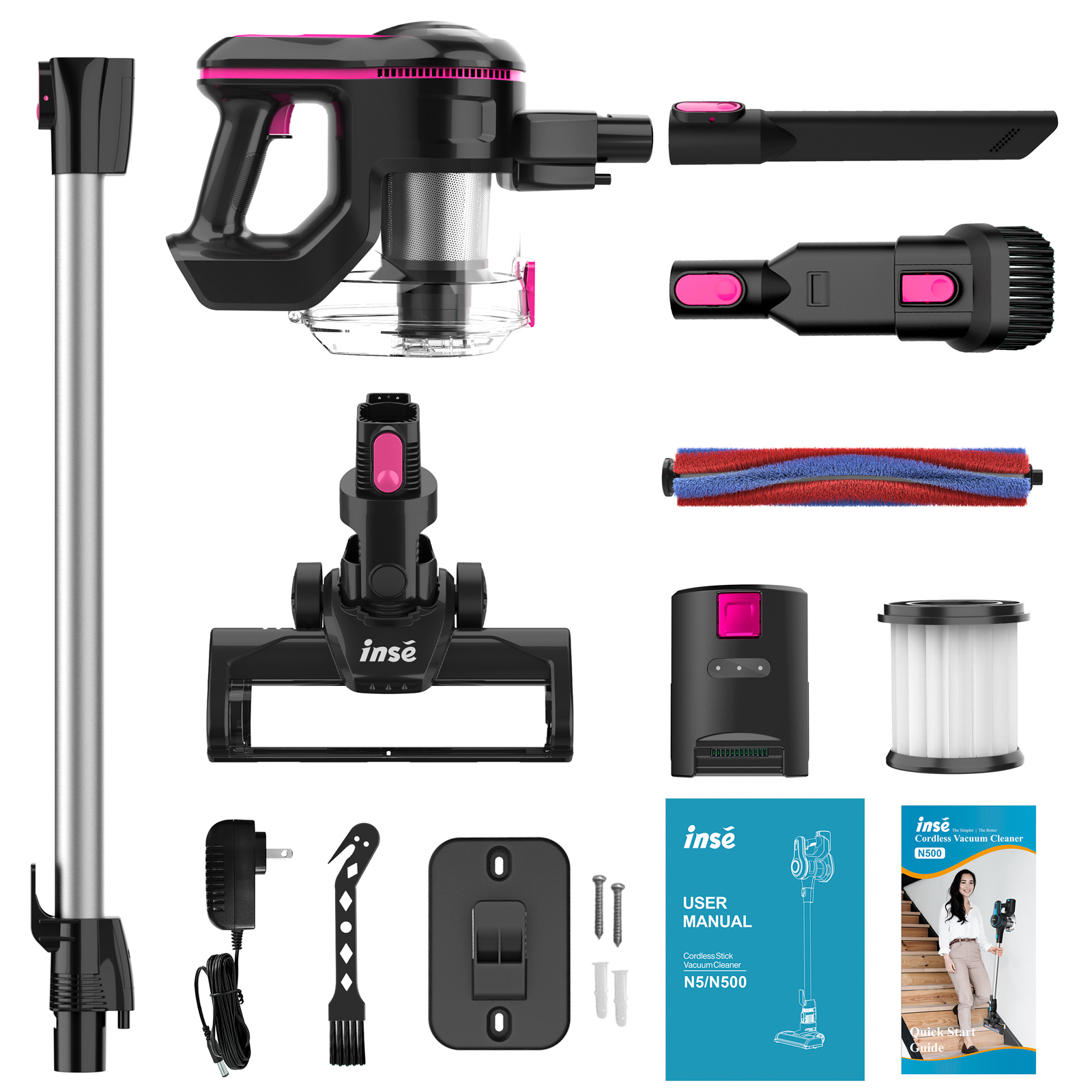 INSE Cordless Vacuum Cleaner. 6 in 1 Rechargeable Powerful Lightweight Stick Vacuum with 2200 mAh Battery. Up to 45 Mins Runtime for Home Hard Floor Carpet Pet Hair - Rose Red