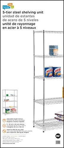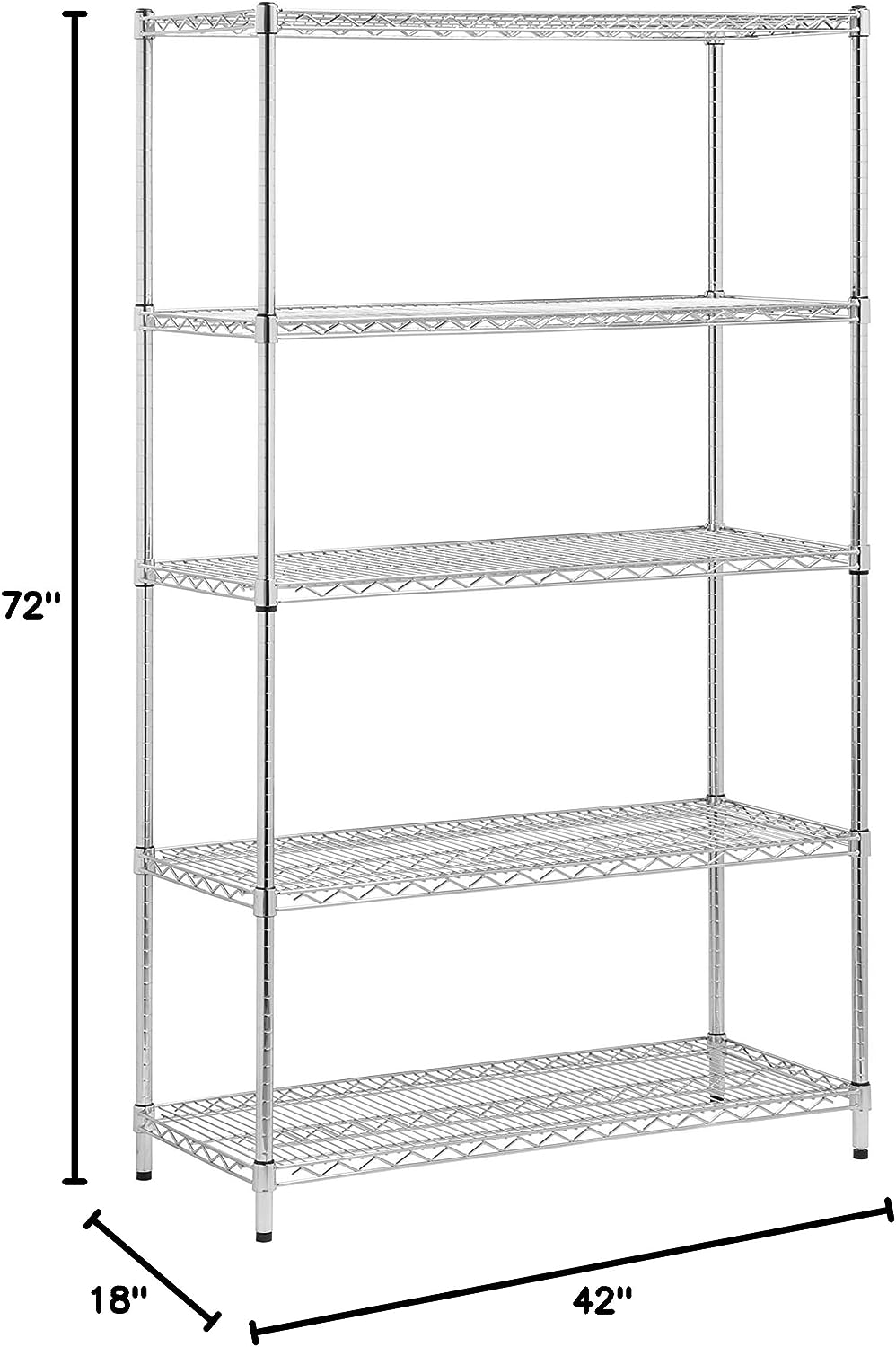 Honey-Can-Do SHF-01441 Adjustable Storage Shelving Unit. 800-Pounds Per Shelf. Chrome. 5-Tier. 42Lx18Wx72H