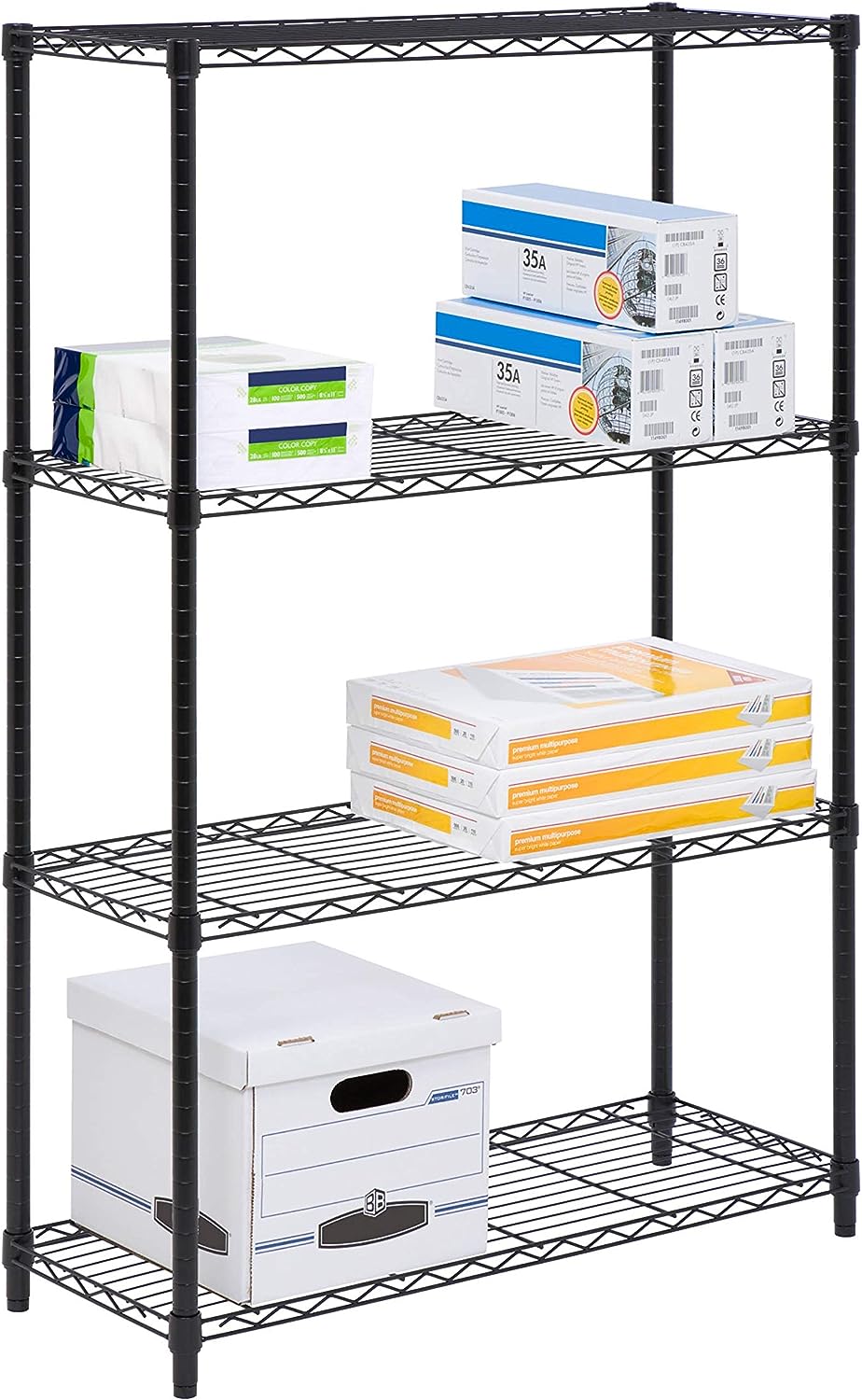 Honey-Can-Do SHF-01908 Adjustable Storage Shelving Unit. 250-Pounds Per Shelf. Black. 4-Tier. 36Lx14Wx54H