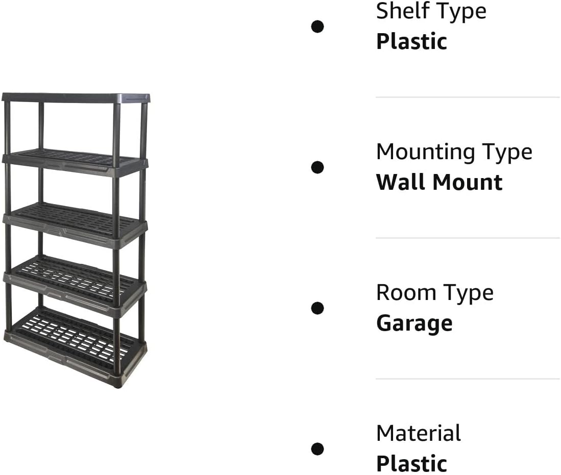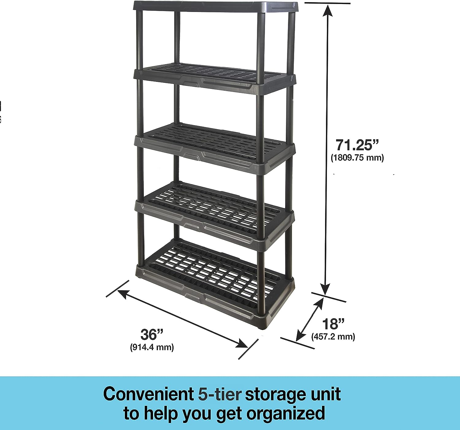 BLACK+DECKER 5-Tier Heavy Duty Ventilated Storage Shelf. 150lbs/Shelf (71H x 36W x 18D). Plastic Shelving Unit