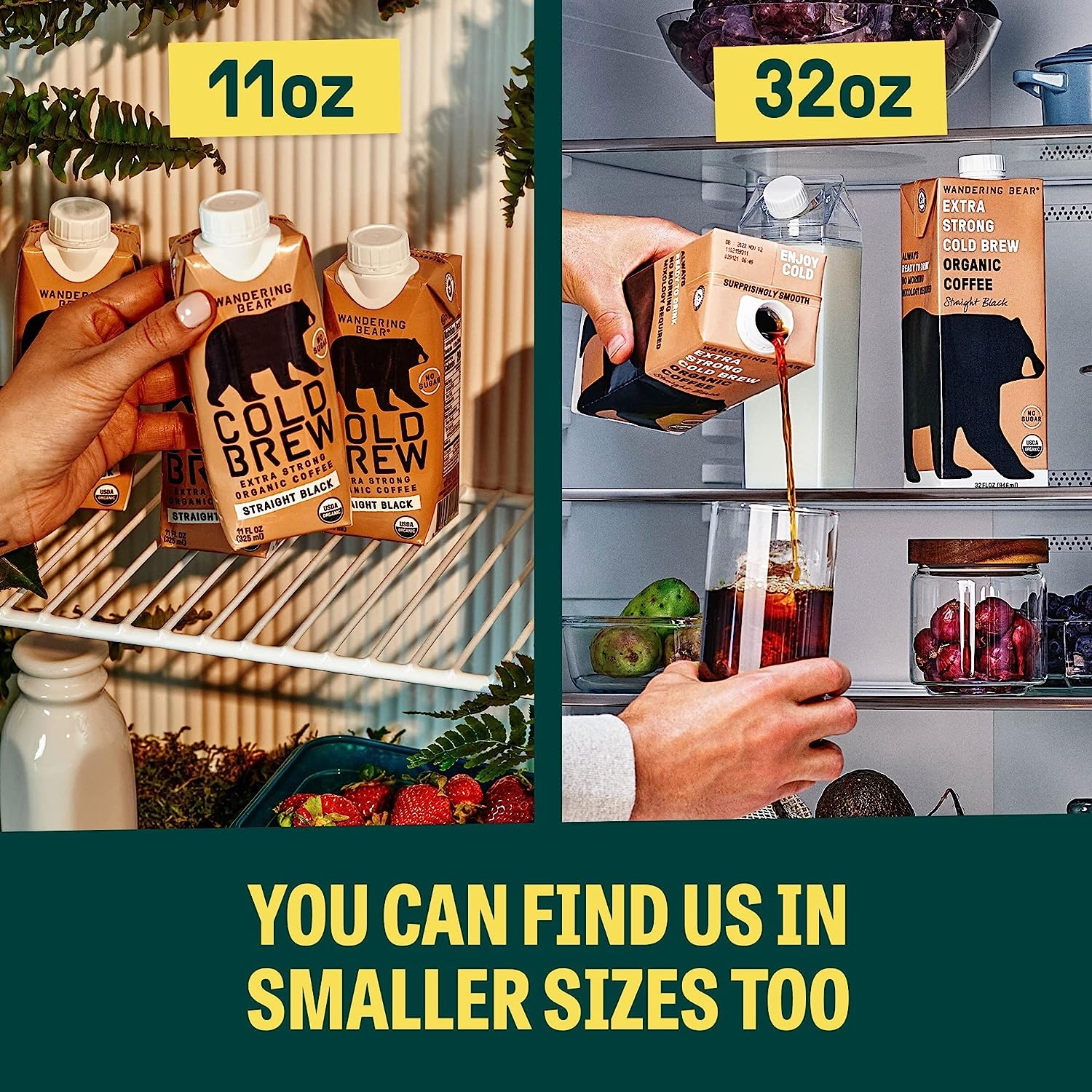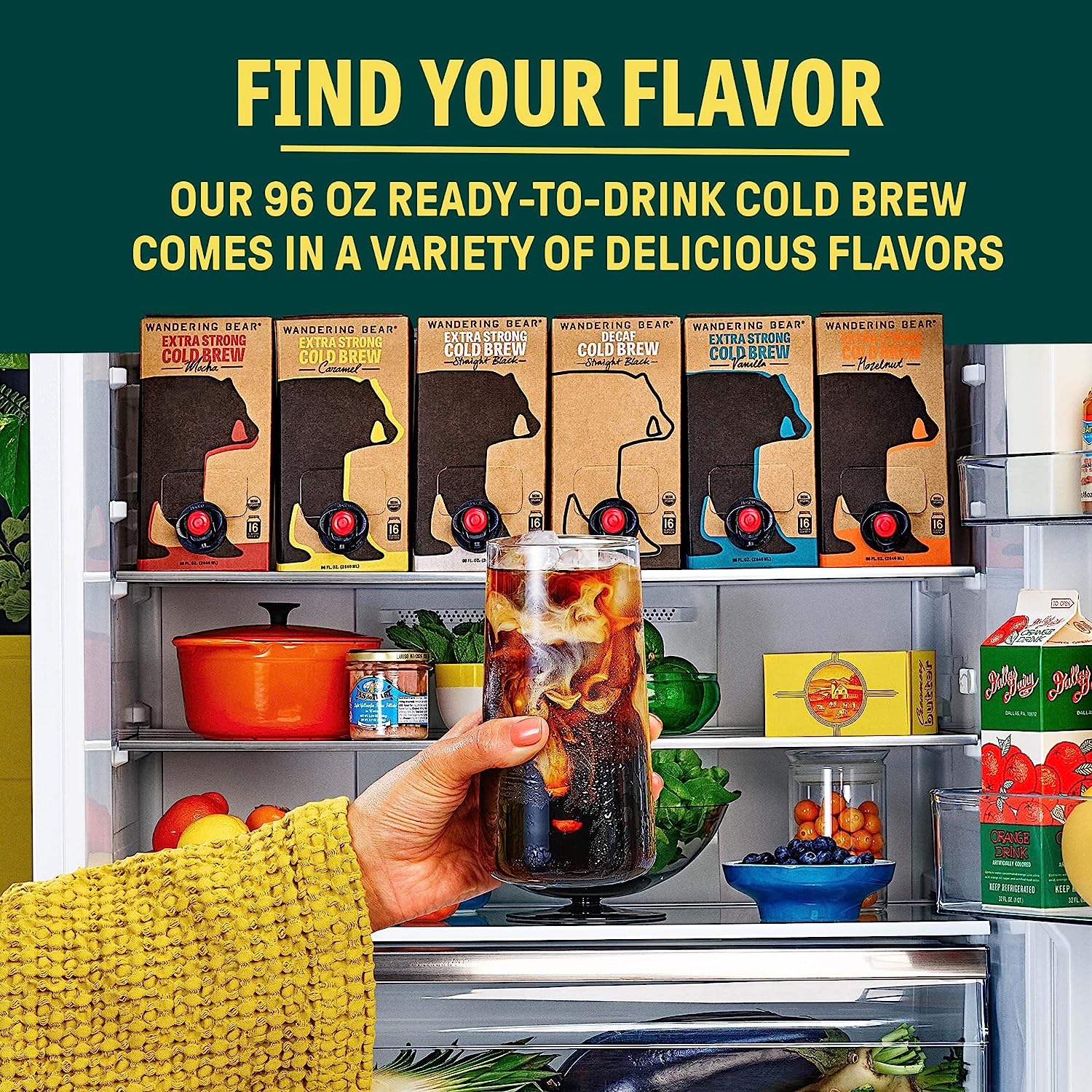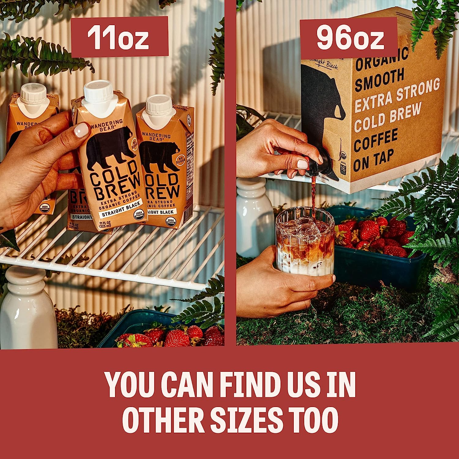 Wandering Bear Organic Straight Black Cold Brew Coffee On Tap. 96 fl oz - Extra Strong. Smooth. Unsweetened. Shelf-Stable. and Ready to Drink Iced Coffee. Cold Brewed Coffee. Cold Coffee